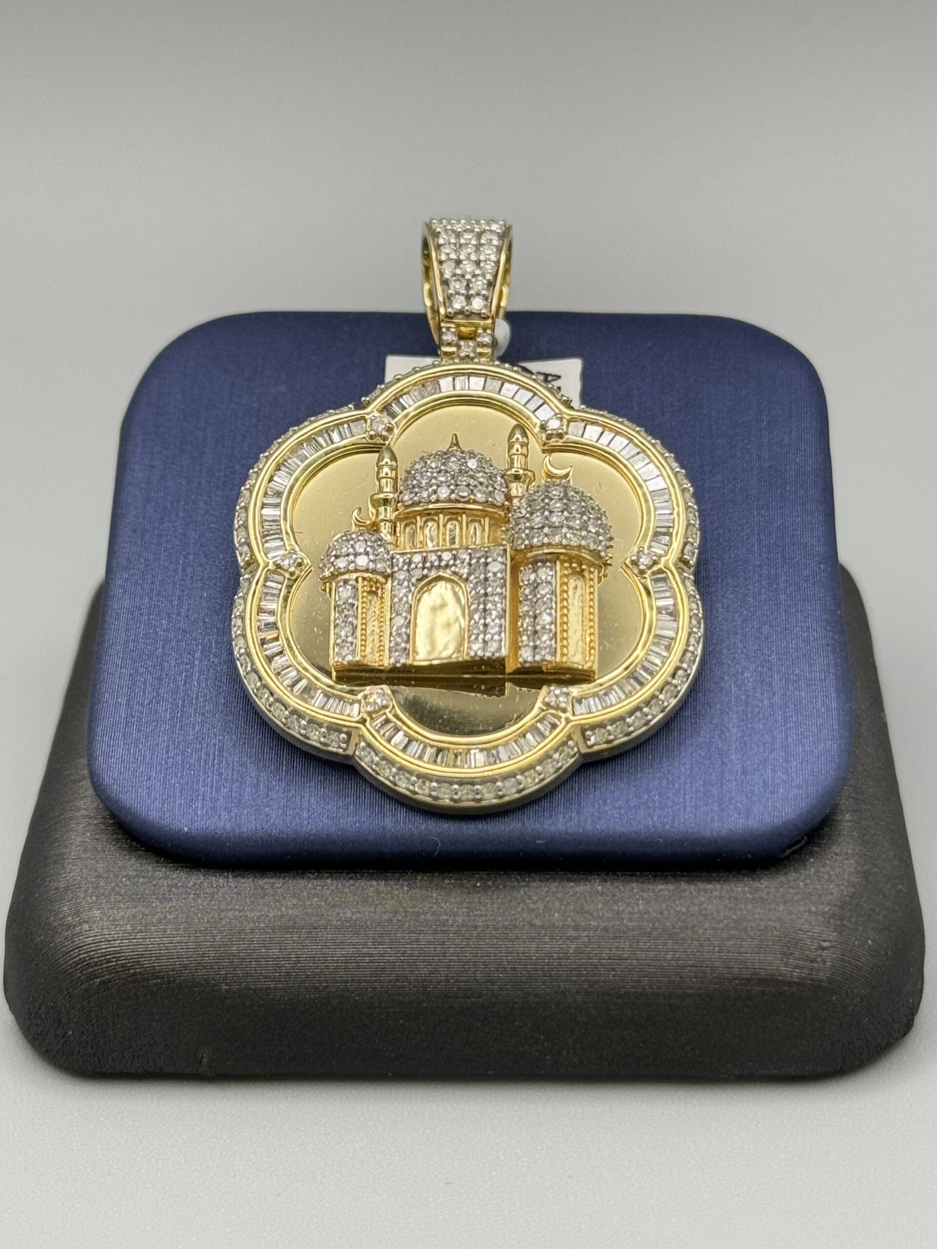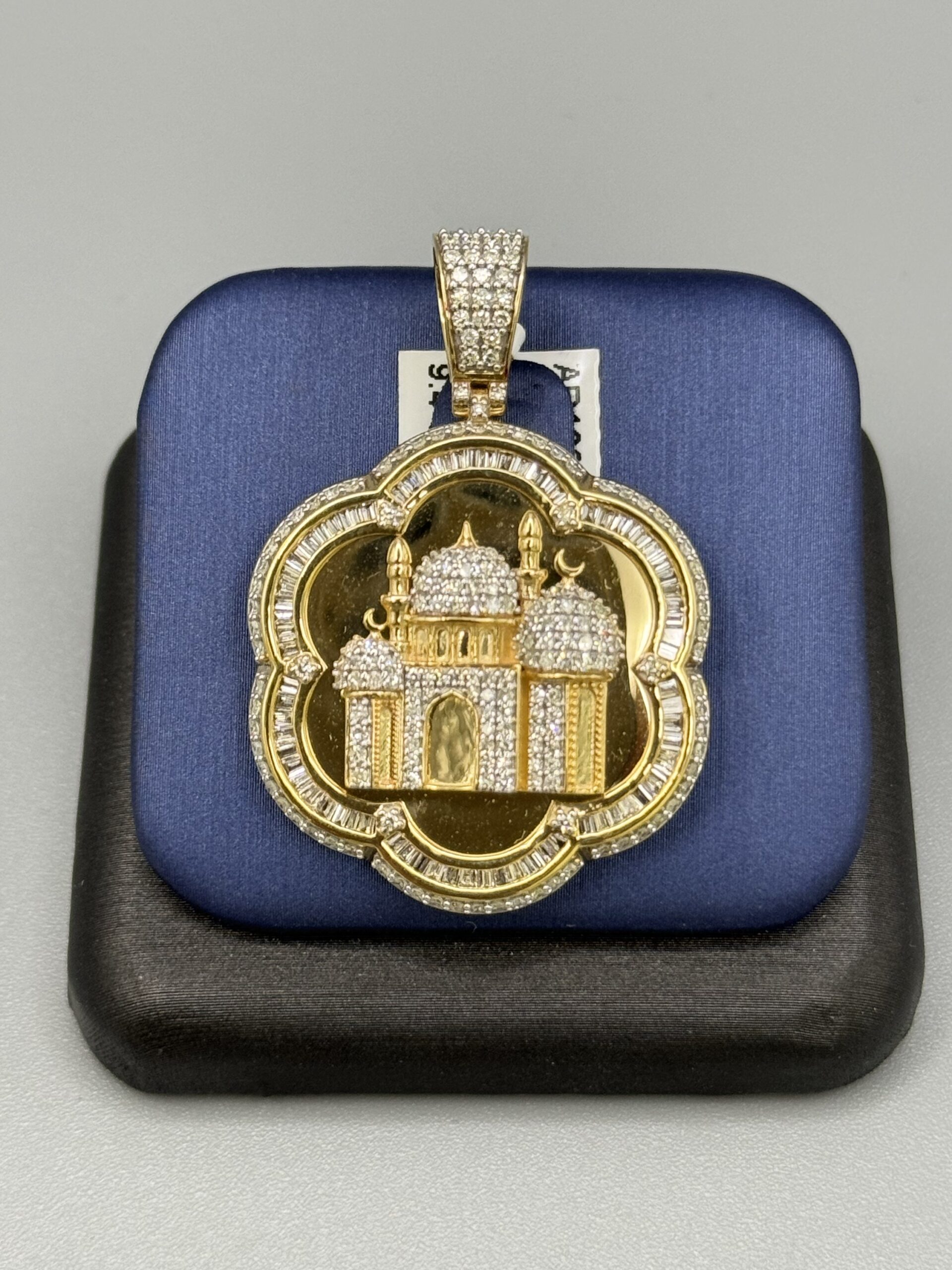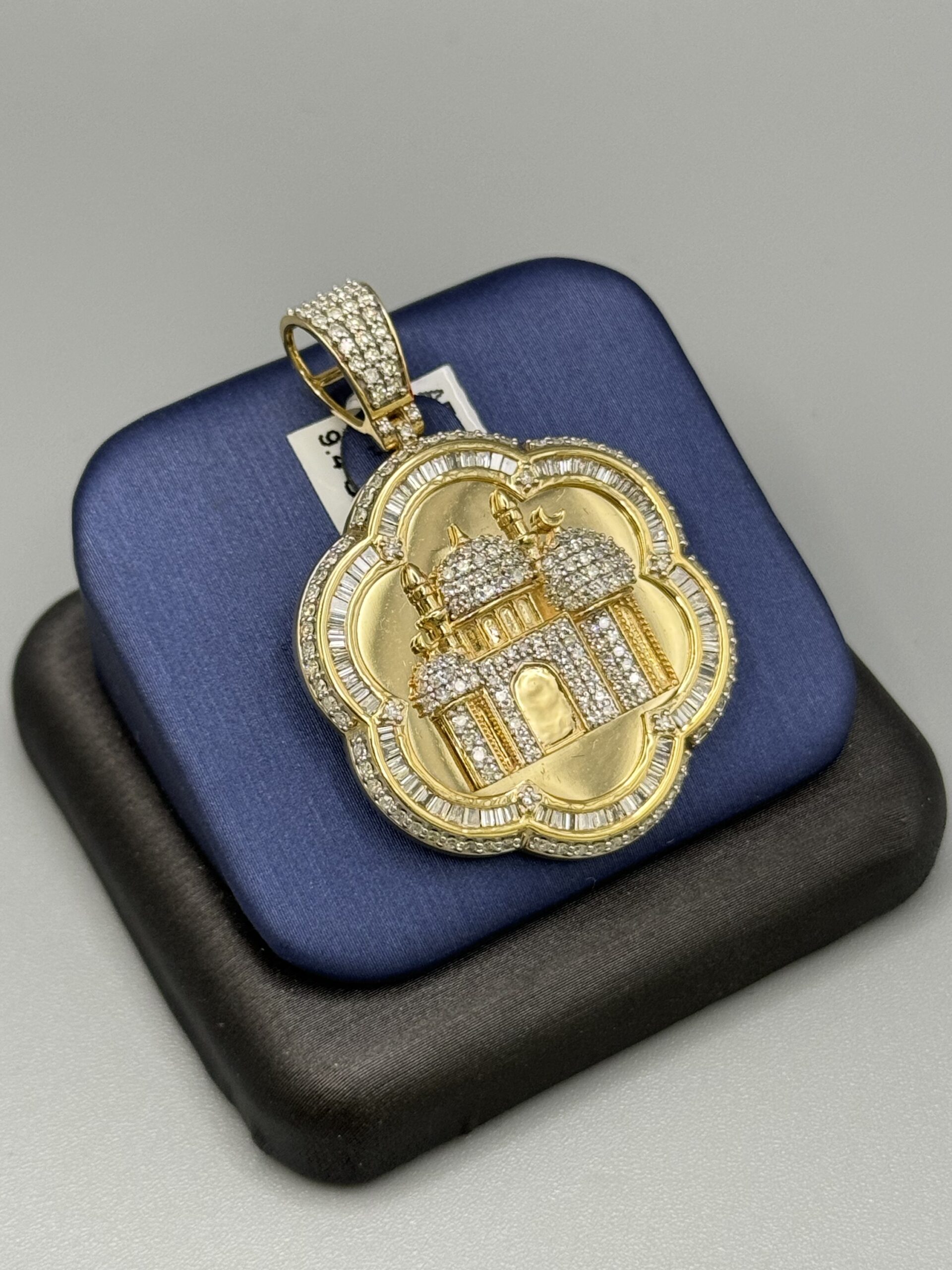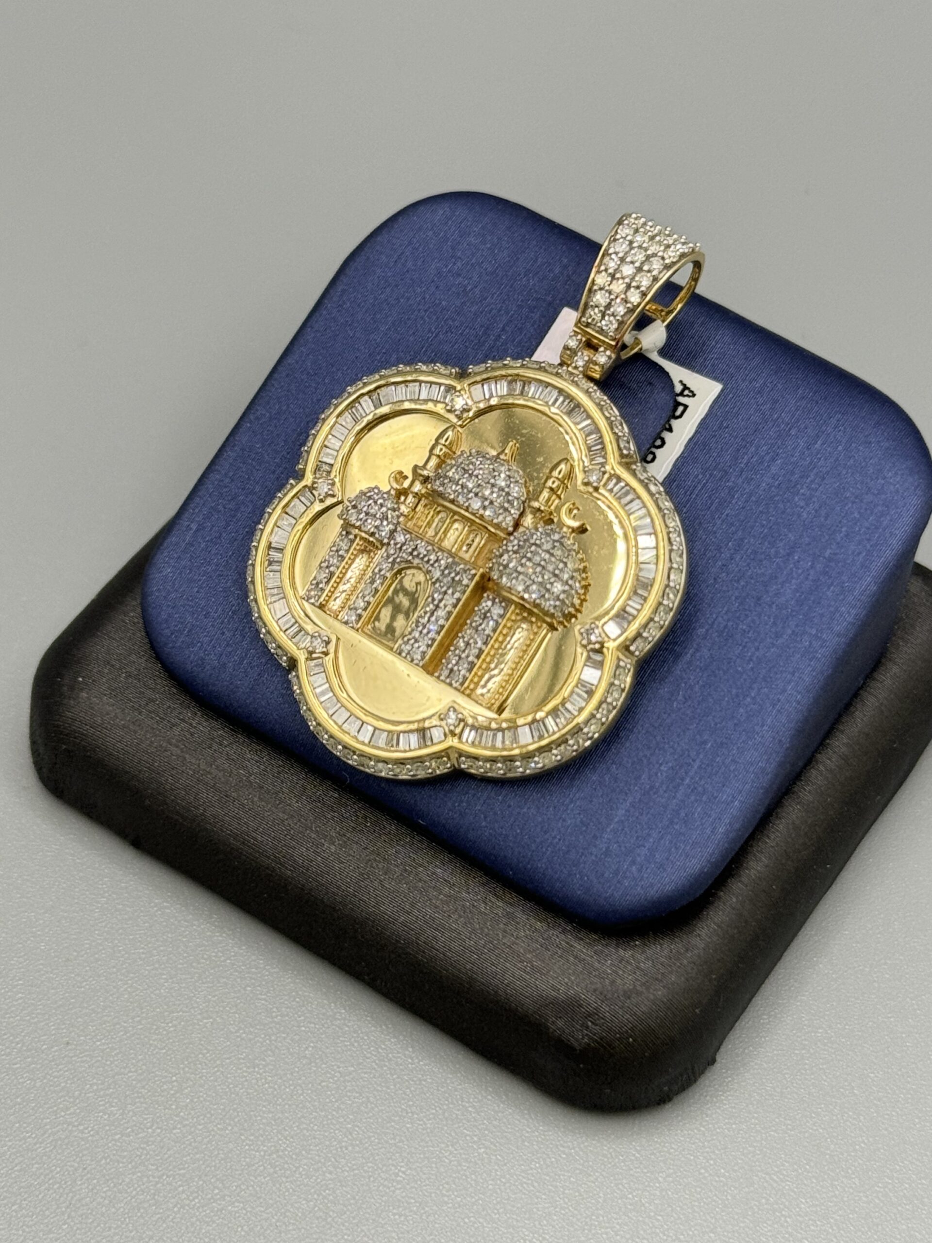 10K YGold 1.56CT Diamond Mosque Pendant AKA Masjid Pendant With Baguette Diamonds1.5″ Tall By 1″ Wide Approx Gold Weight 9.4 Grams