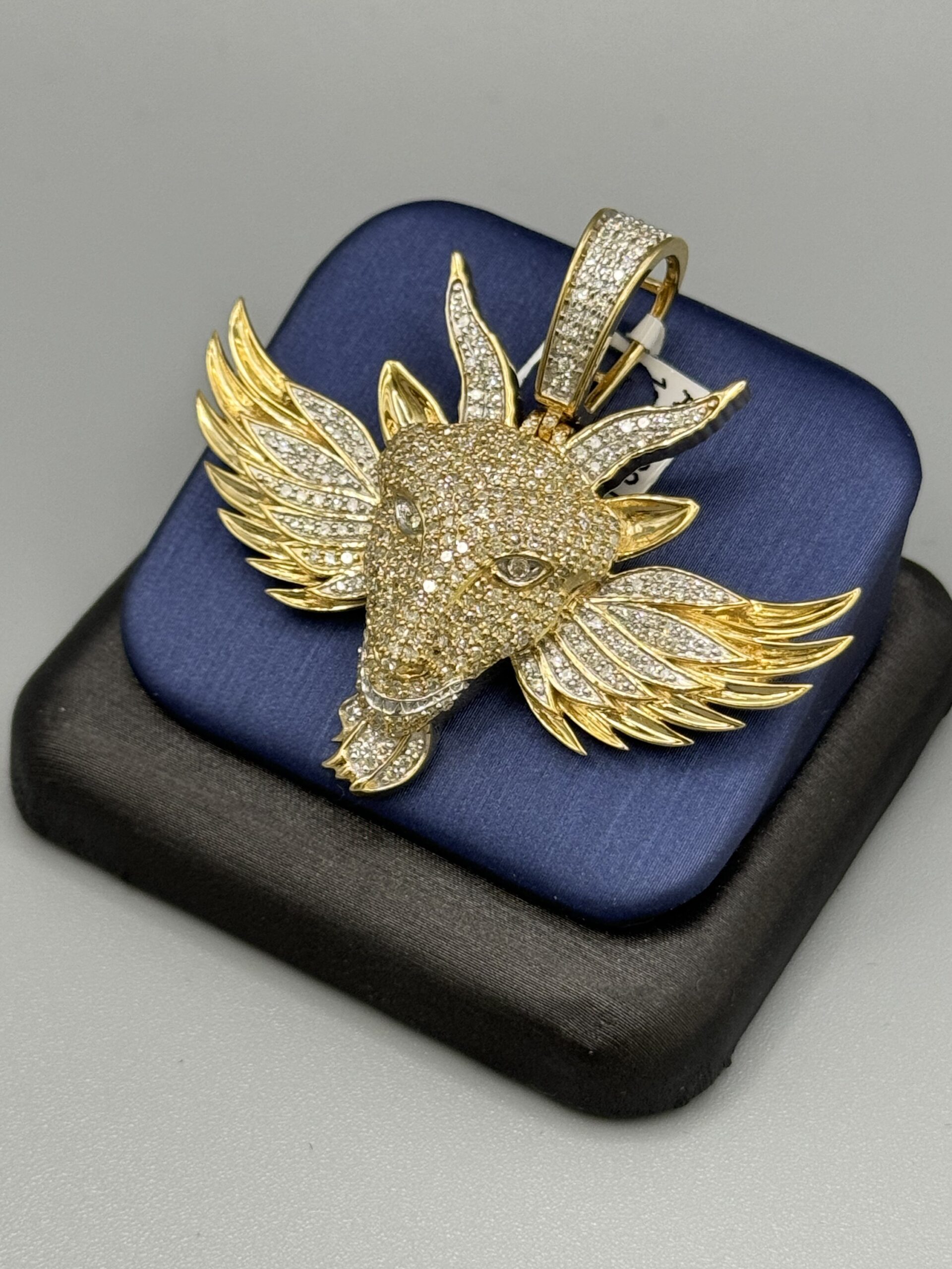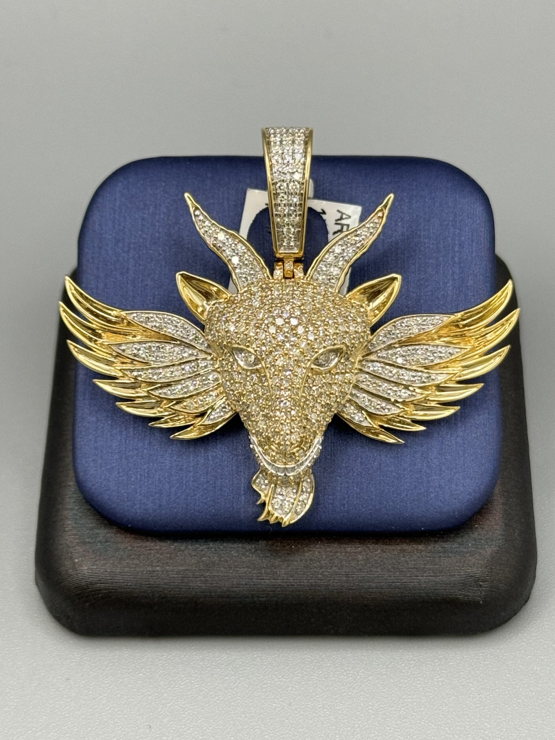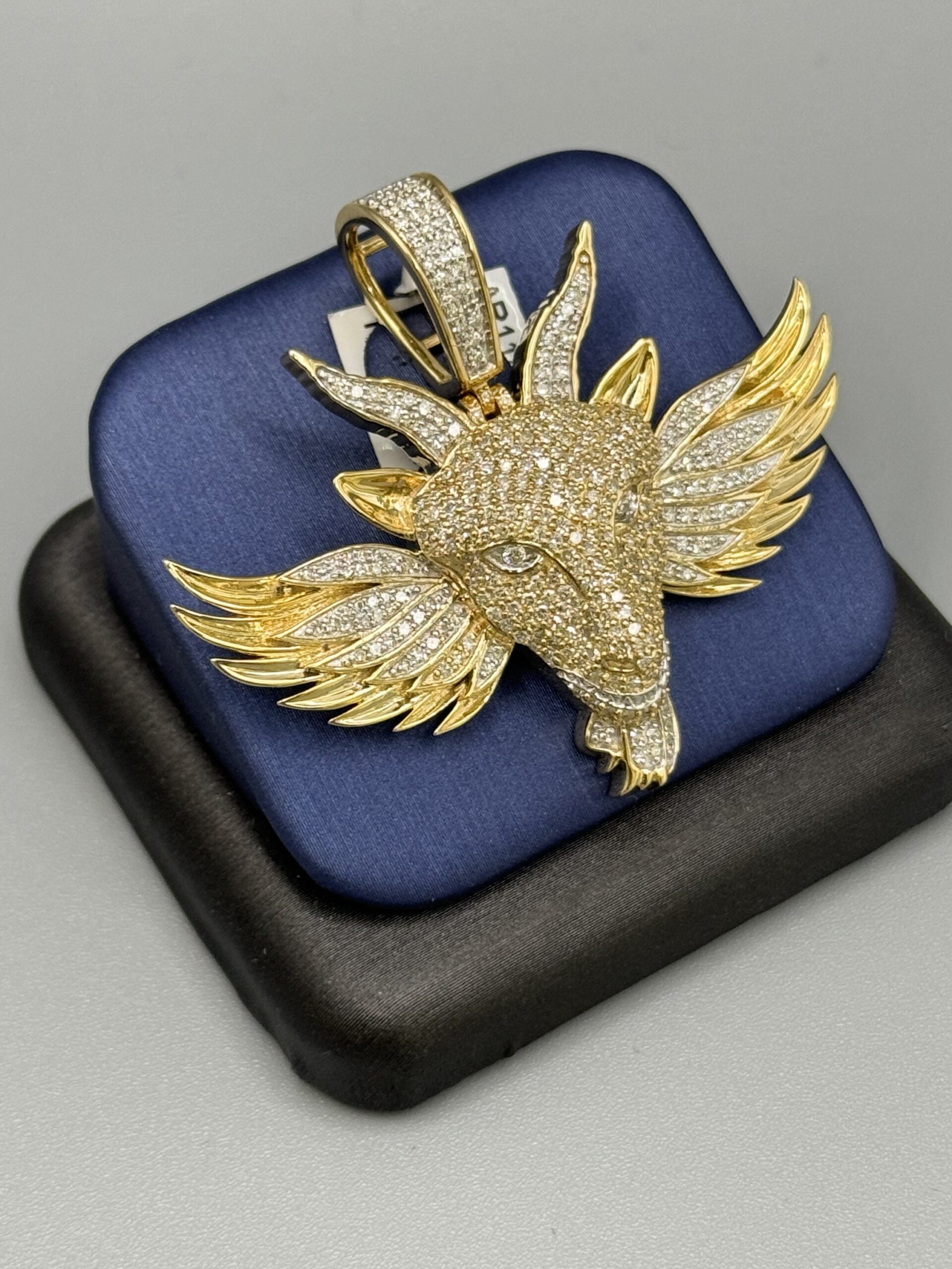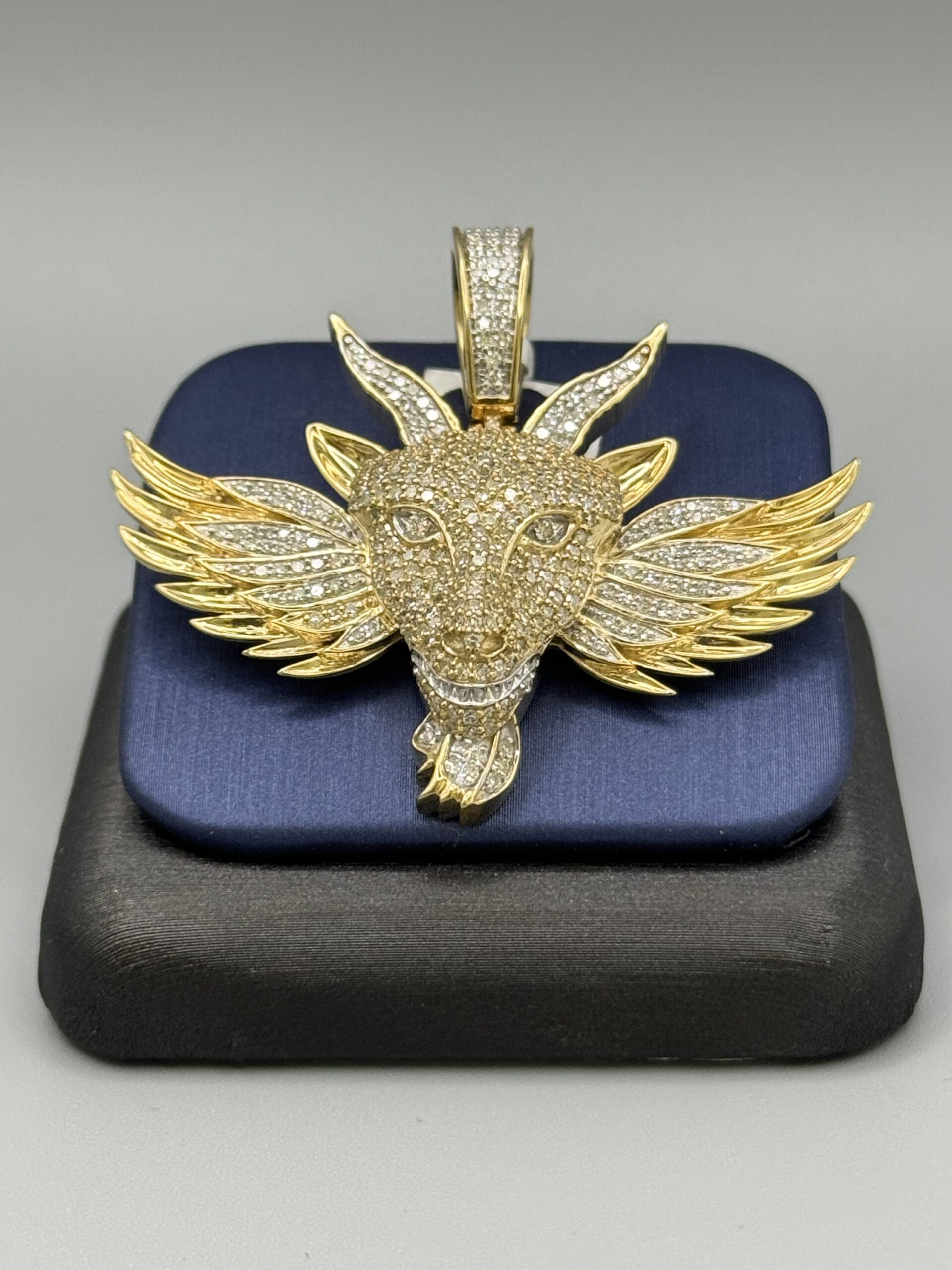 10K YGold 1.71CT Diamond Angel Goat Pendant Approx Gold Weight 13.2 Gram 2″ Wide By 2″ Tall Caged Back