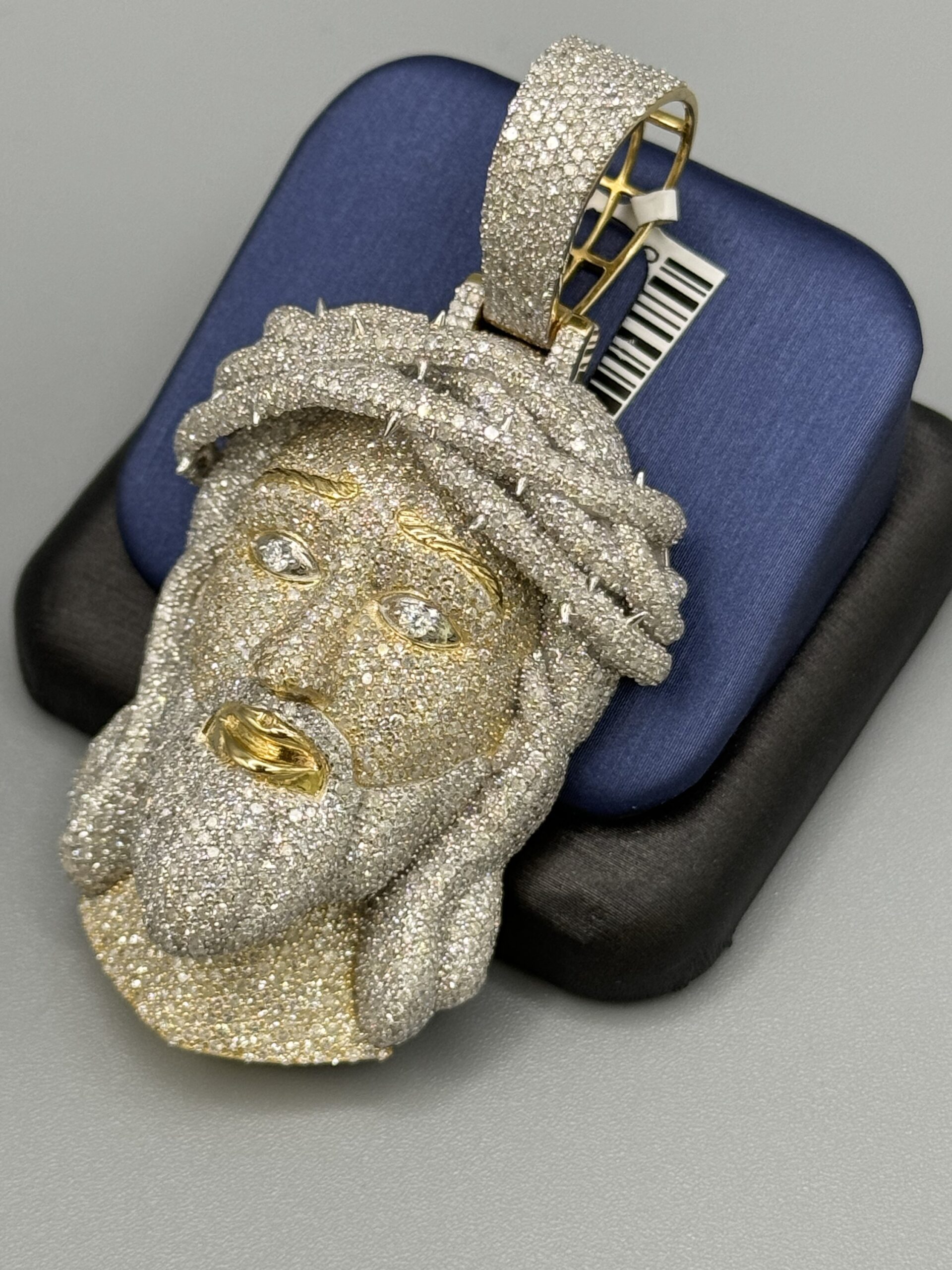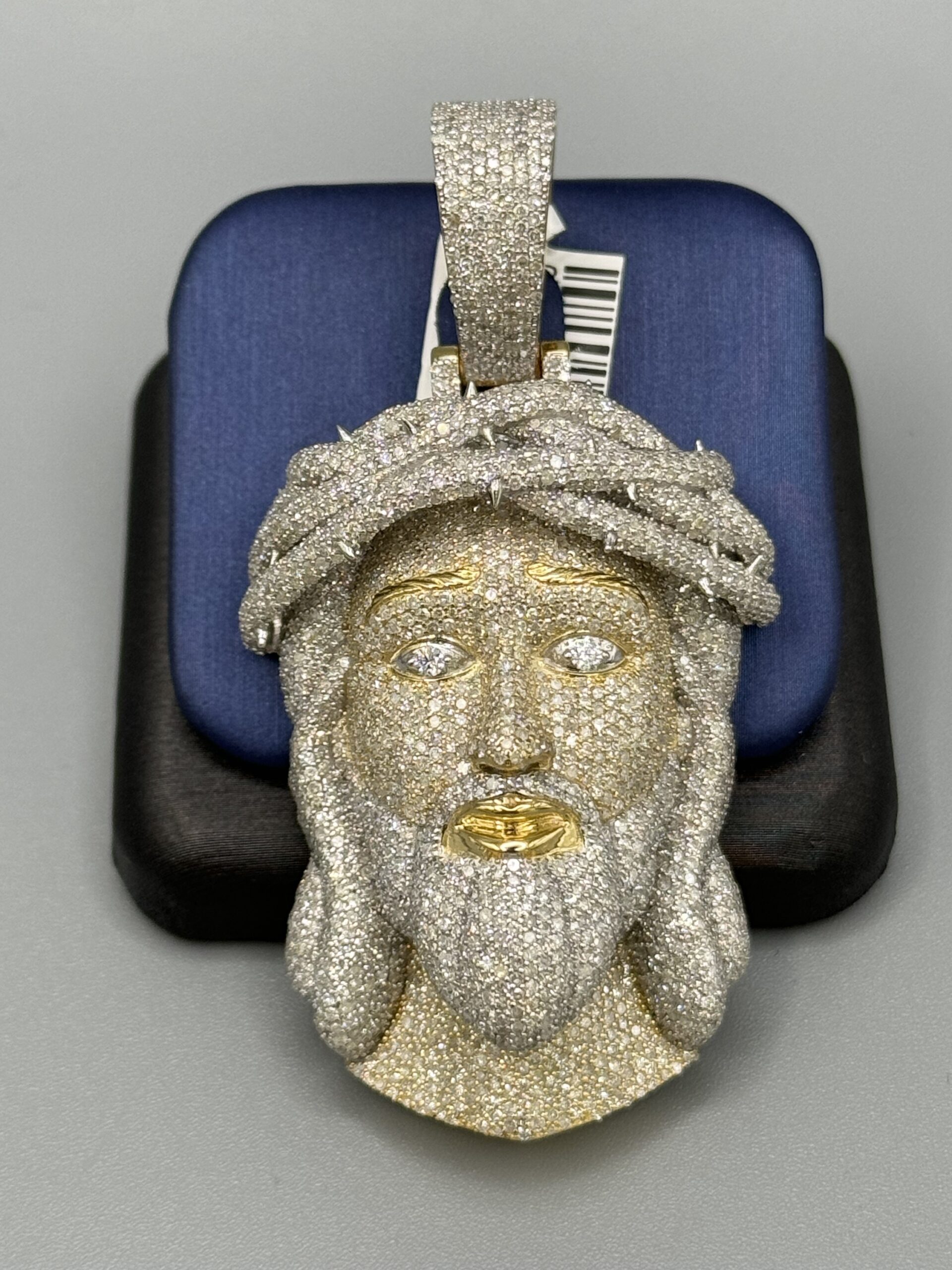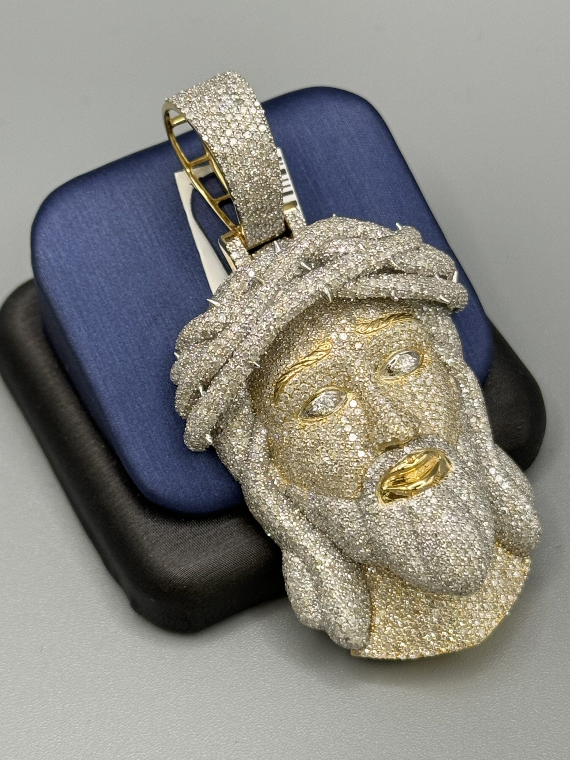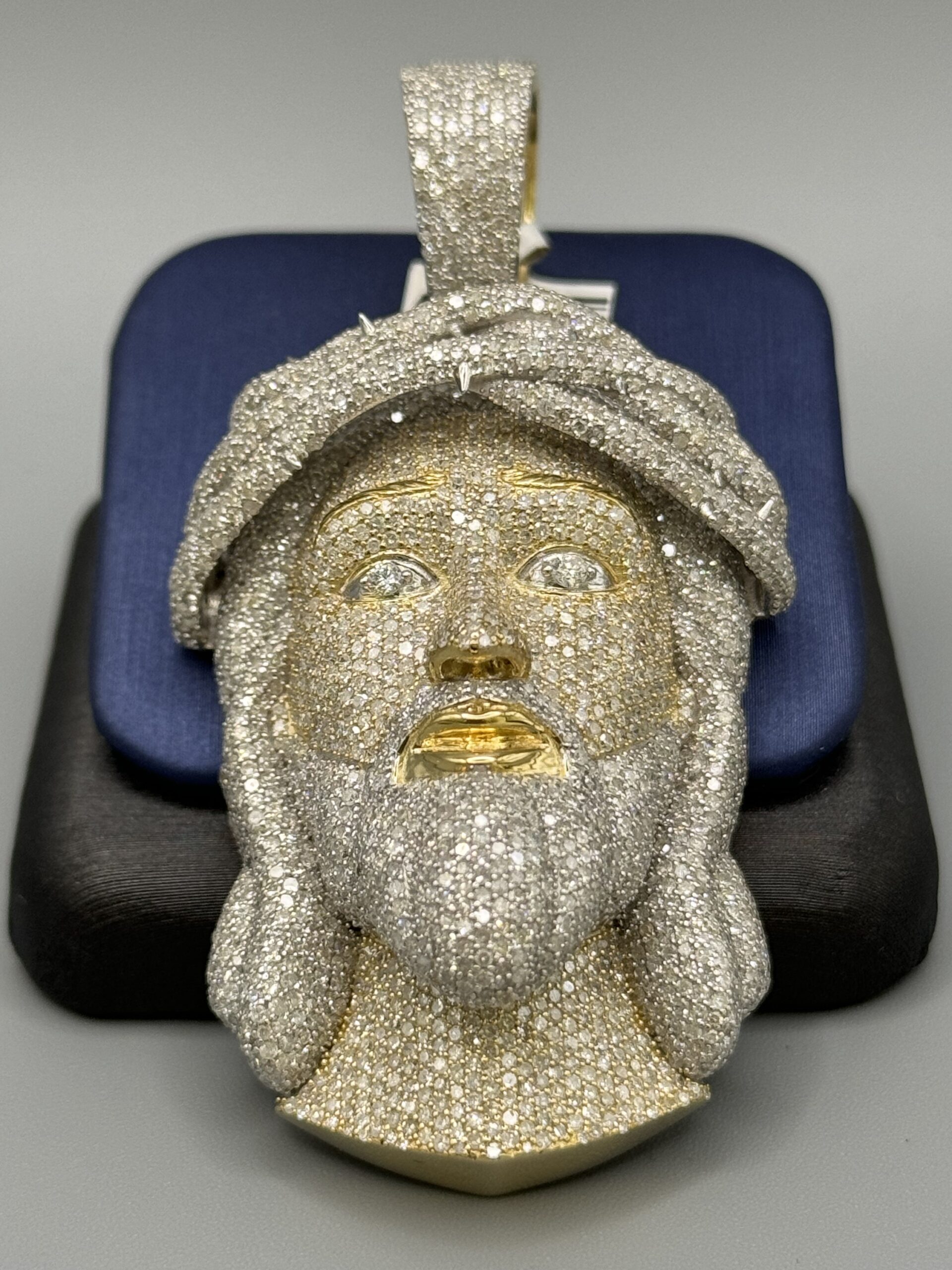 Shine bright with this stunning 10K YGold Jesus Pendant, featuring 11.52CT diamonds! Weighing 31.6 grams, it’s a showstopper at 2.75″ tall and 1.5″ wide, with a solid caged back and a big 0.70″ bell.