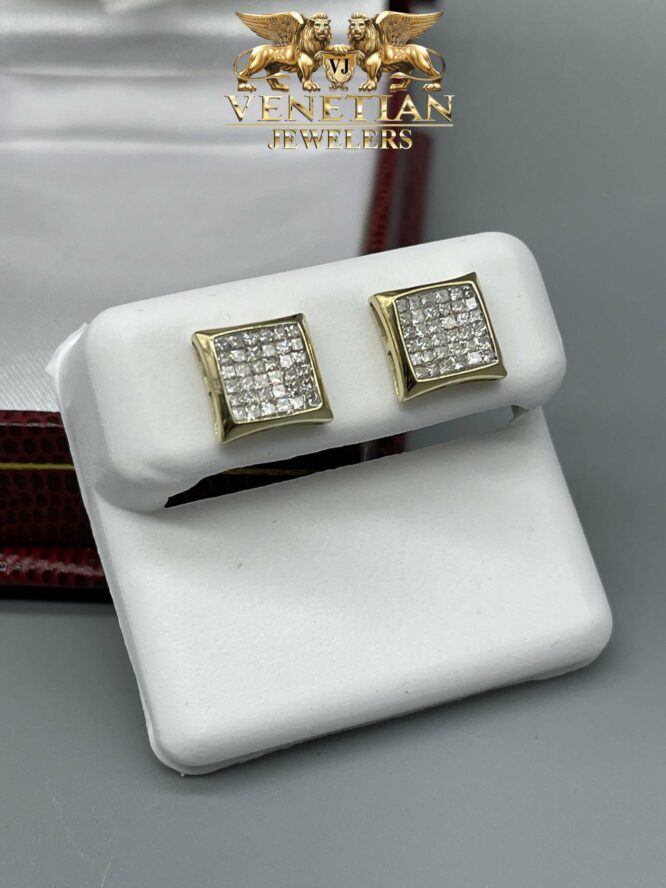 10KT 0.65CT Yellow Invisible Set Diamond Earrings Screw Backs