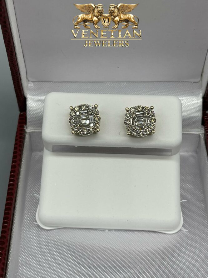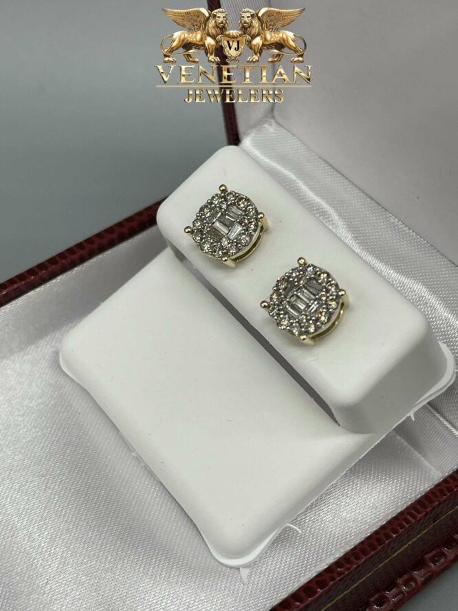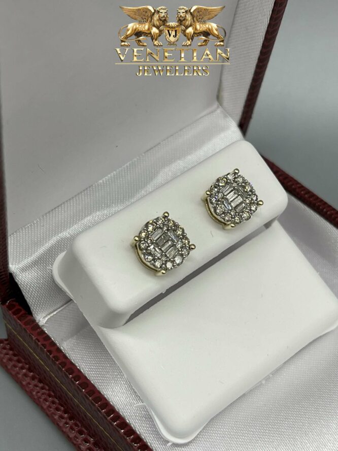 10KT 1.00CT Yellow Gold Baguette Diamond Earrings Screw Backs