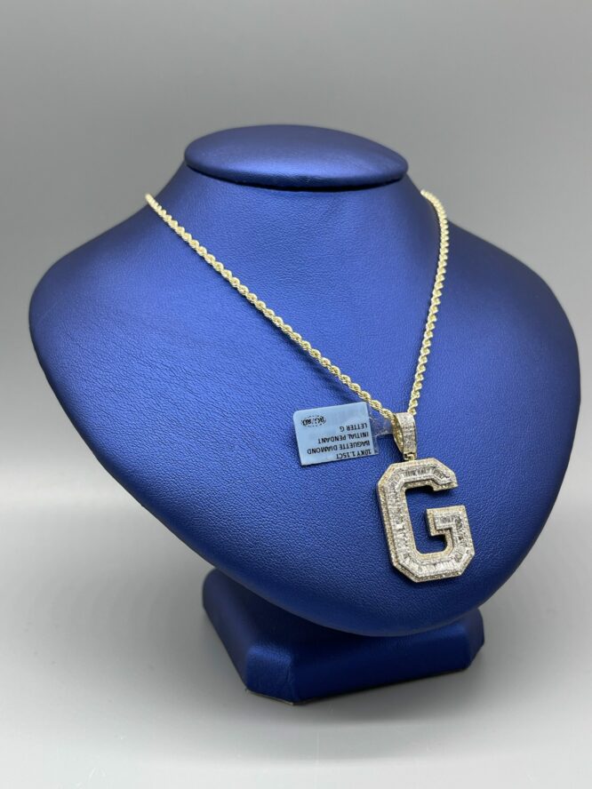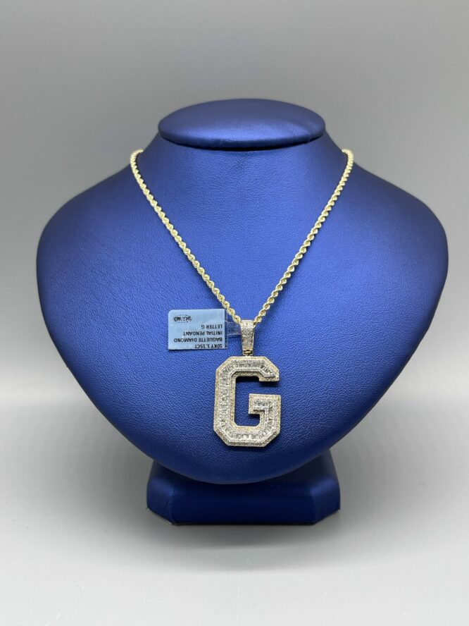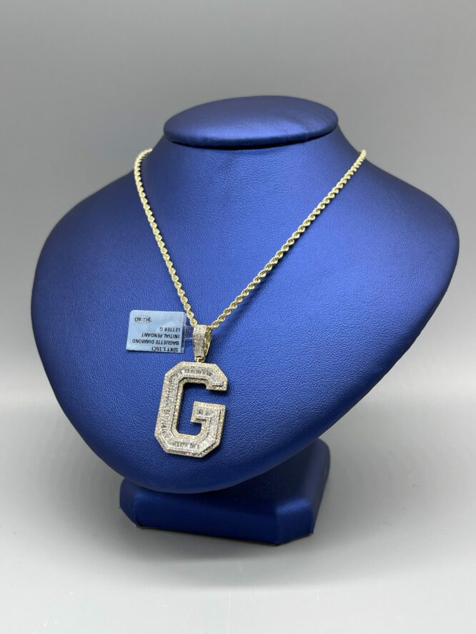 10KT 1.15CT Baguette Diamond Initial G With “22 Inches Rope Combo Set Approx weight Of Chain 3.0Grams