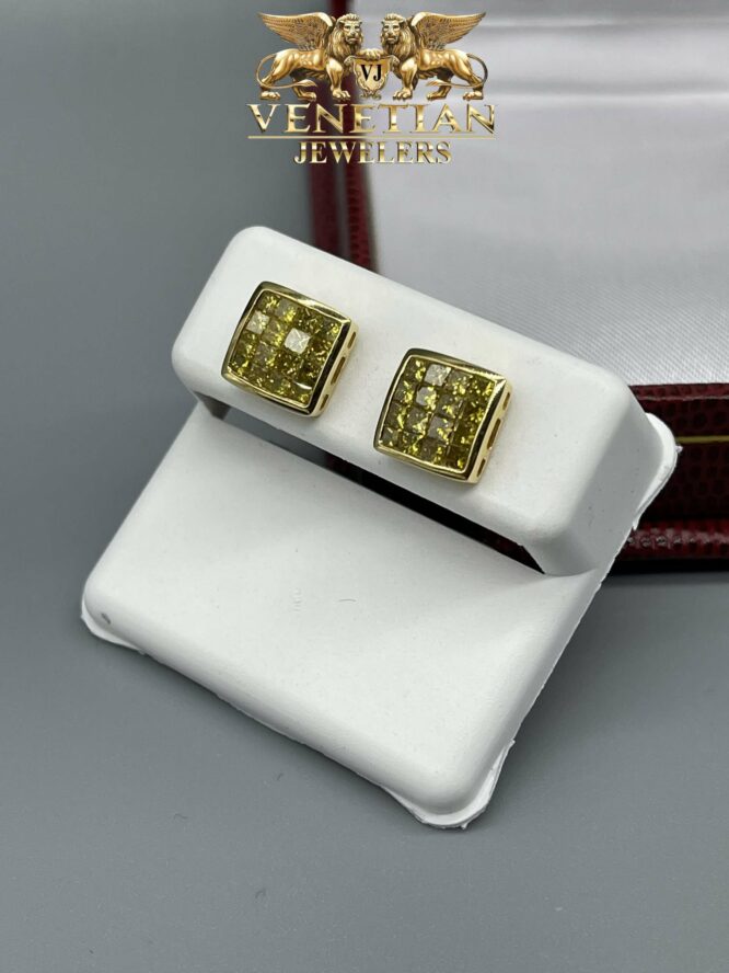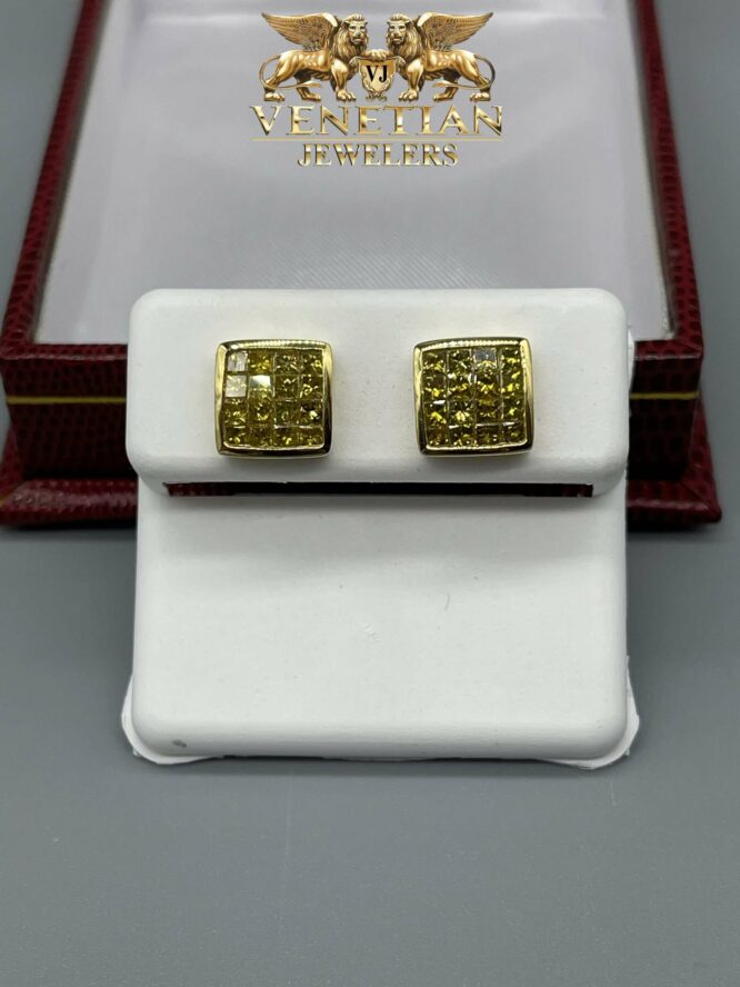 10KT 1.35CT Yellow Canary invisible Set Diamond Earrings Screw Backs Yellow Gold Setting