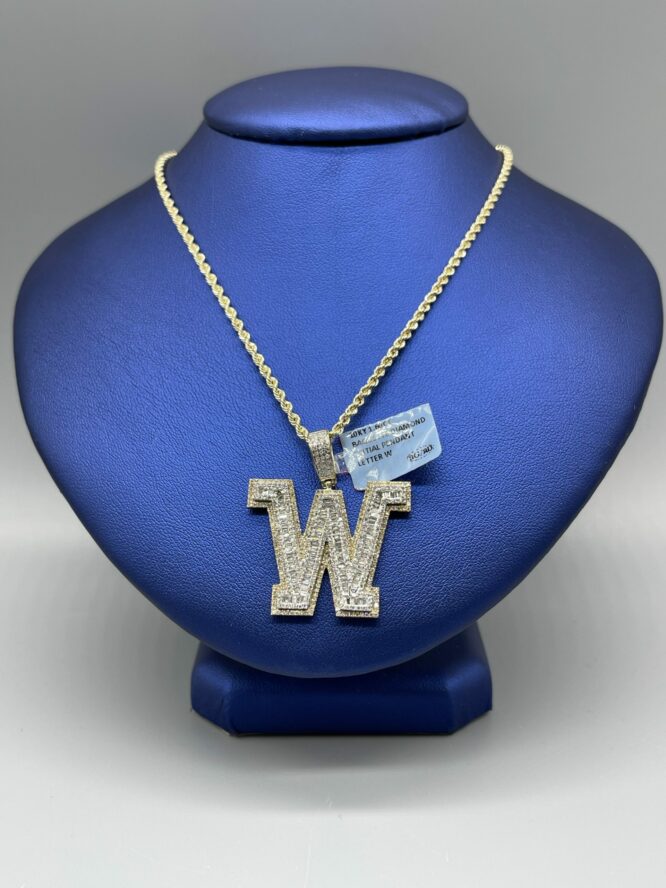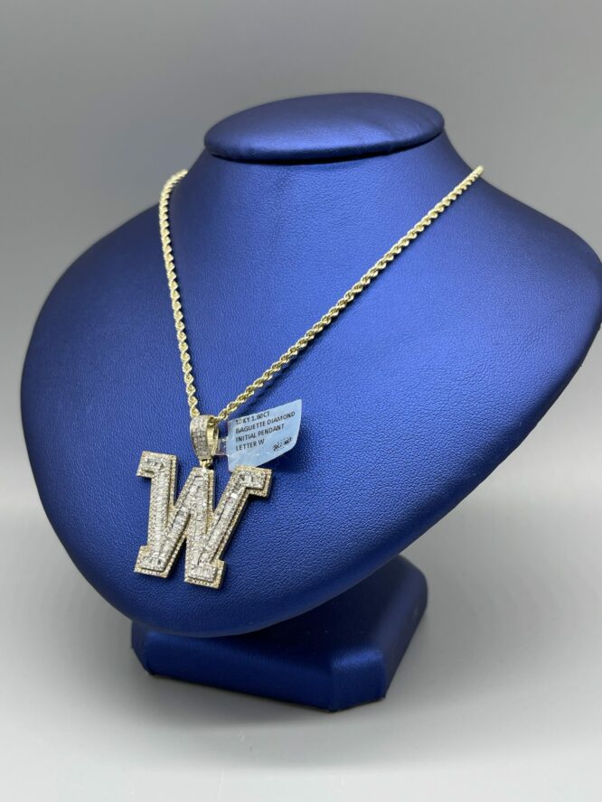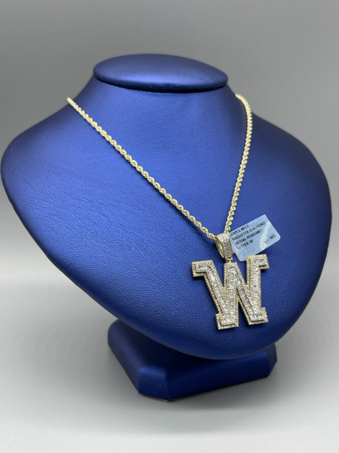 10KT 1.600CT Baguette Diamond Initial M With “22 Inches Rope Combo Set Approx weight Of Chain 3.0Grams