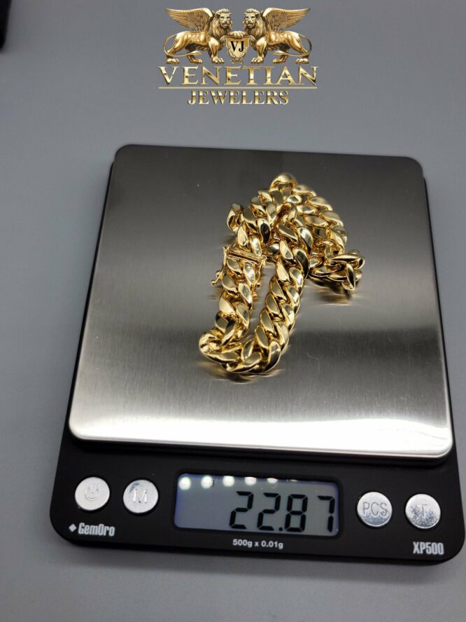 10KT “9 Inches 10MM Miami Cuban Bracelet Approx Weight 22.87 Grams