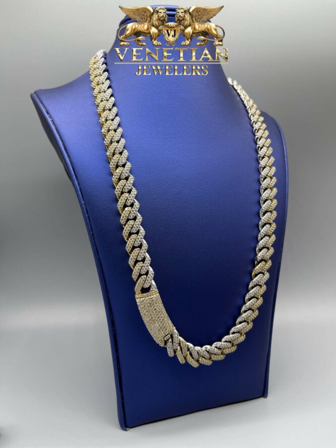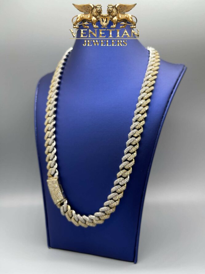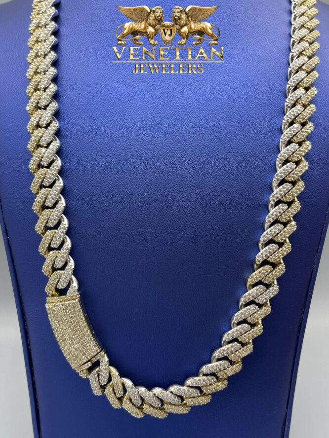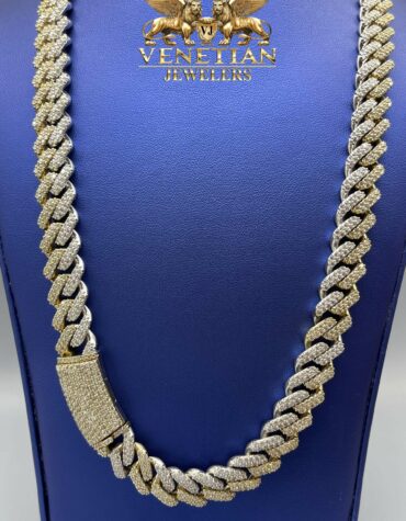 10KT 20.98CT Diamonds Two/Tone Miami Cuban “22Inches Solid Gold Prong Set