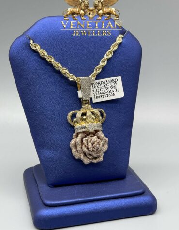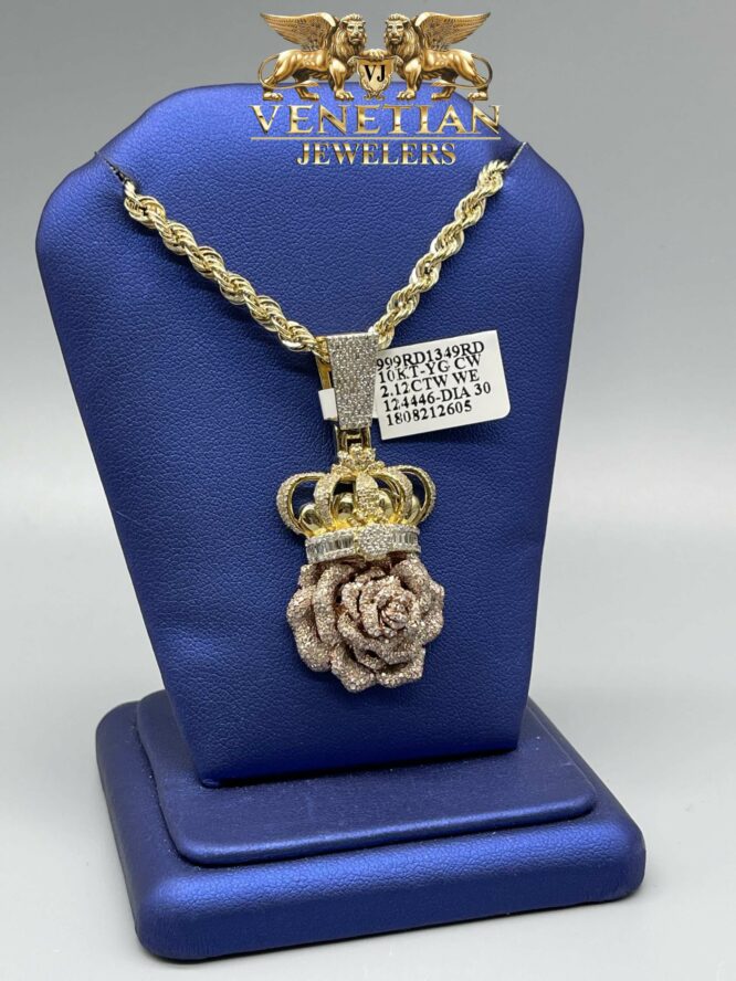 10KT 2.12 CT Diamond Rose Crown Pendant Come With “20 Inches Rope Approx Gold Weight 6.0Grams