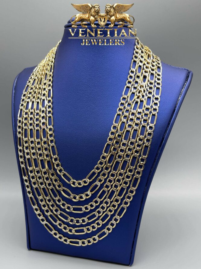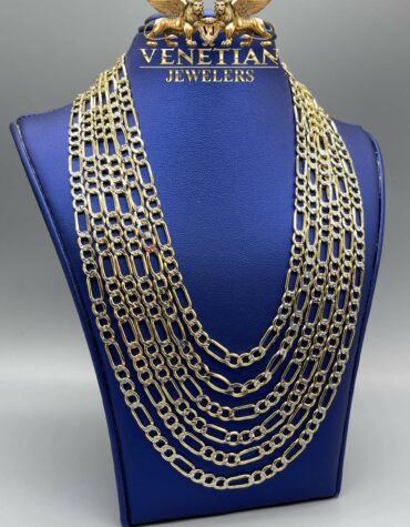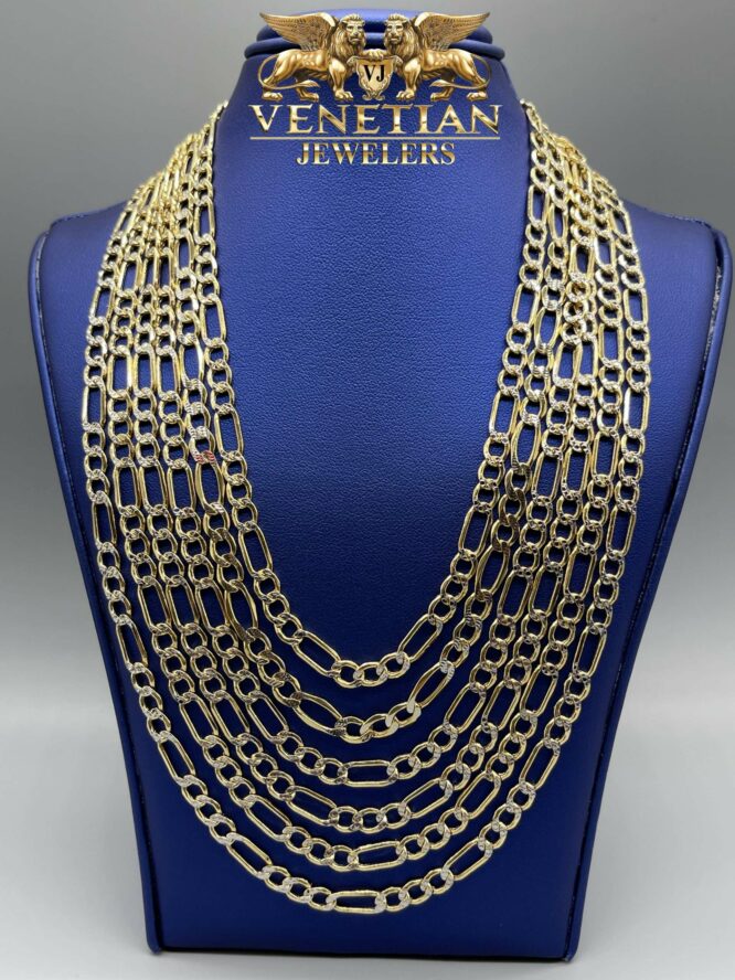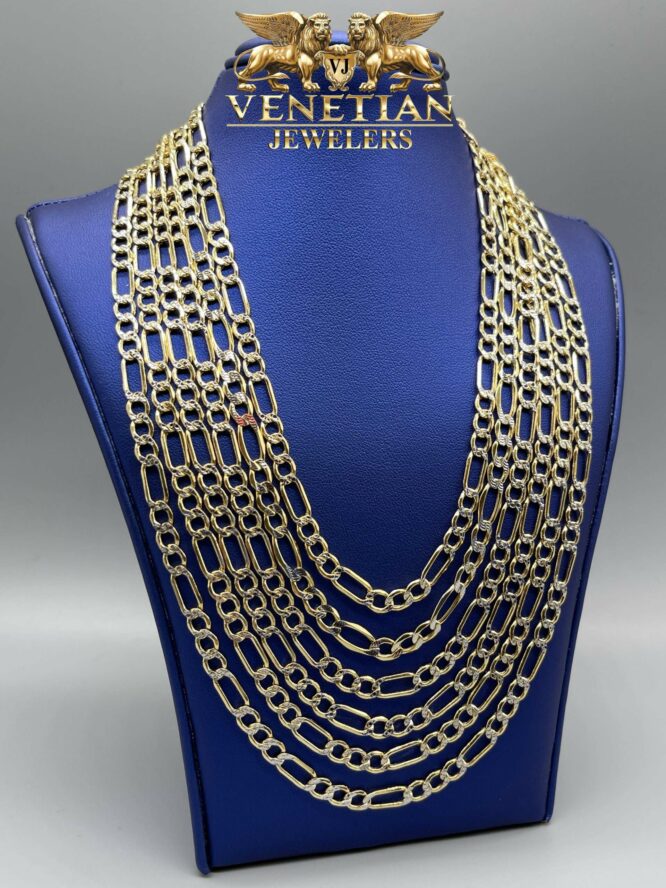 10KT 5MM Figaro Diamond Cut With WhiteGold And Yellow Gold Available In “24 / “22 / “20 Inches