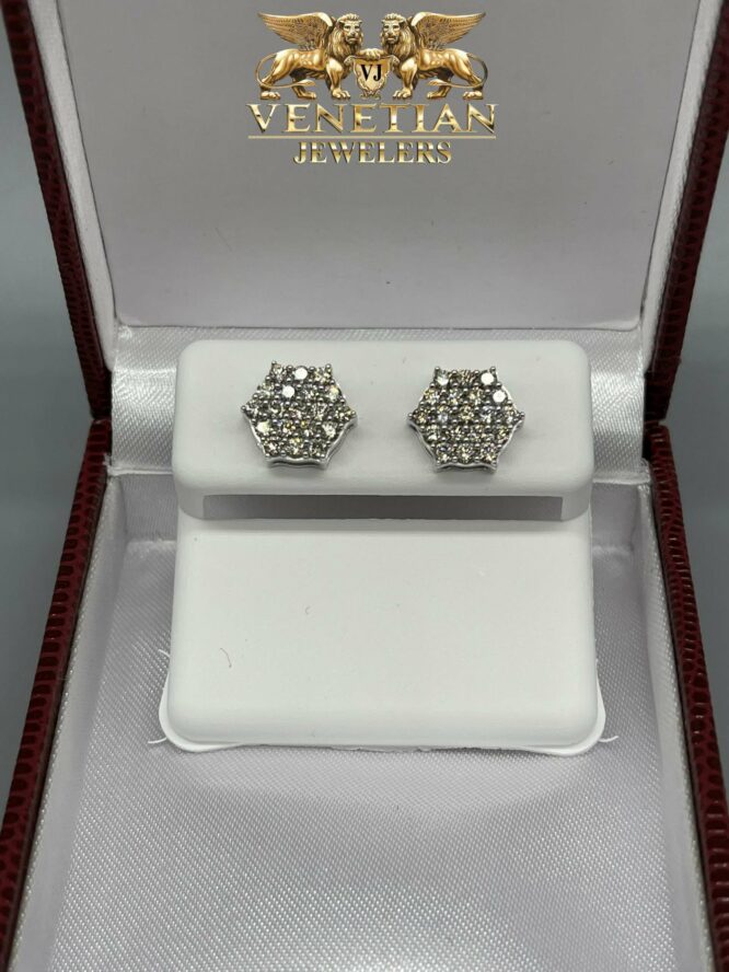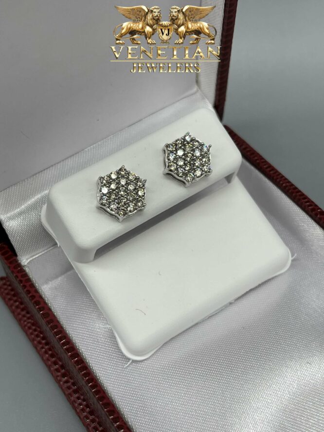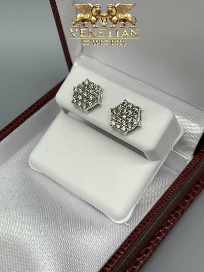 10KT .90CT White Gold Octagon Style Diamond Earrings With Screw Backs