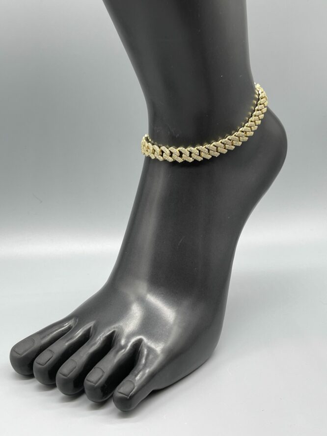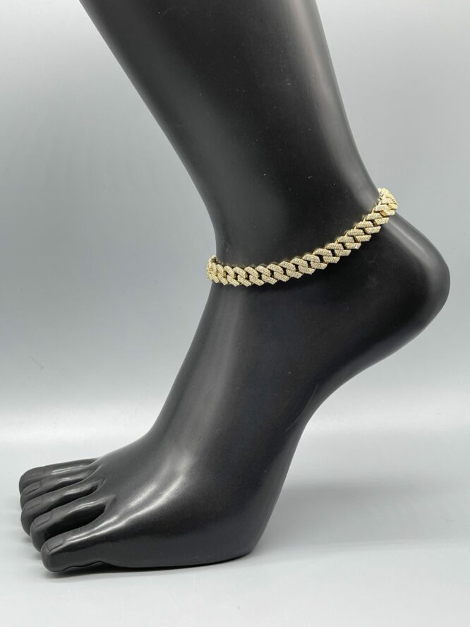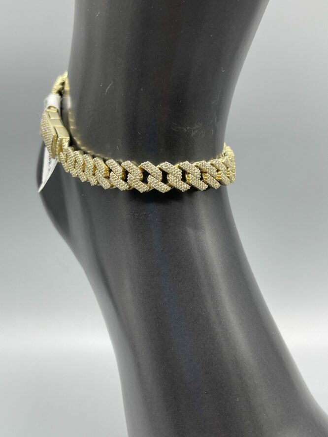 10KT 9MM Diamond MiamiCuban Anklet 3.35CT Diamonds Prong Set Size 9″
