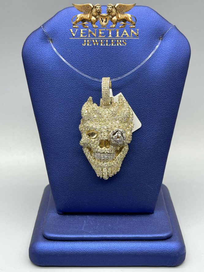 10KT 7.00CTW Diamond Skull pendant 2 Inches Tall Solid Back