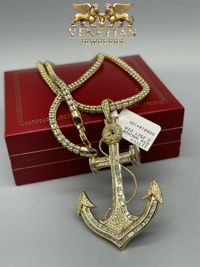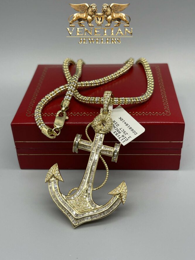 10KT 3.25CT Diamond Anchor Cross Combo Set Comes With Ice Chain “22 Inches Approx Weight 14.00 Grams
