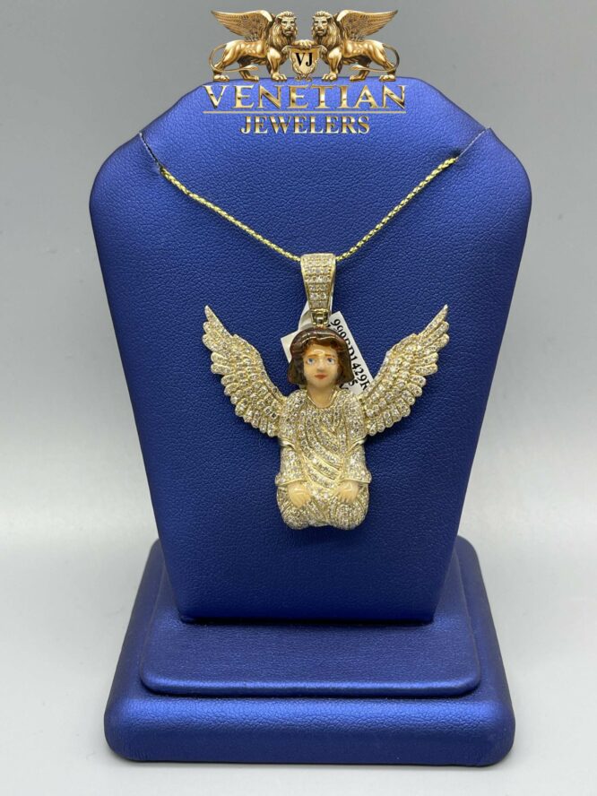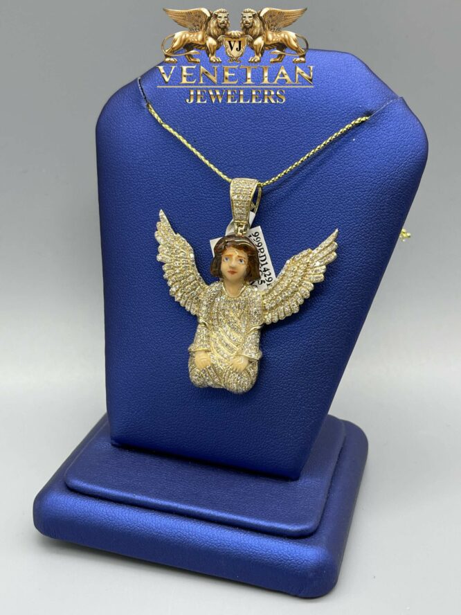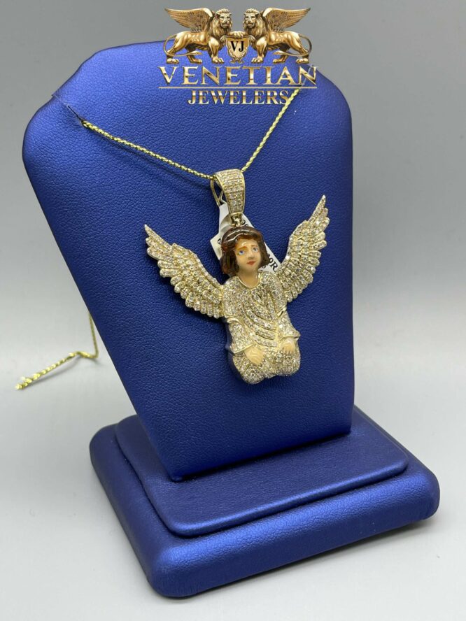 10KT Gold 2.40CT Real Diamonds Enamel Angel