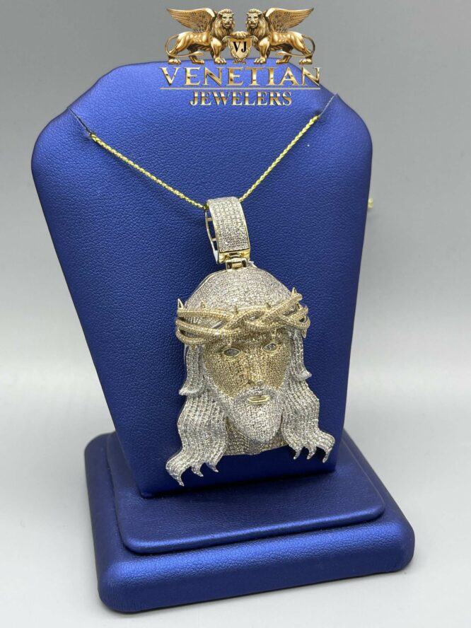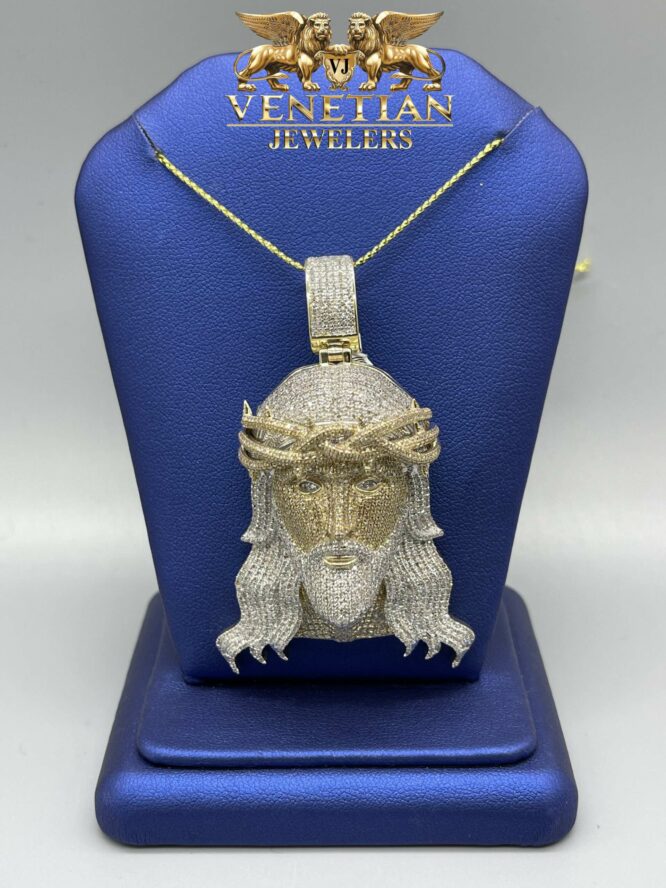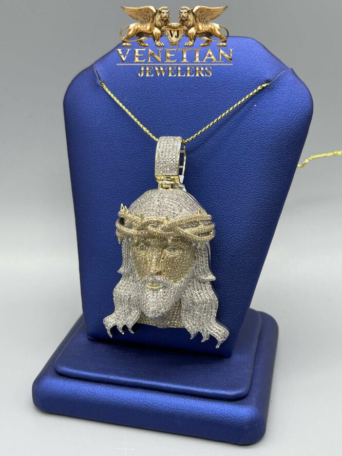 10KT Gold 3.82CT Diamond Jesus Pendant 3 Inch Tall Including Bell Approx 24.70Grams Gold Weight
