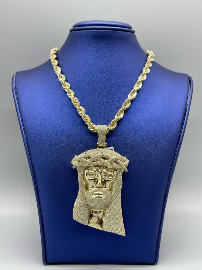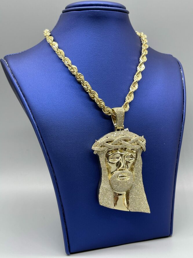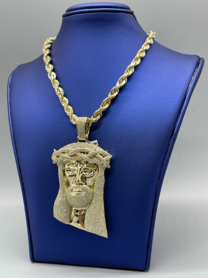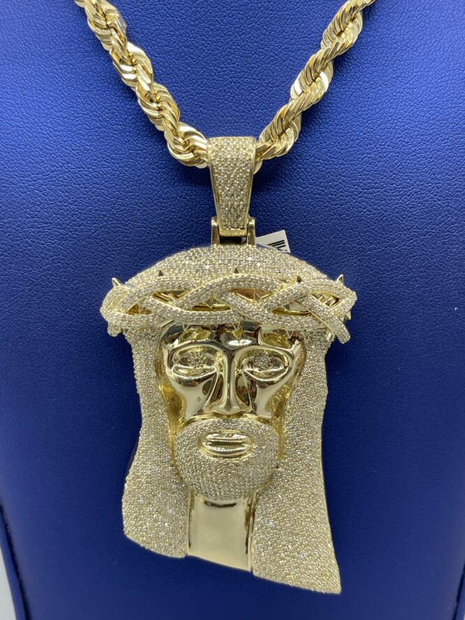 10Kt 3.66CT Diamond Jesus With Matching Gold “24 Inch Rope
