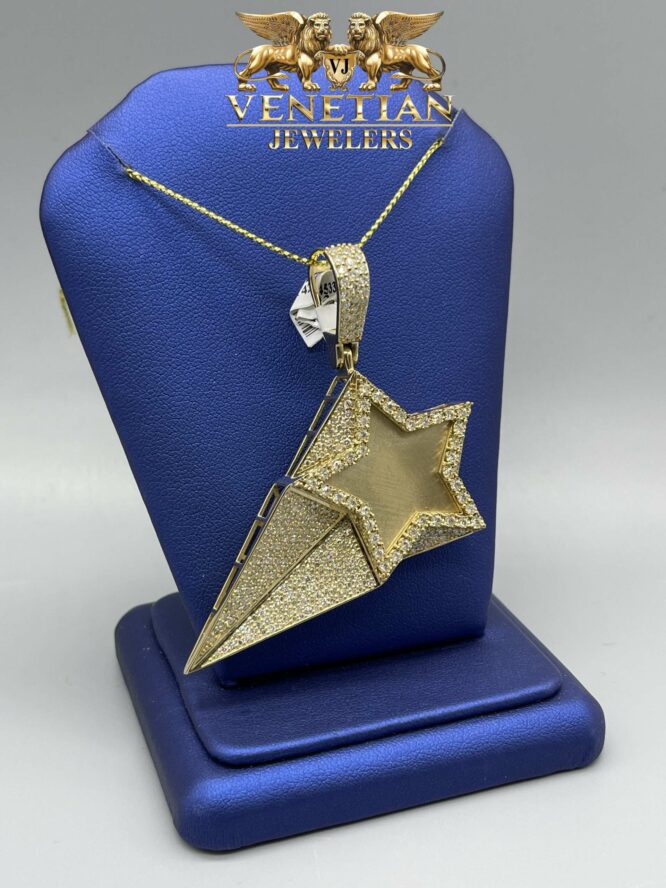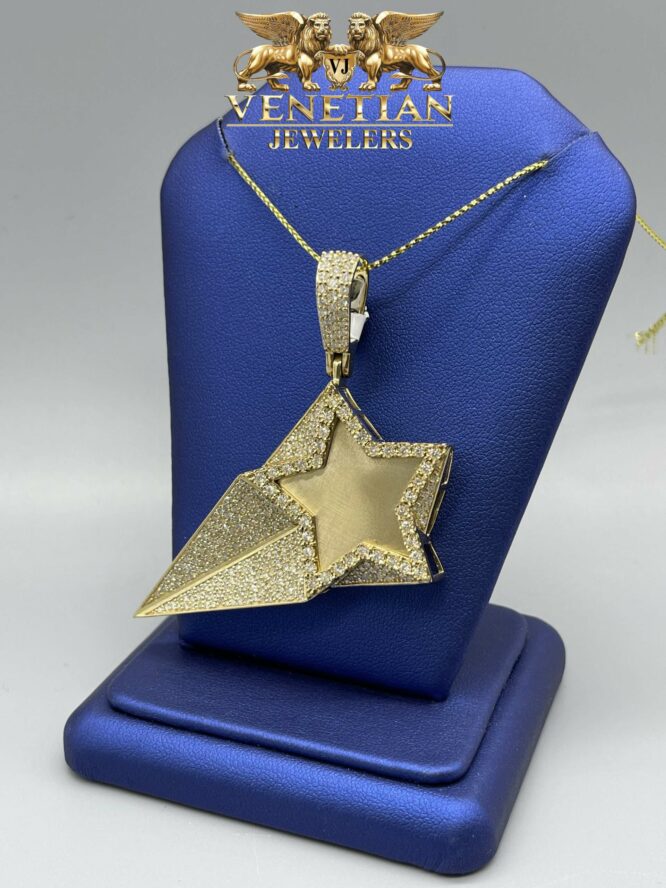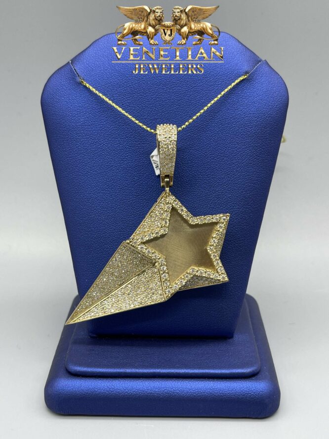 10KT Gold 2.57CT Diamond Shooting Star Memory Pendant Beautifully Crafted All Hand Set Diamonds