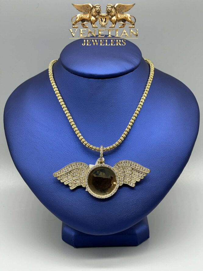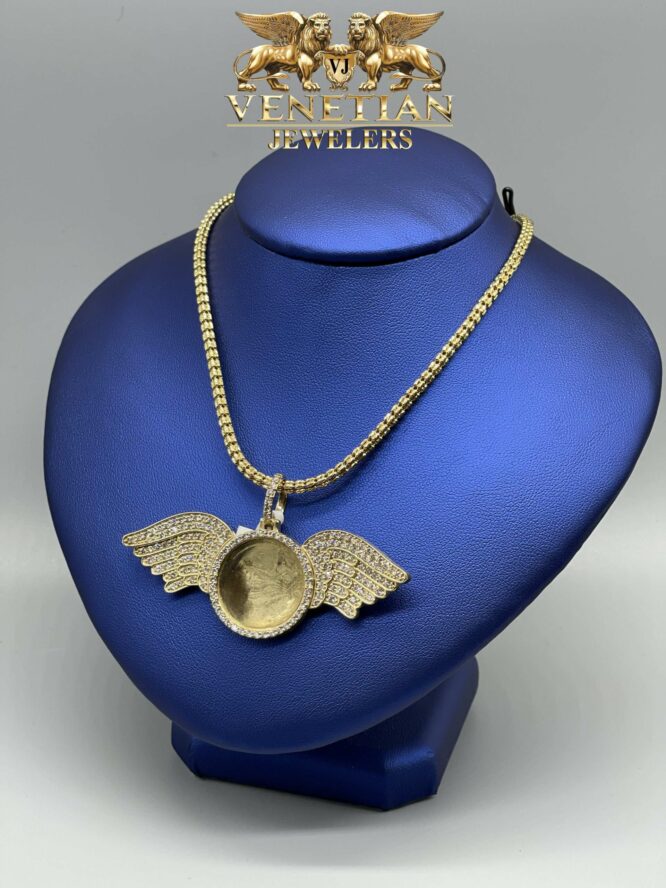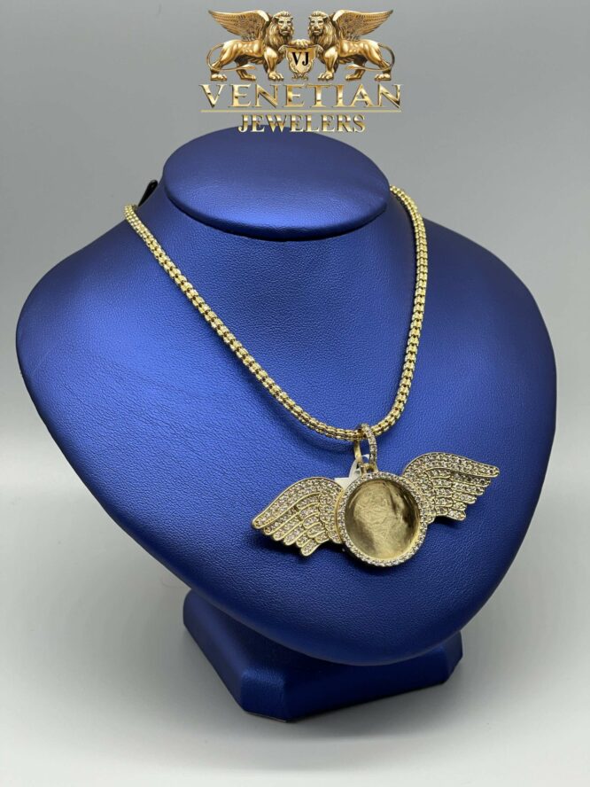 10KT Diamond Memory Pendant 2.64CT Diamond With Wings Combo Set Comes With approx 13.00Grams Gold Necklace “20 Inches.