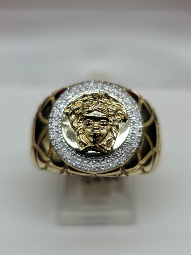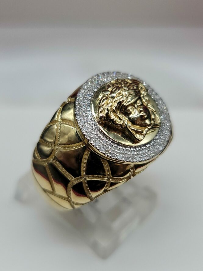 10KT Gold 0.22CT Diamond Mens Medusa Head Nugget Ring Size 10 Approx Gold Weight 9.76 Grams