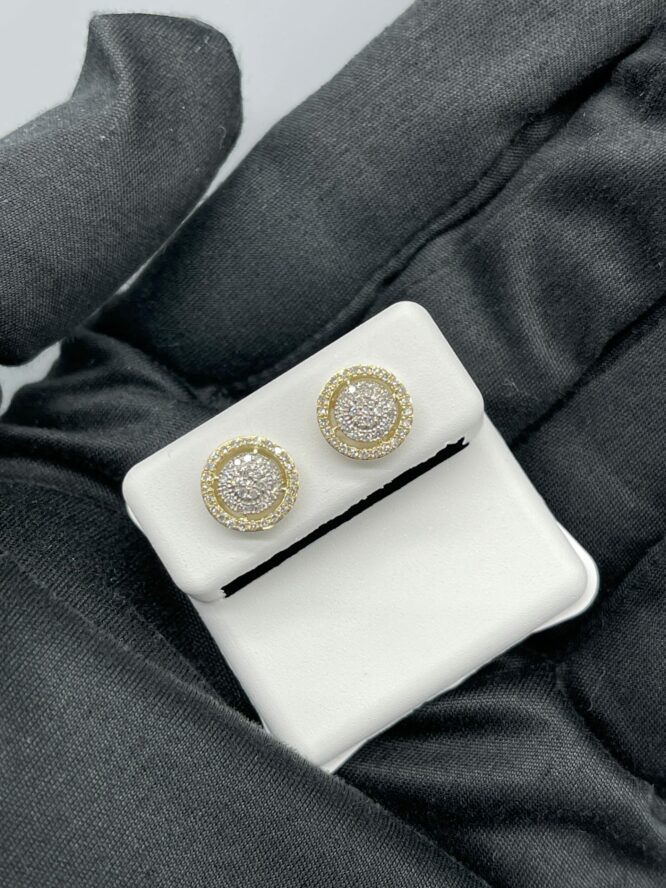 10KT Gold 0.25CT HaloSet Dia Earrings Screw Backs Big Look