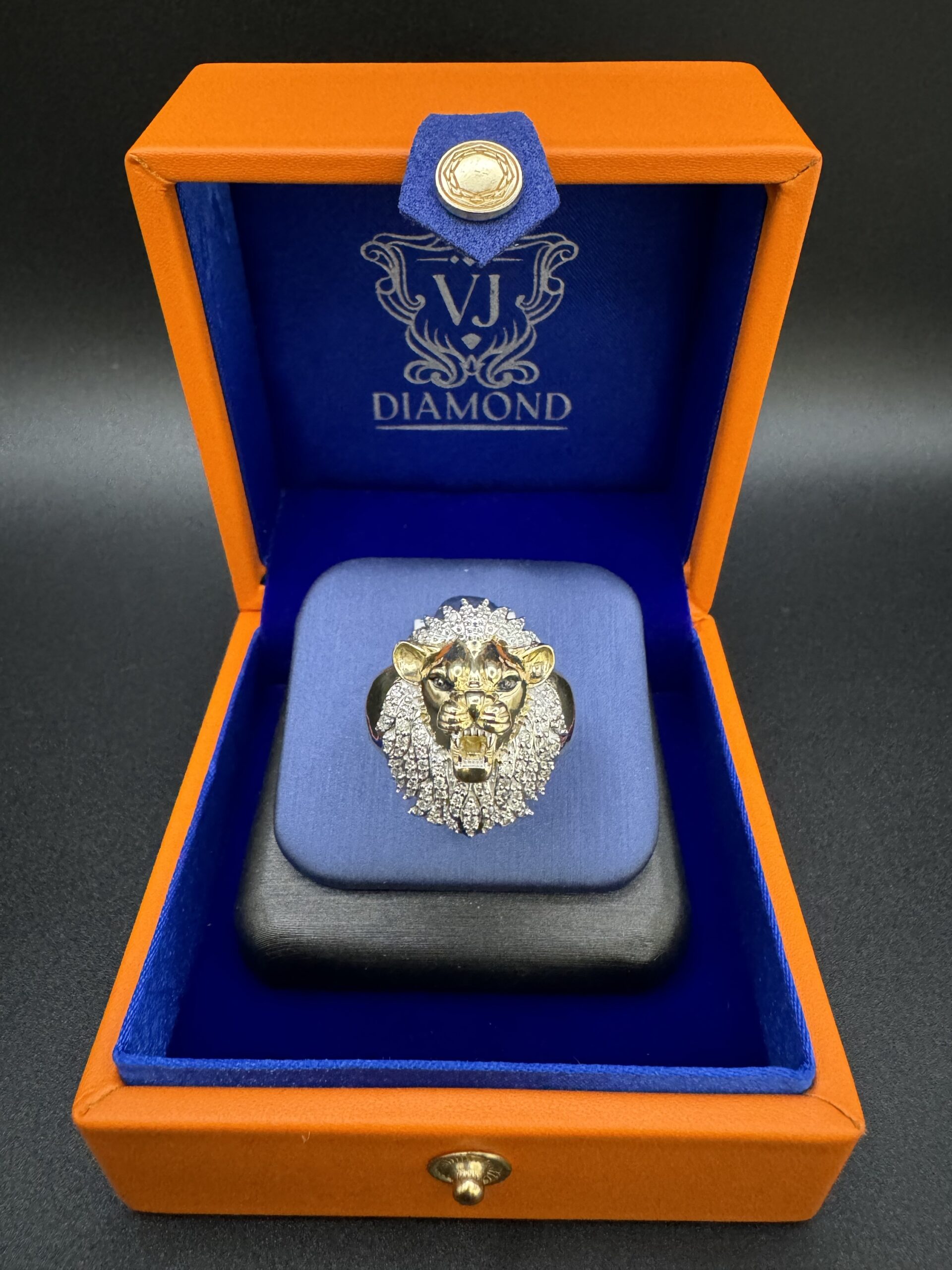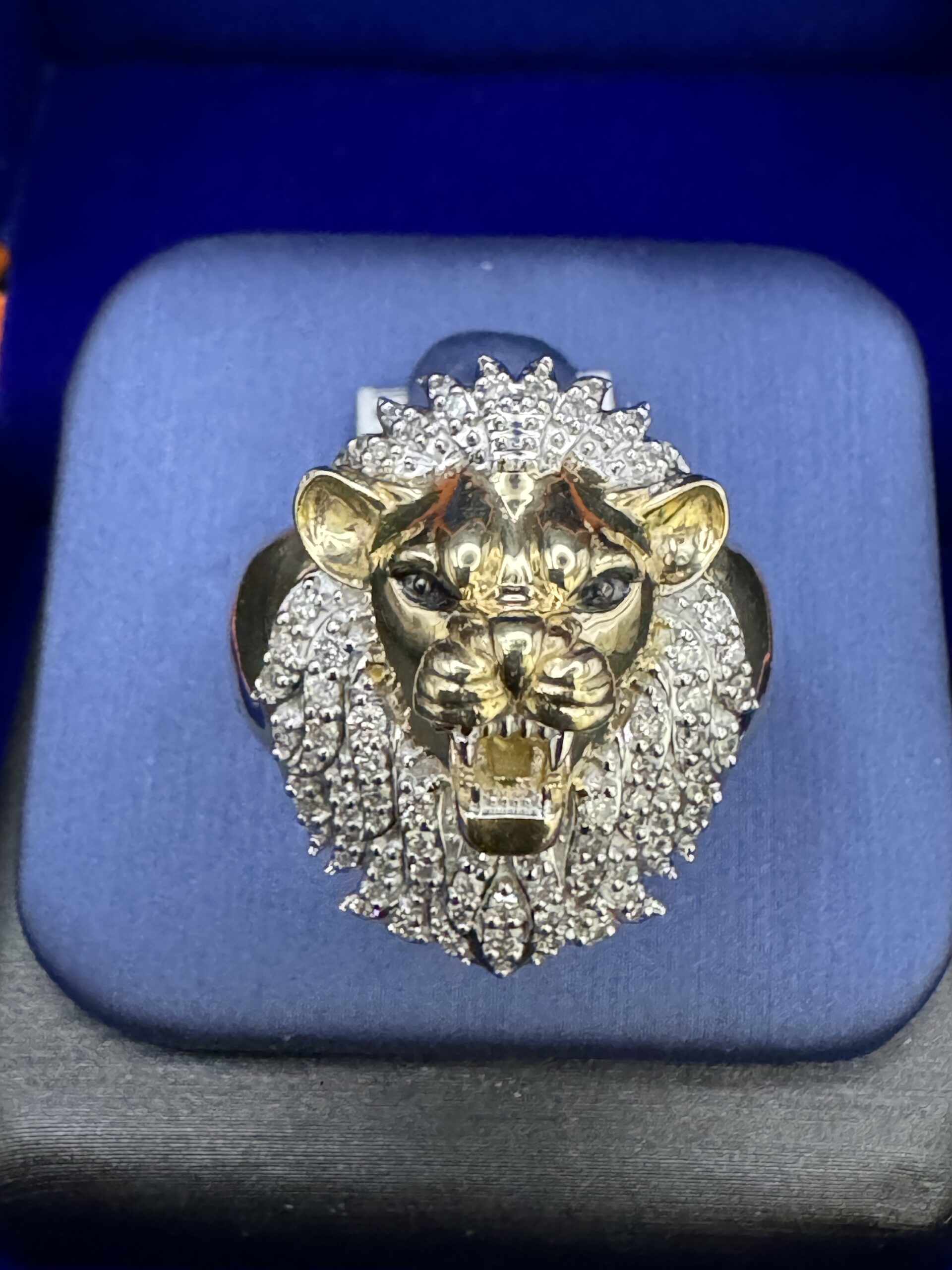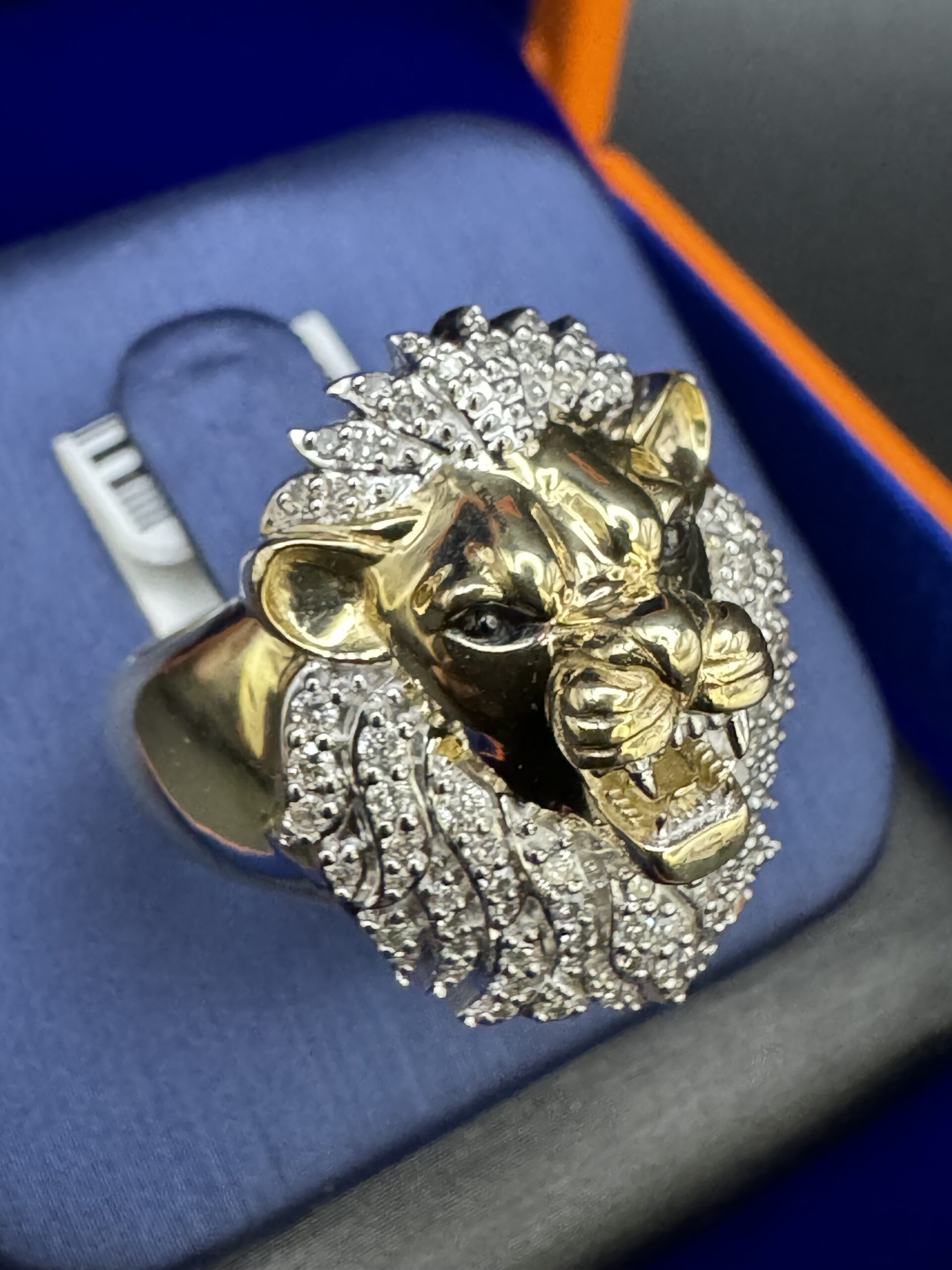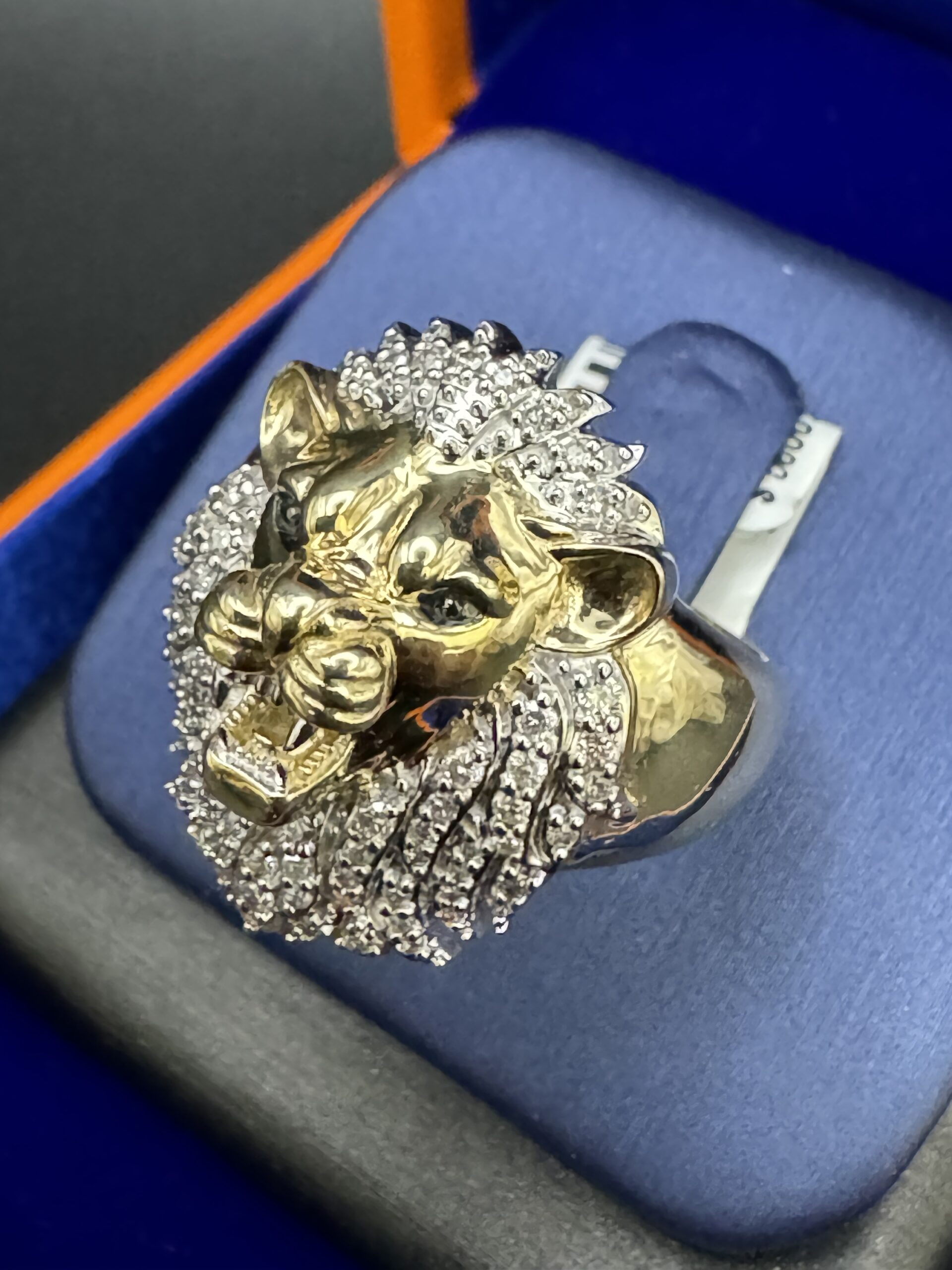 10KT Gold 0.50CT Diamond Mens Lion Ring RoundCut Diamonds Size 10 Approx Gold Weight 7.8 Gram Sizing Available VS Quality Diamonds
