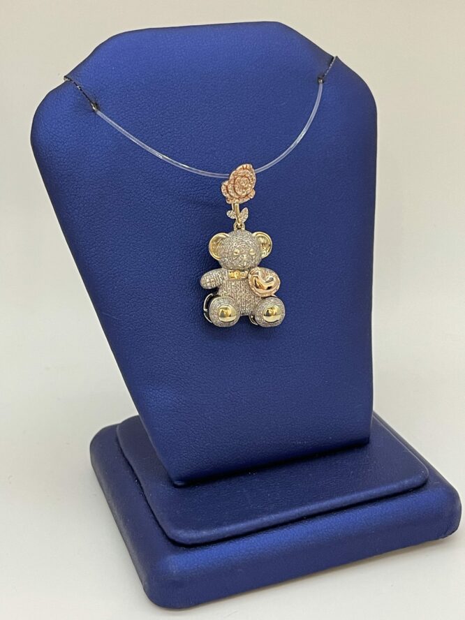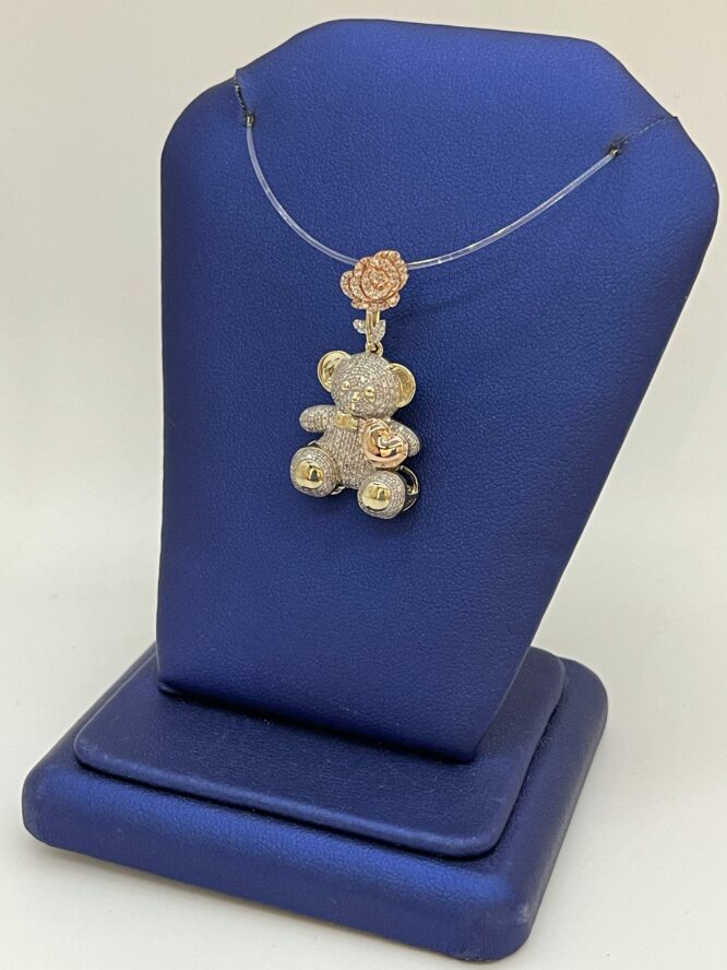 10KT Gold 0.55CT Diamond Teddybear Pendant With RoseGold Flower