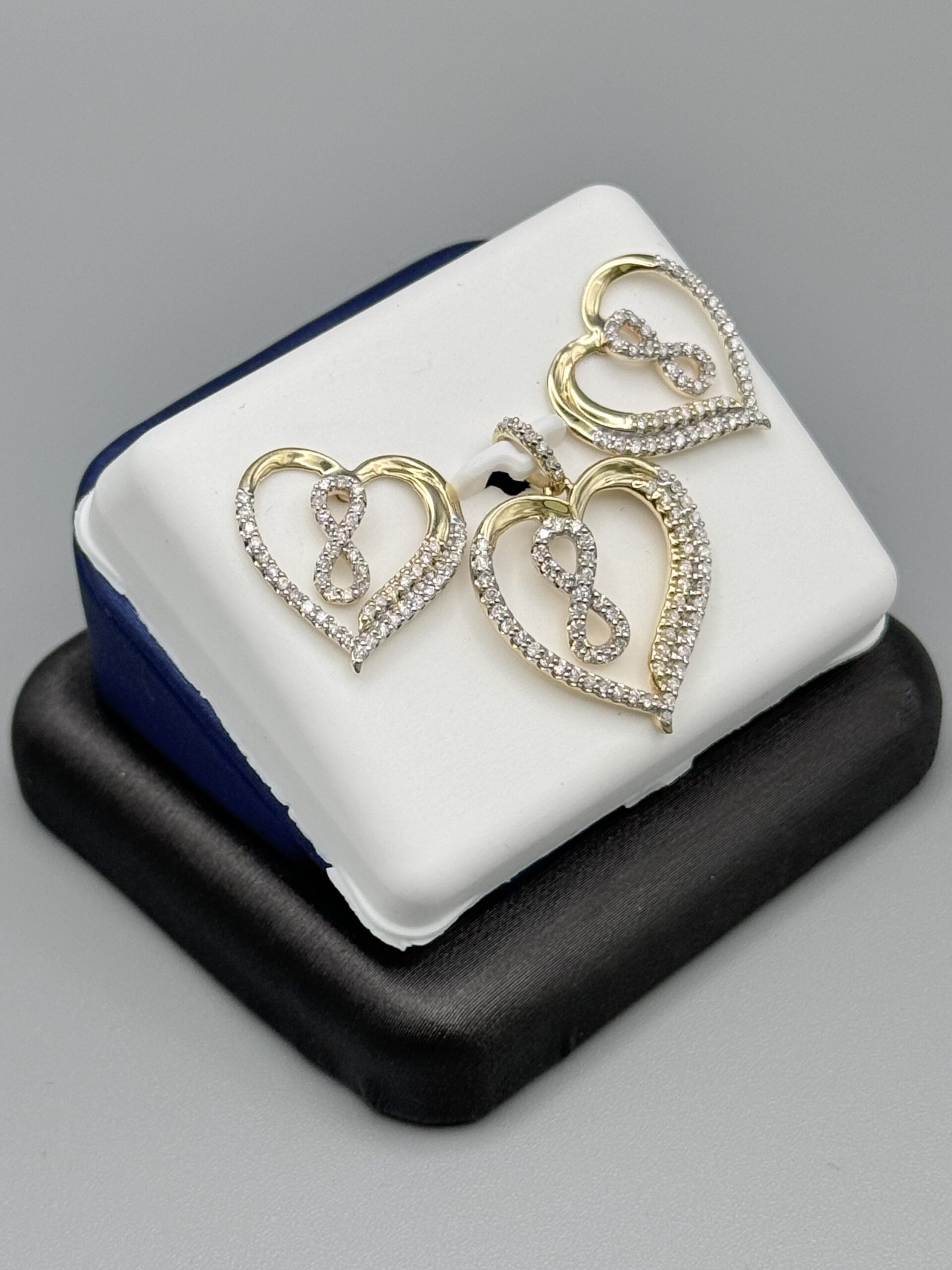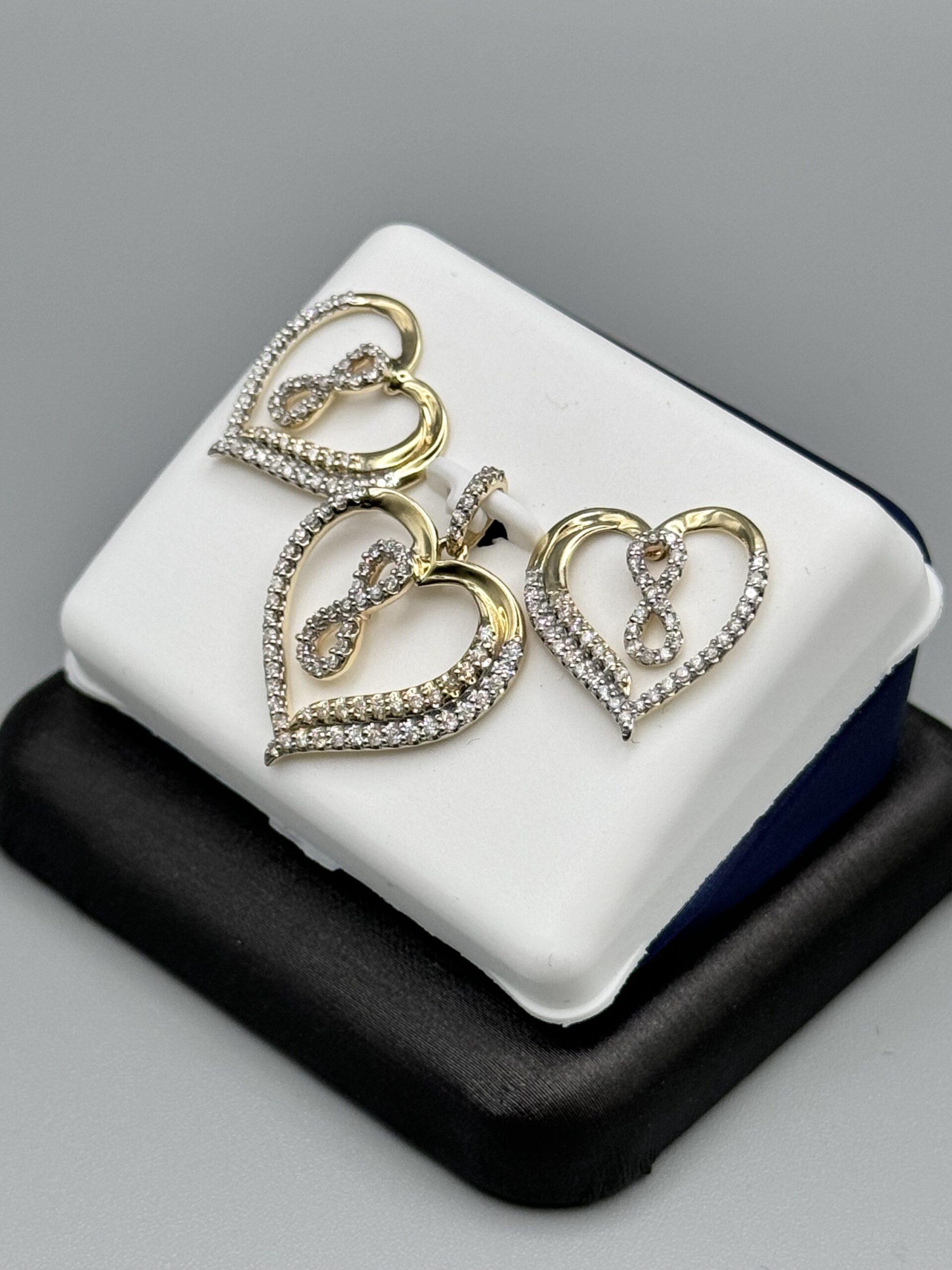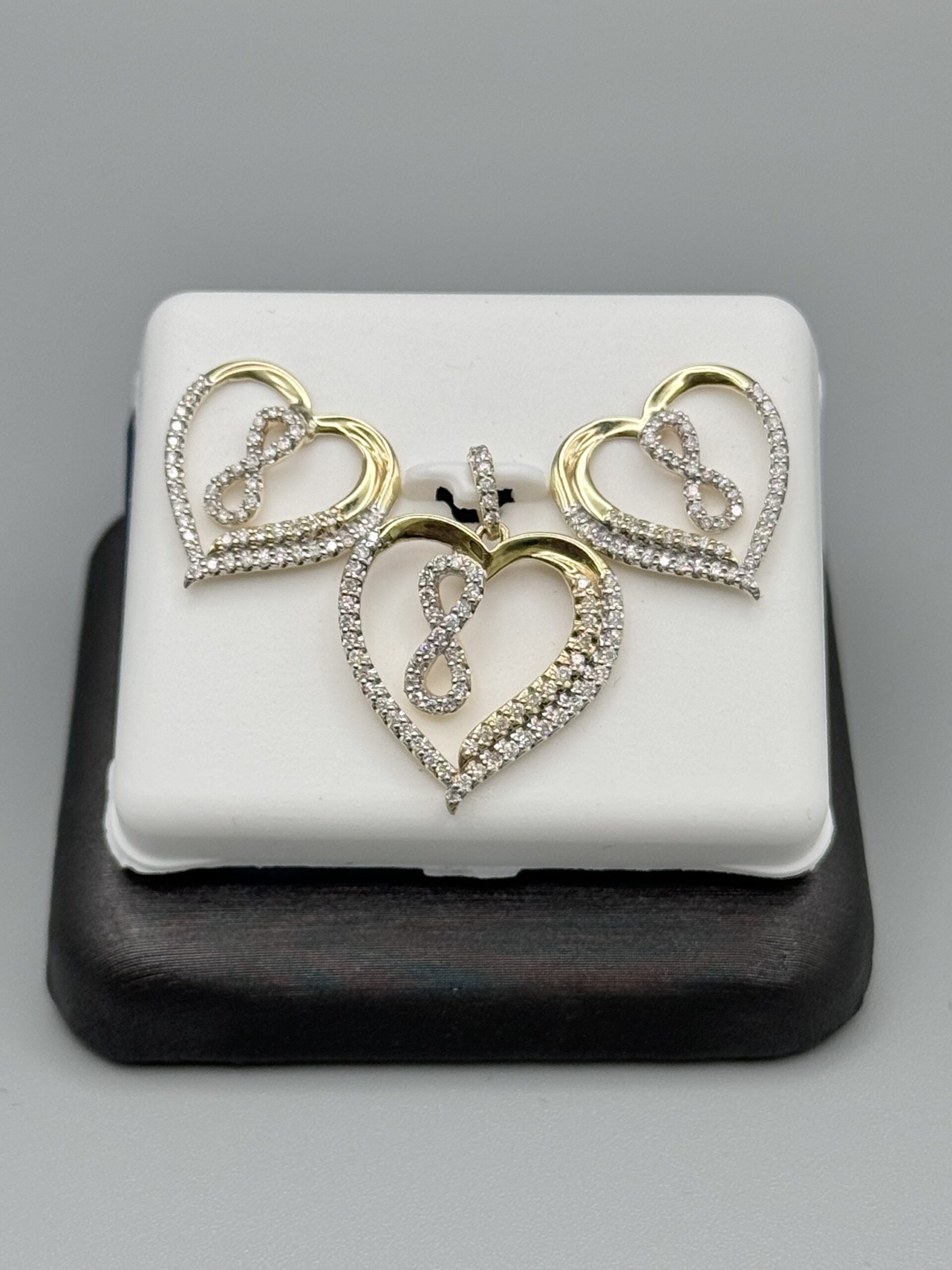 10KT Gold 0.65CT Diamond Pendant Earrings ComboSet With Infinity Design In Middle Screw Back Earrings