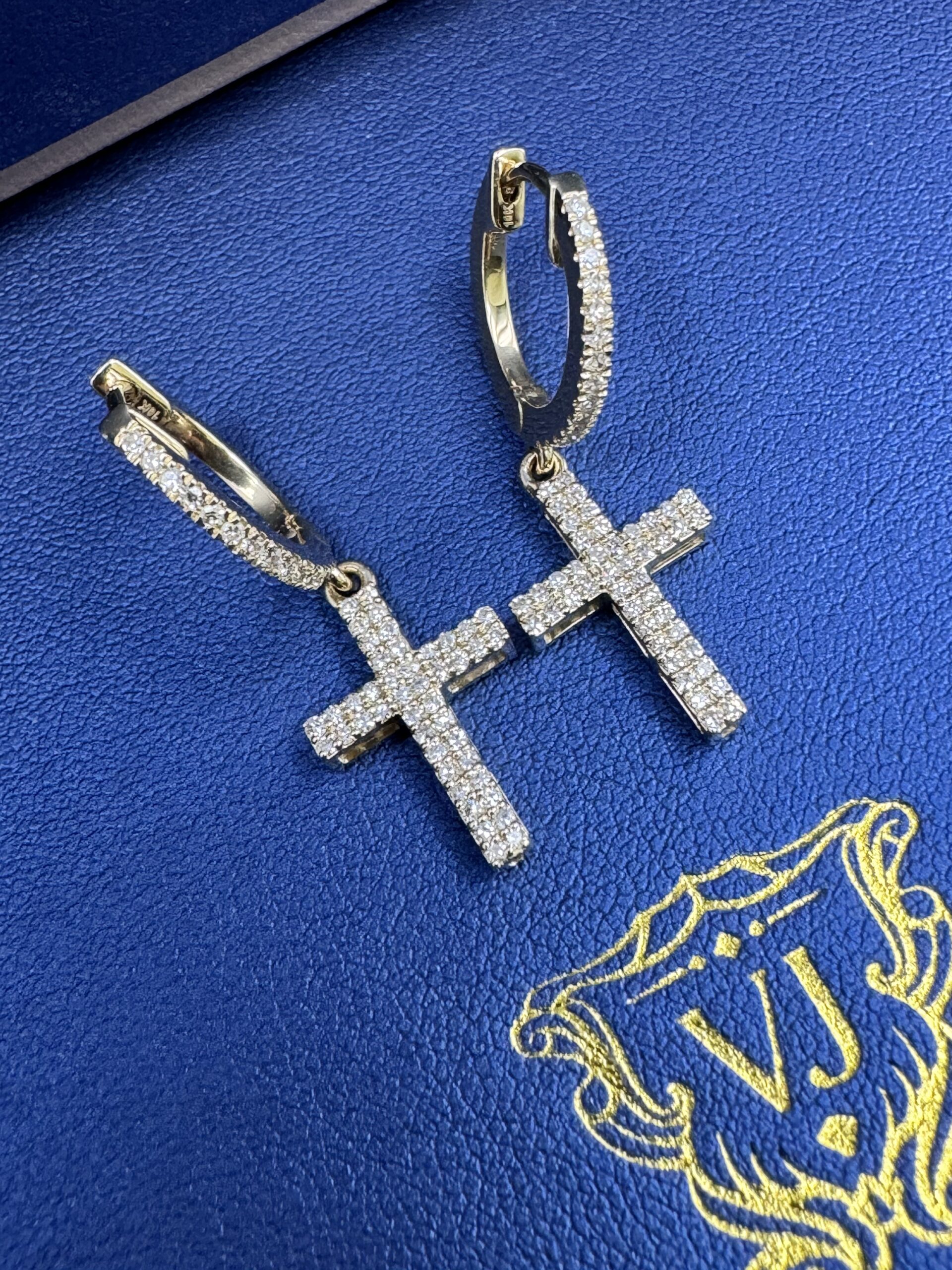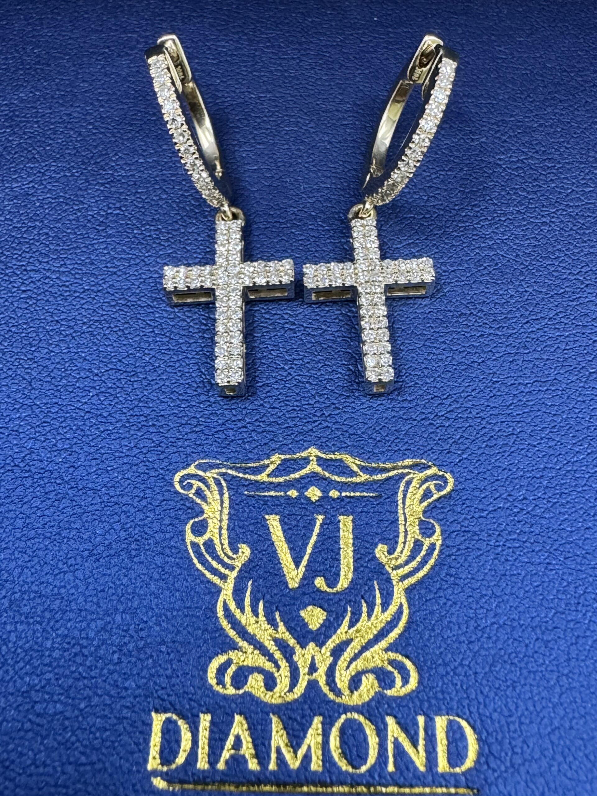 10KT Gold 0.65CT LabGrown Diamond Dangling Cross Earrings VS Quality Diamonds Approx Gold Weight 5.0 Gram 0.75″ Tall By 0.50″ Wide