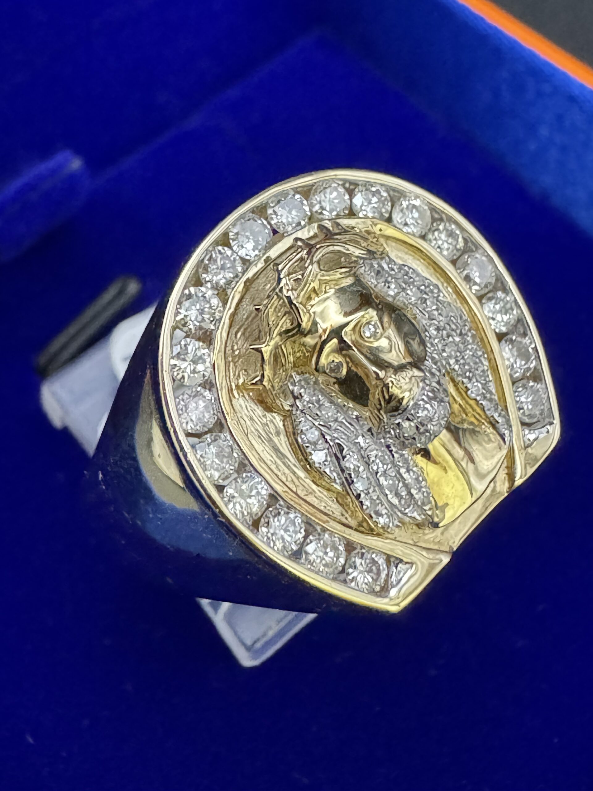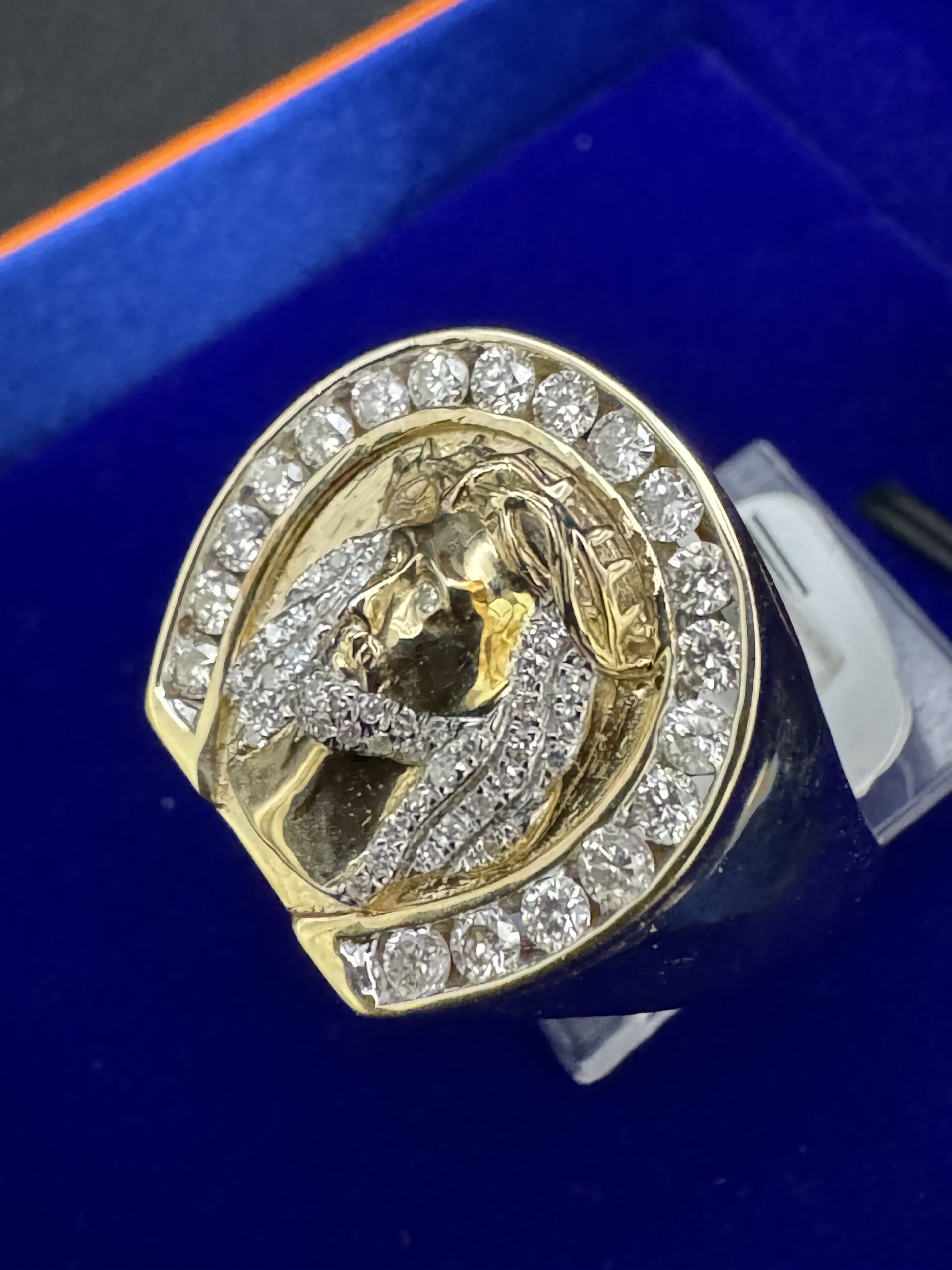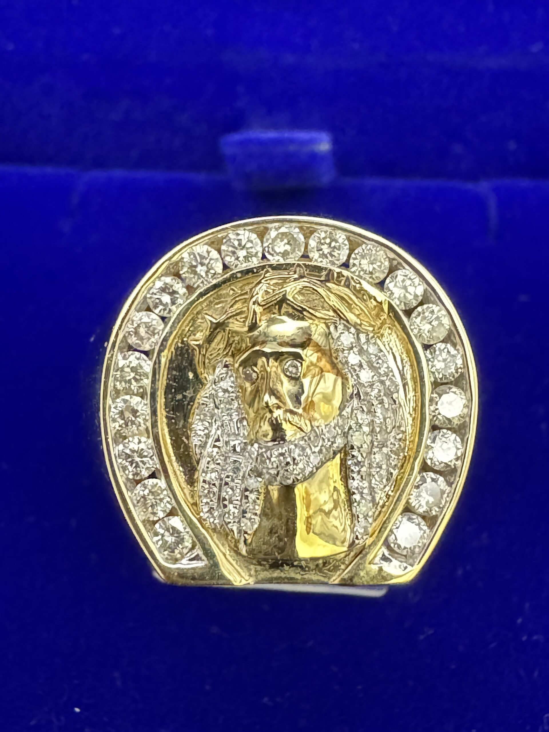 10Kt Gold 0.75CT Diamond Jesus Ring Horse shoe Design VS Quality Diamond Size 10 Approx Gold Weight 7.0 Gram