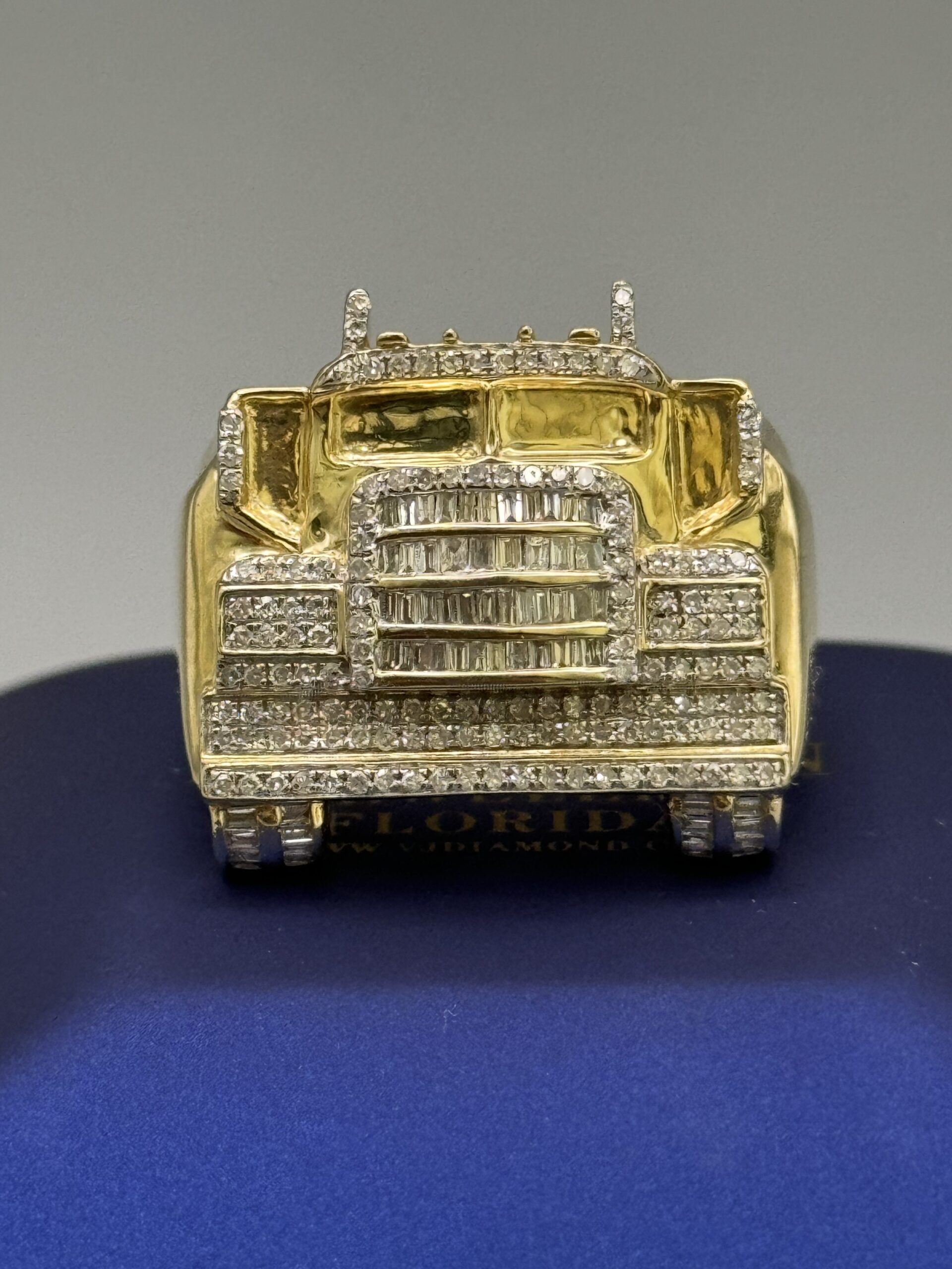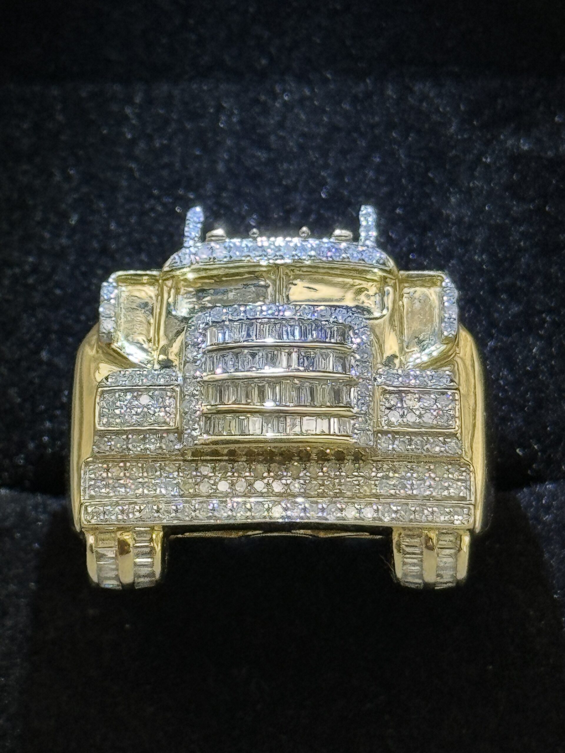 10KT Gold 0.75CT Diamond Truck Ring Very Well Detailed Size 10 Sizing Available Approx Gold Weight 8.9 Gram