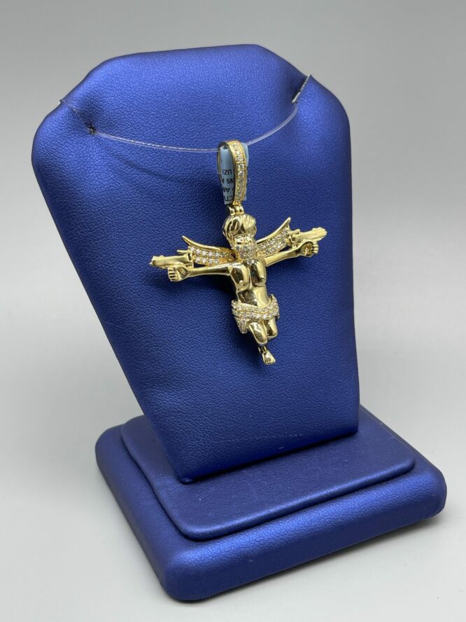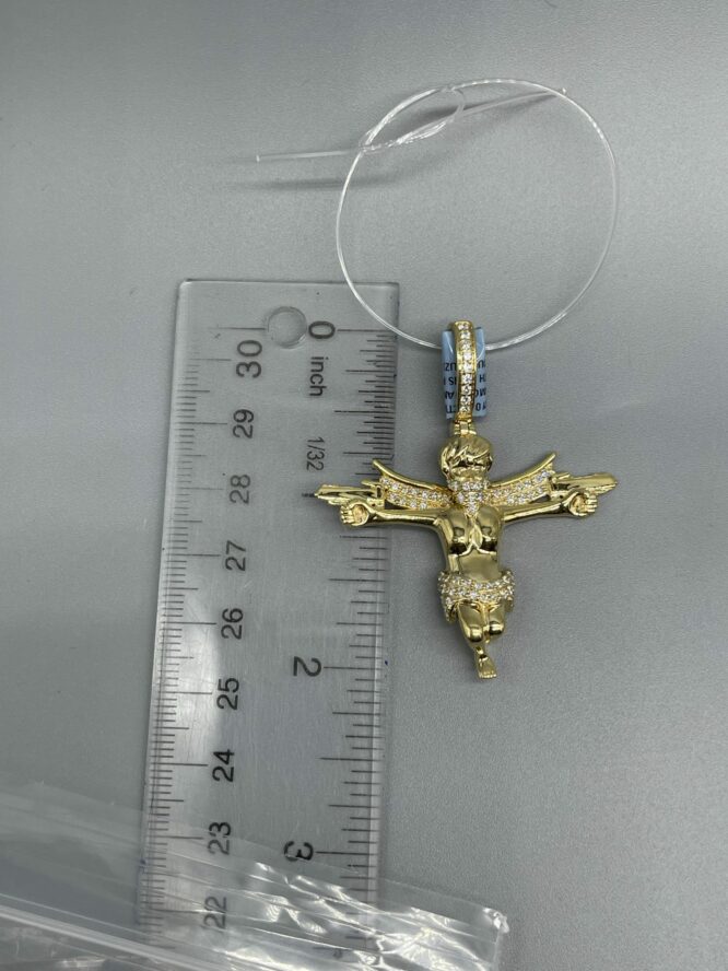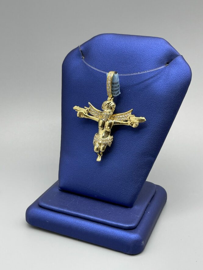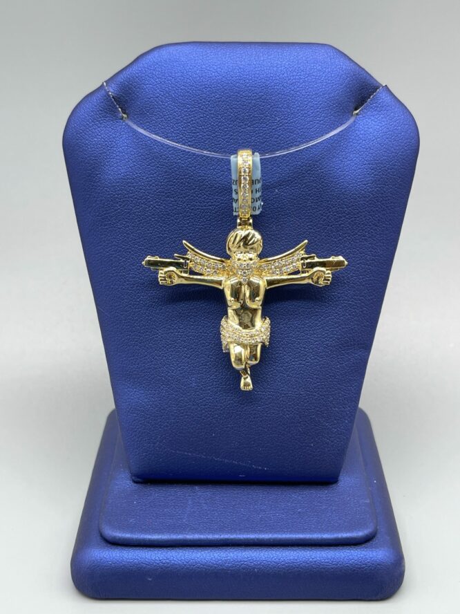 10KT Gold 0.85 CT Diamond Angel With Gun Pendant Double Uzi Approx Gold Weight 11.48Grams