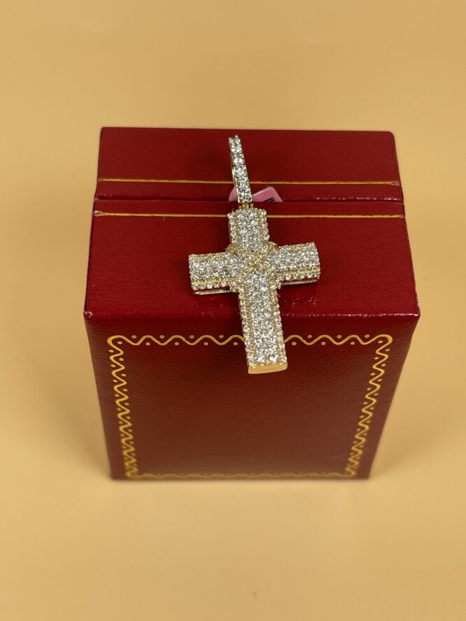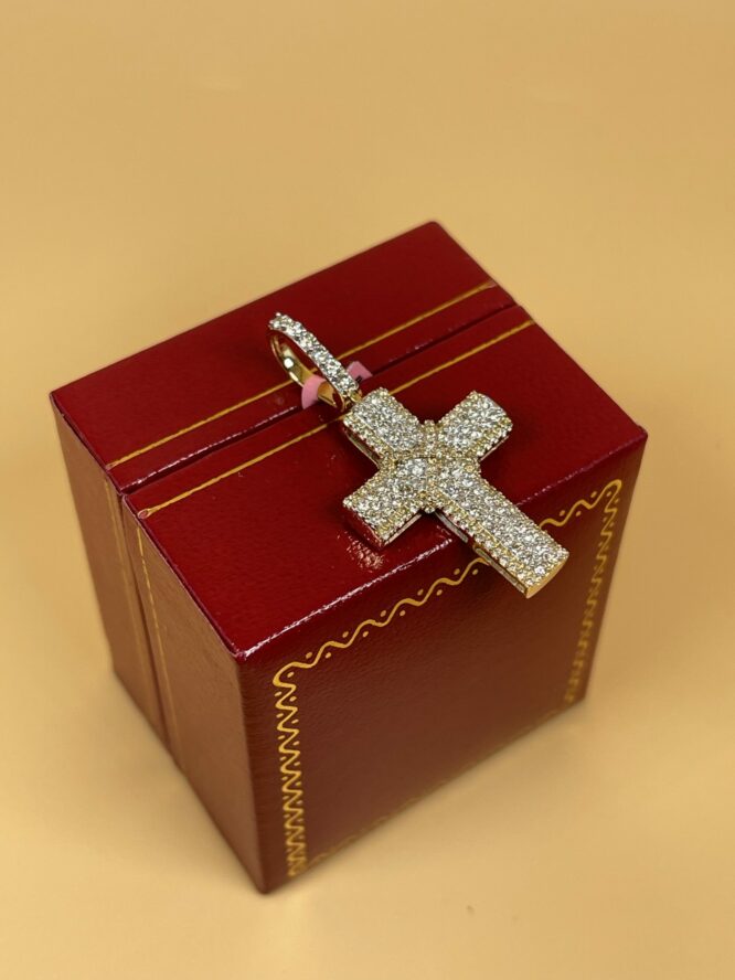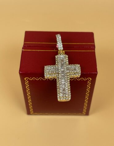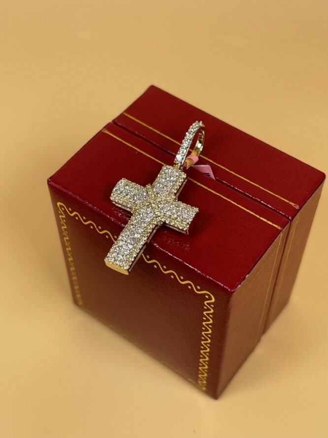 10KT Gold 0.90CT Dia Cross Pendant With Round Cut Stones perfect For Shorter Necklace
