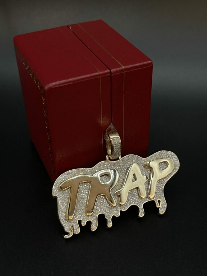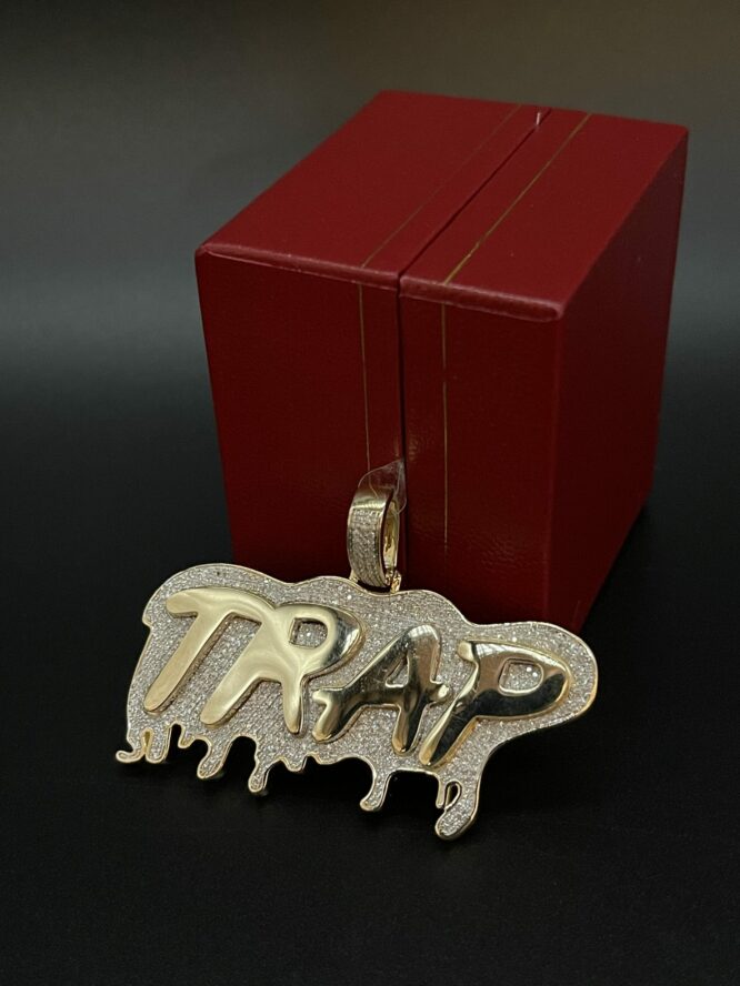 10KT Gold 1.00CT Dia Custom Design Trap Pendant Solid Gold