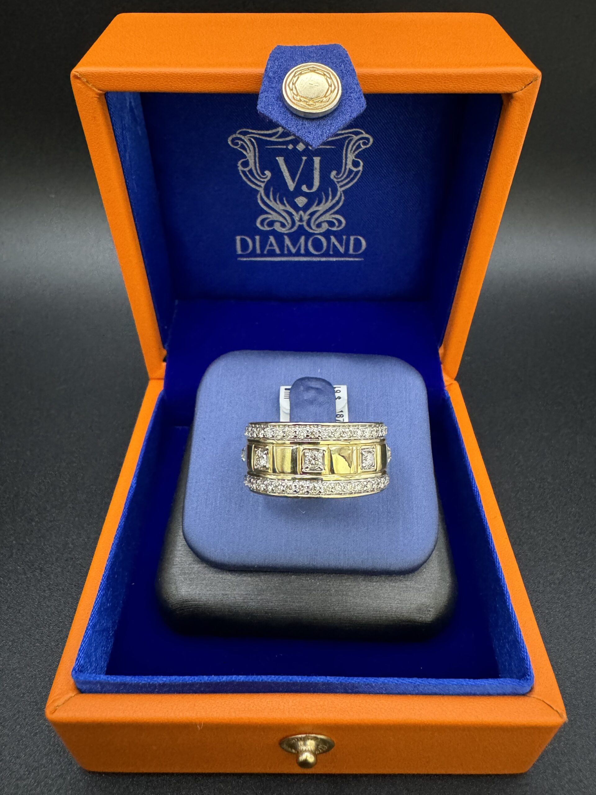 10KT Gold 1.00CT Diamond Mens Band Style Ring Size 10 Sizing Available 11.5MM Width Approx Gold Weight 6.2 Gram