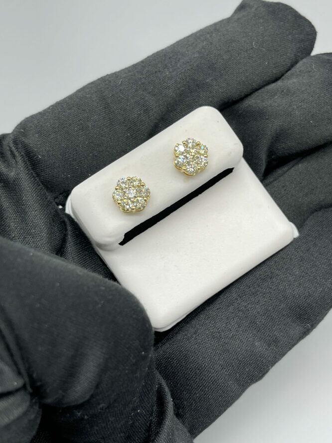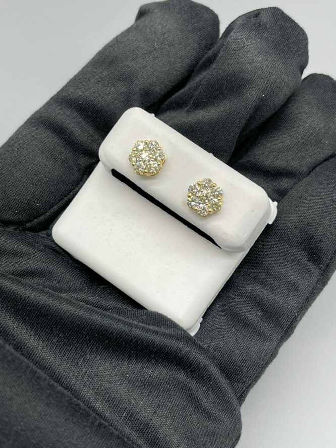 10KT Gold 1.07CT Diamond Earrings Screw Back Flower style Vs Clarity