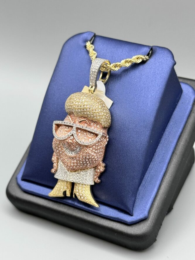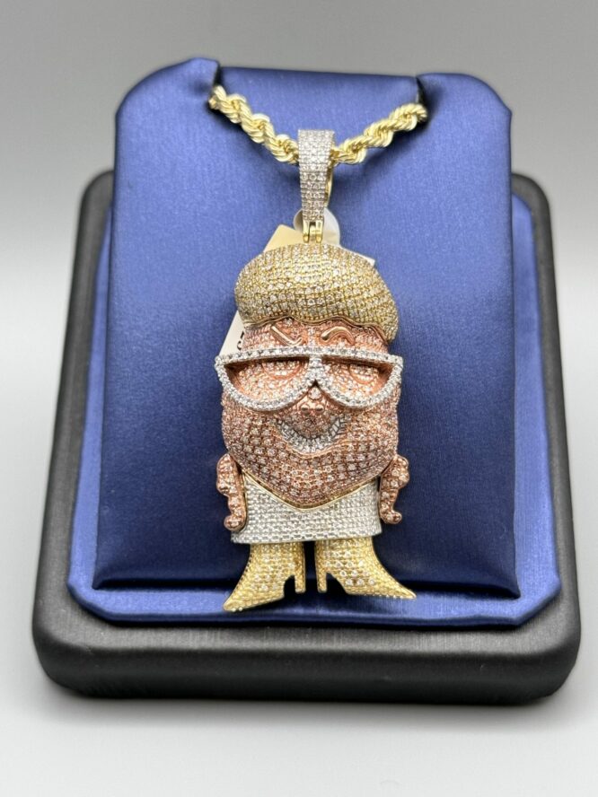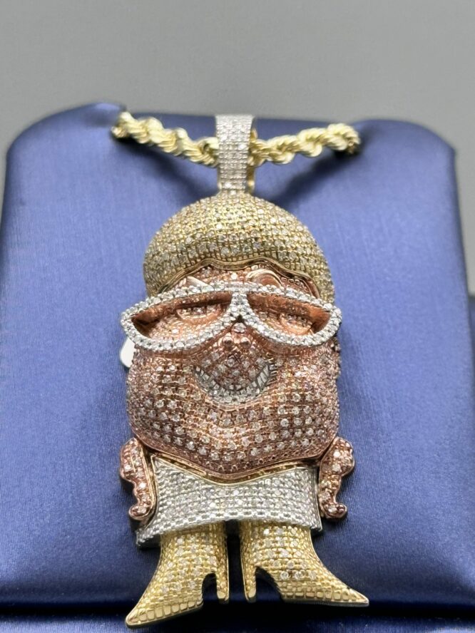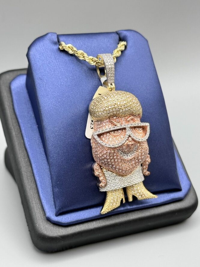 10KT Gold 1.10CT Diamond Pendant ComboSet Comes With 10KT 3MM Rope Necklace 20″ Approx Gold Weight 5.1 Gram Pendant 2.25″ Tall By 1″ Wide Approx Gold Weight 13.4 Gram Caged Closed Back Pendant