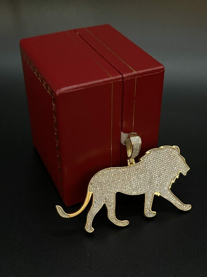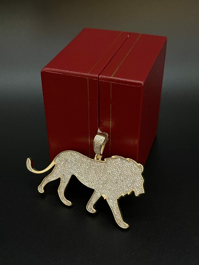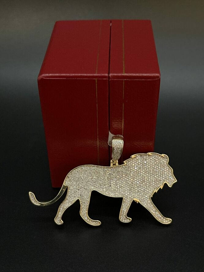 10KT Gold 1.30CT Dia Lion Body Pendant Solid Back Custom Made Honeycomb Setting Very Well Detailed Design