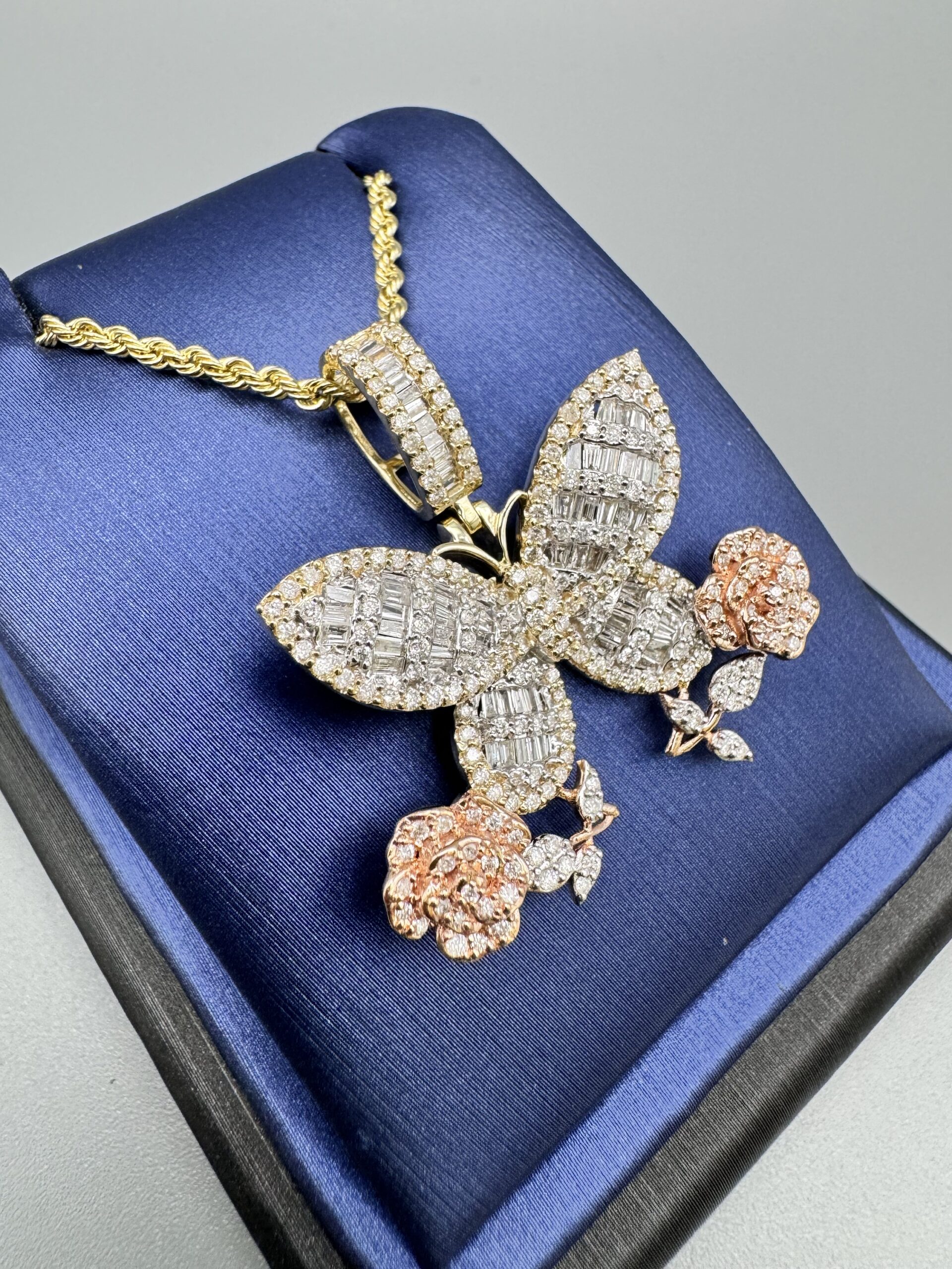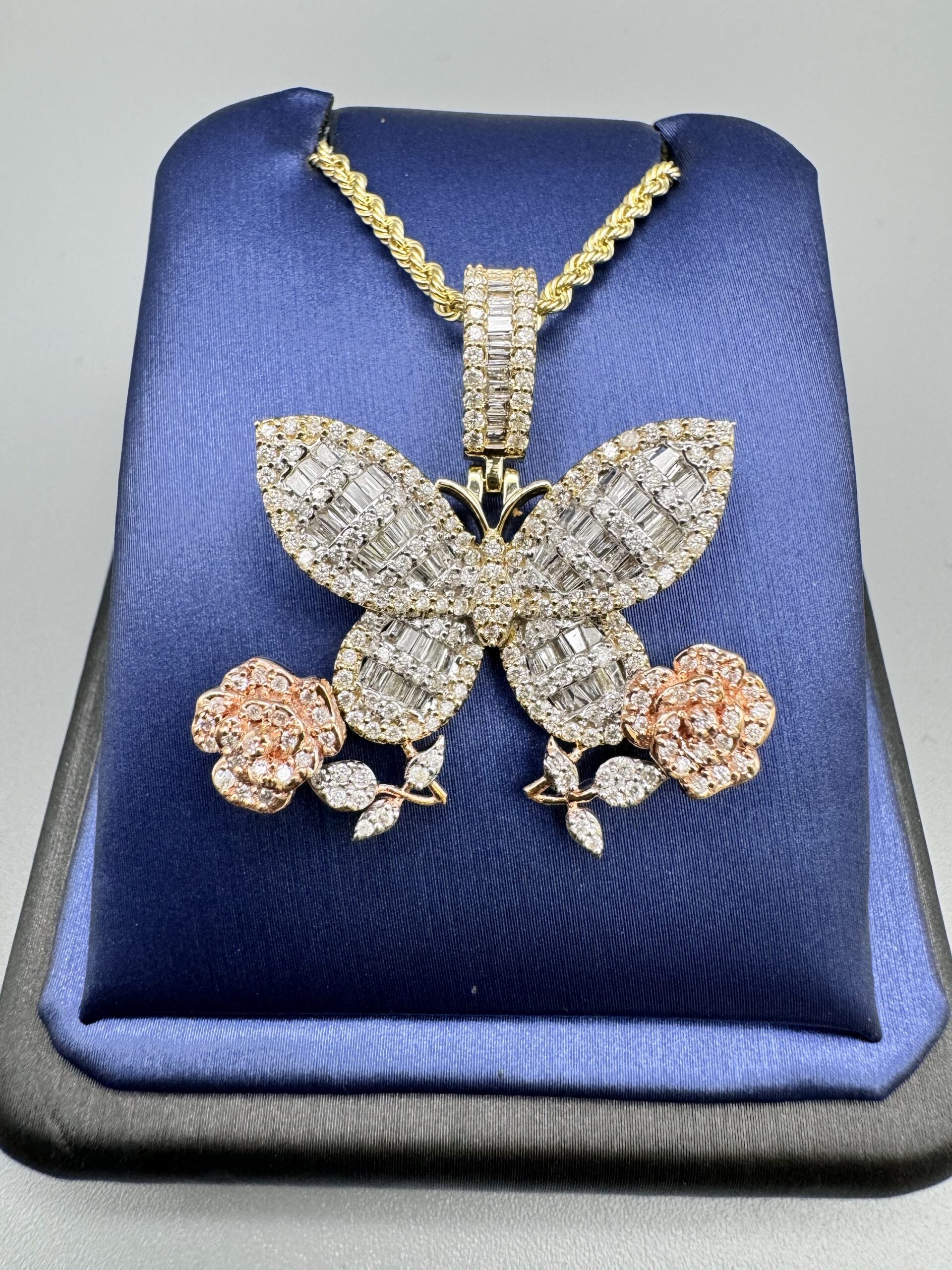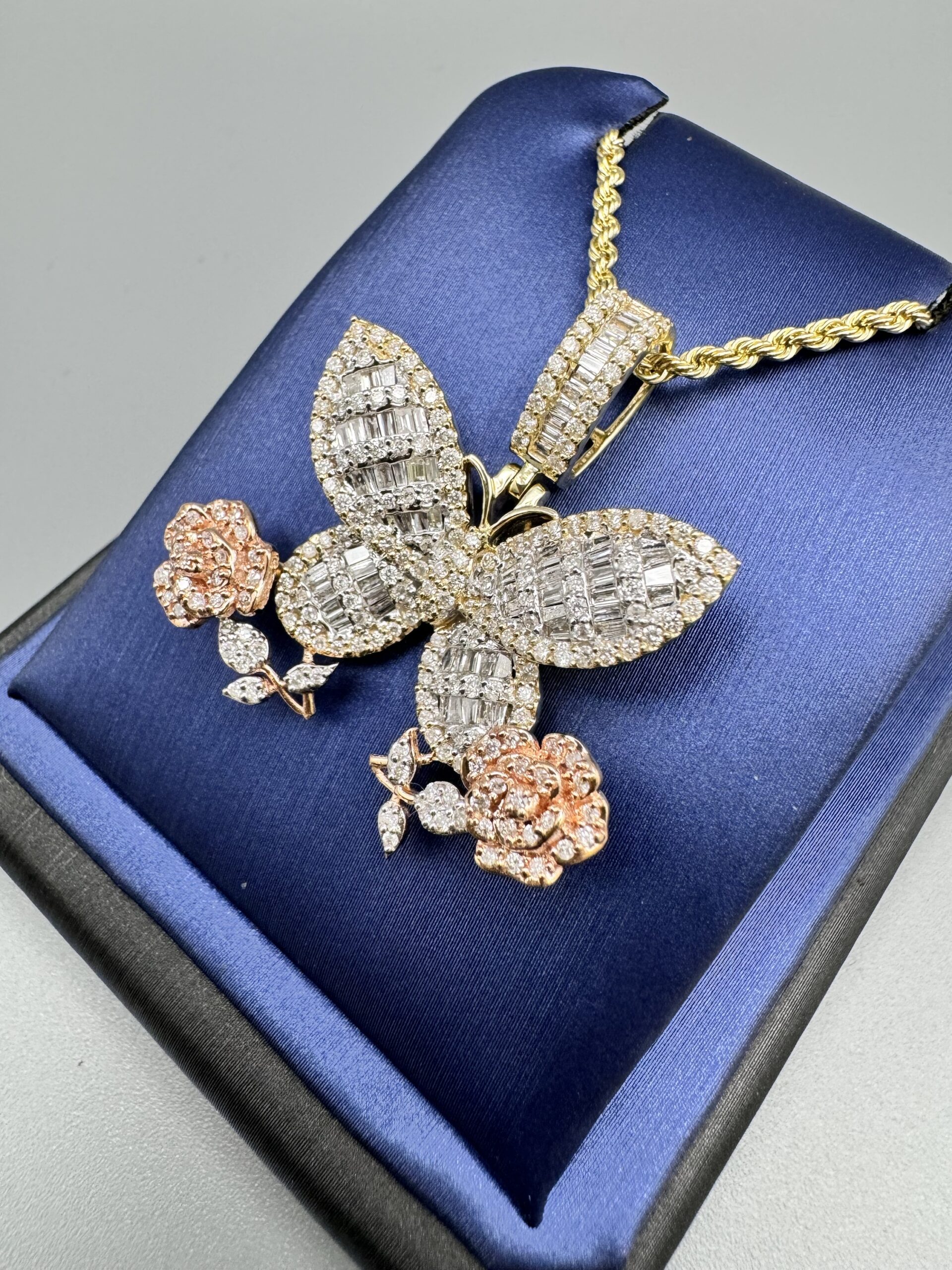 10KT Gold 1.40CT Diamond Butterfly Pendant ComboSet Comes With 20″ Rope Necklace 2MM Approx Gold Weight 1.25″ Tall By 1.25″ Wide Approx Gold Weight 10.7 Gram