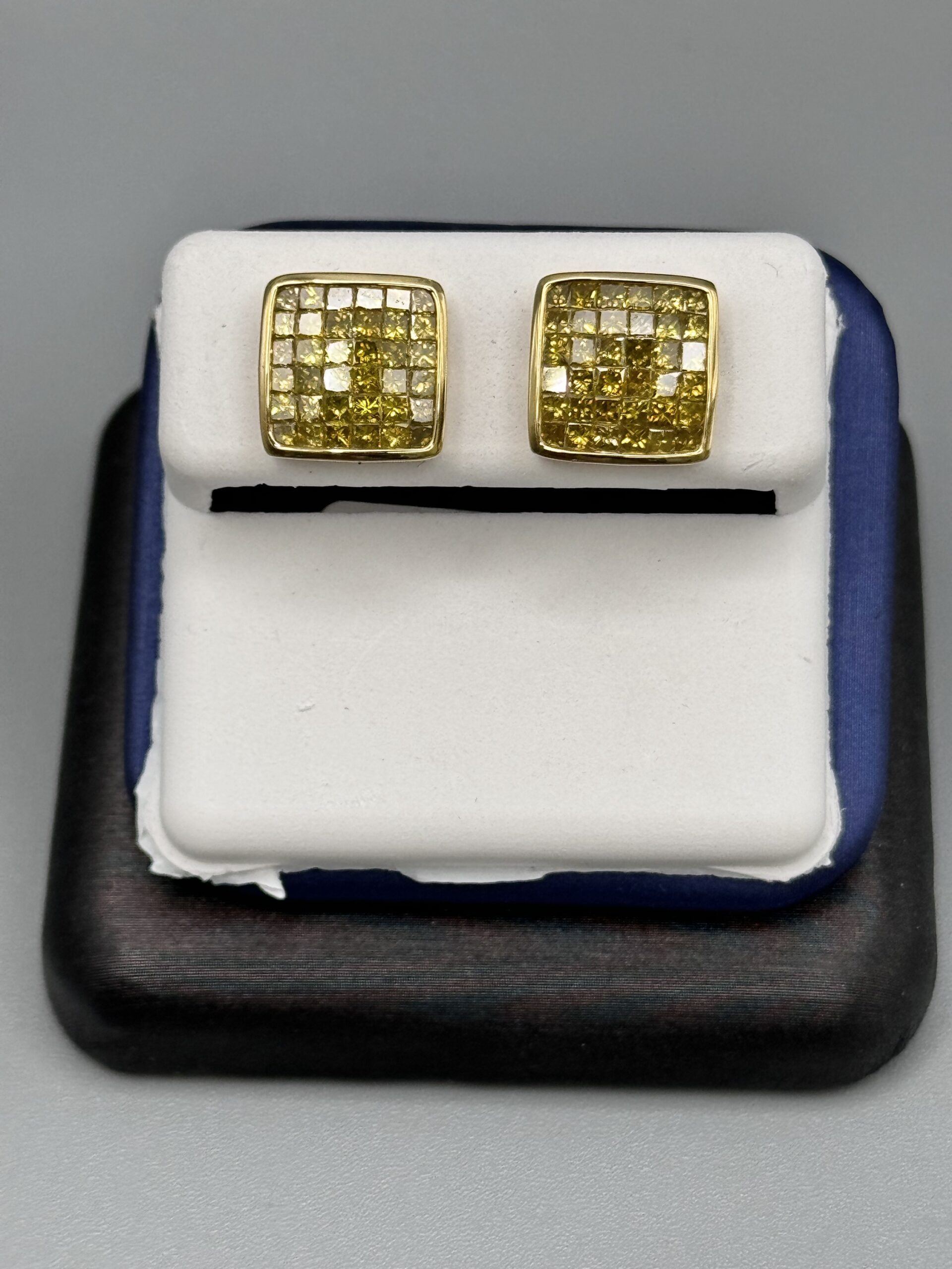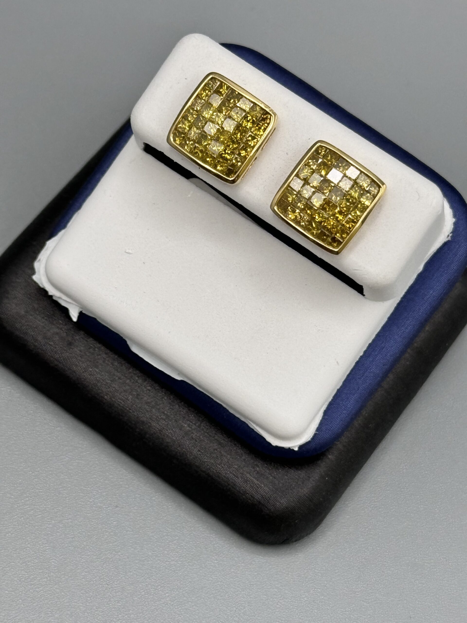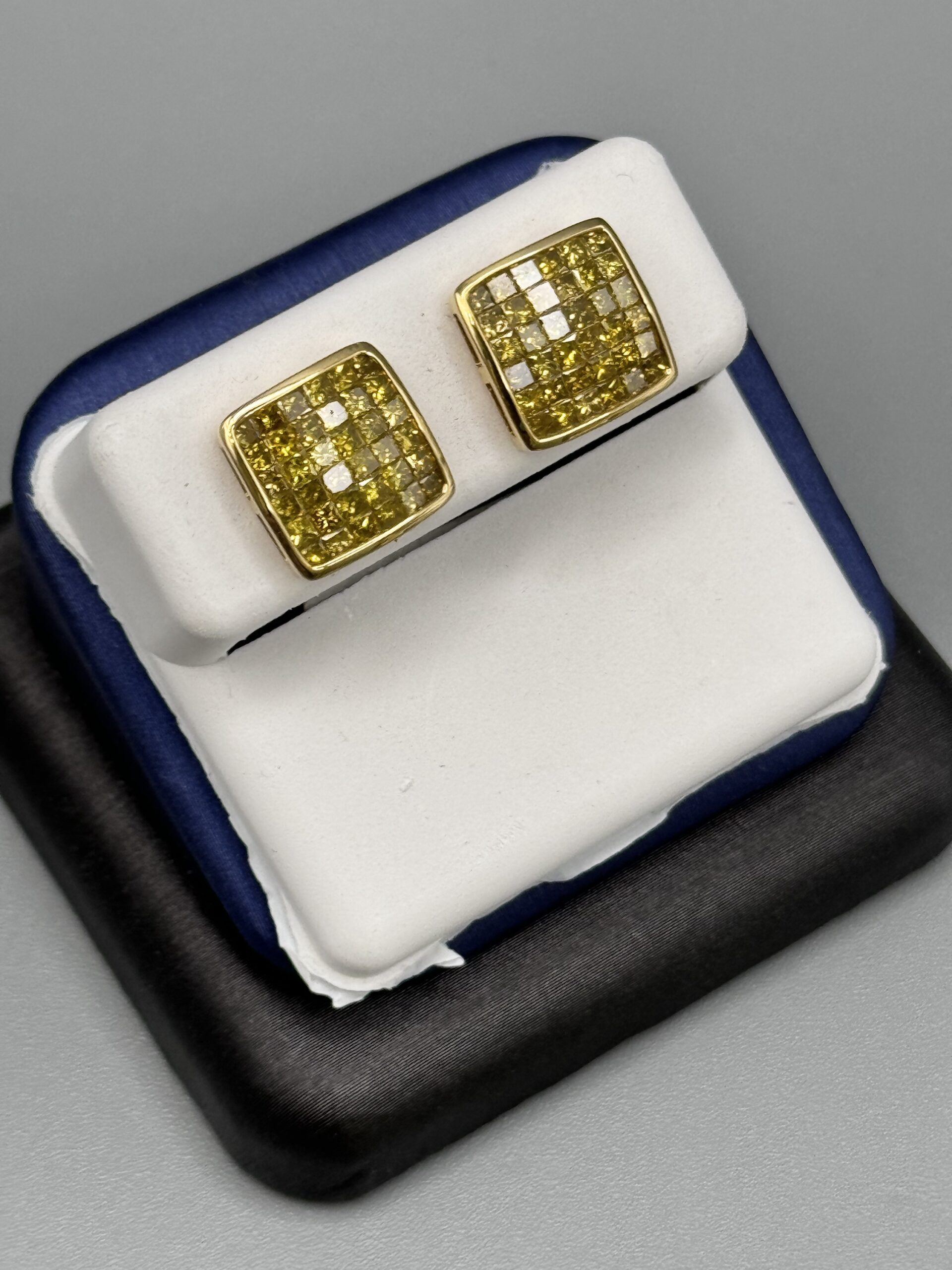 10KT Gold 1.75CT Canary Diamond Earrings Invisible Set PrincessCut ScrewBacks heavy Basket Set VS Clarity 11MM Width