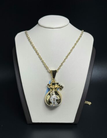 10KT Gold 0.50CT Dia Moneybag Pendant Comboset