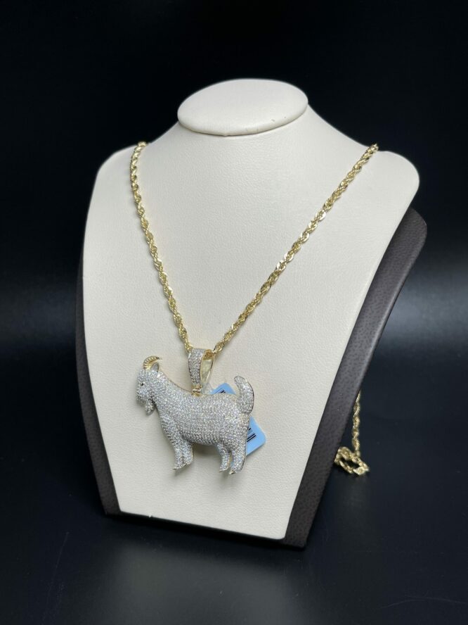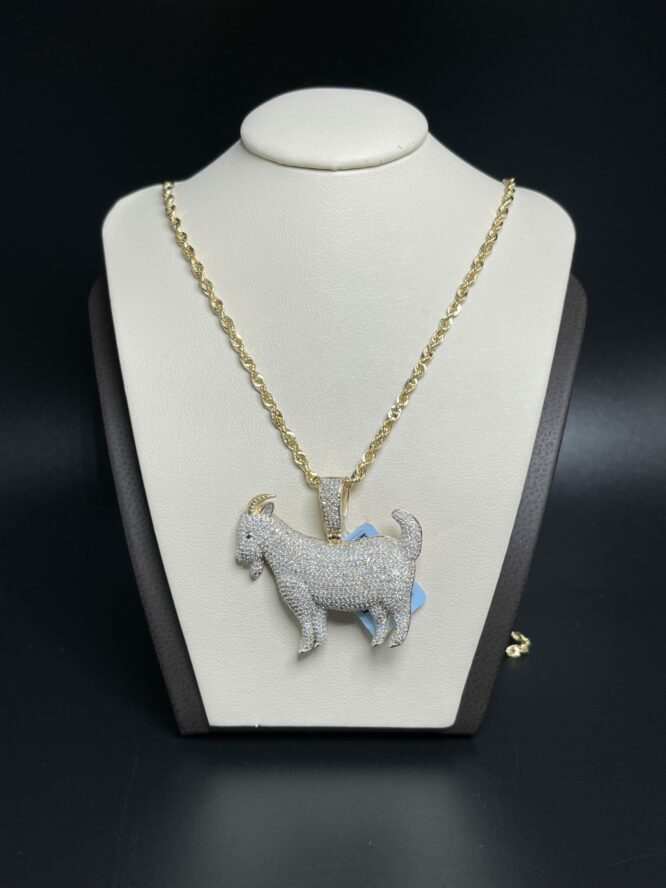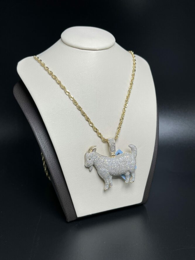 10KT Gold 1.85CT Diamond Goat Pendant Combo Set Comes With 10KT Gold 20″ Necklace 2.5MM Approx Gold Weight 2.95 Grams Pendant 1.5″ Wide With 1.5″ Tall Approx Gold Weight 7.37 Grams