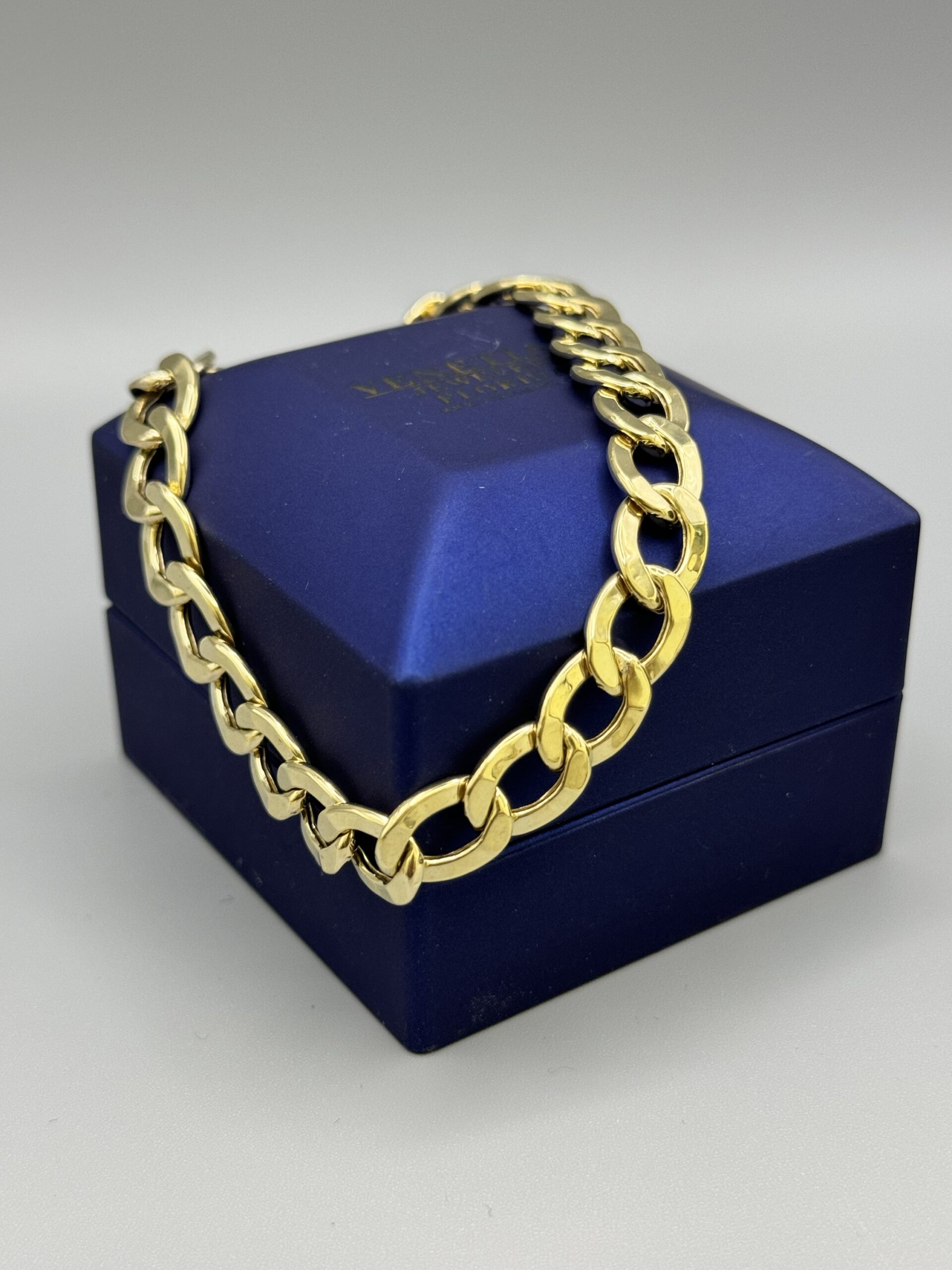 This stunning 10KT gold curb link bracelet features a classic design with 10mm links, measuring 8.5 inches in length. Weighing approximately 11.1 grams, it’s the perfect addition to any jewelry collection.