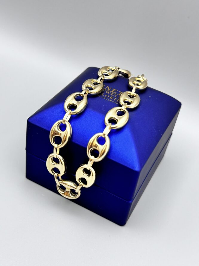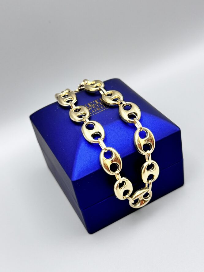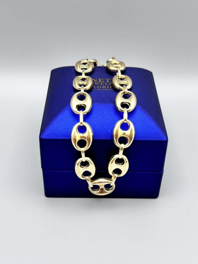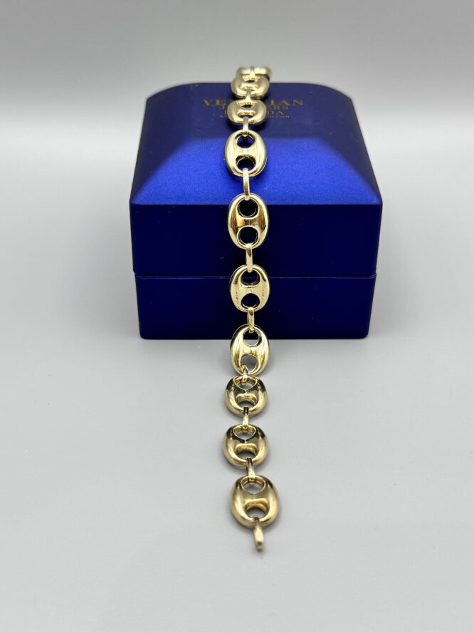 10KT Gold 10MM Puff Mariners Link Bracelet 8.5″ Approx Gold Weight 7.75 Gram