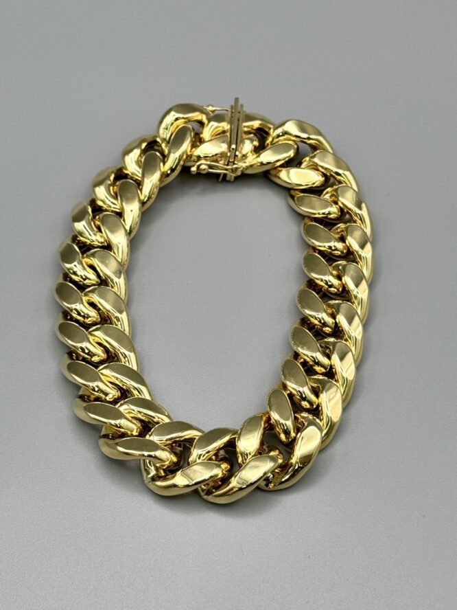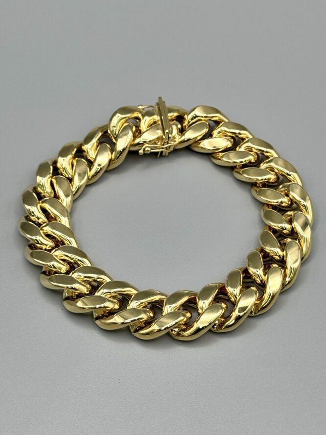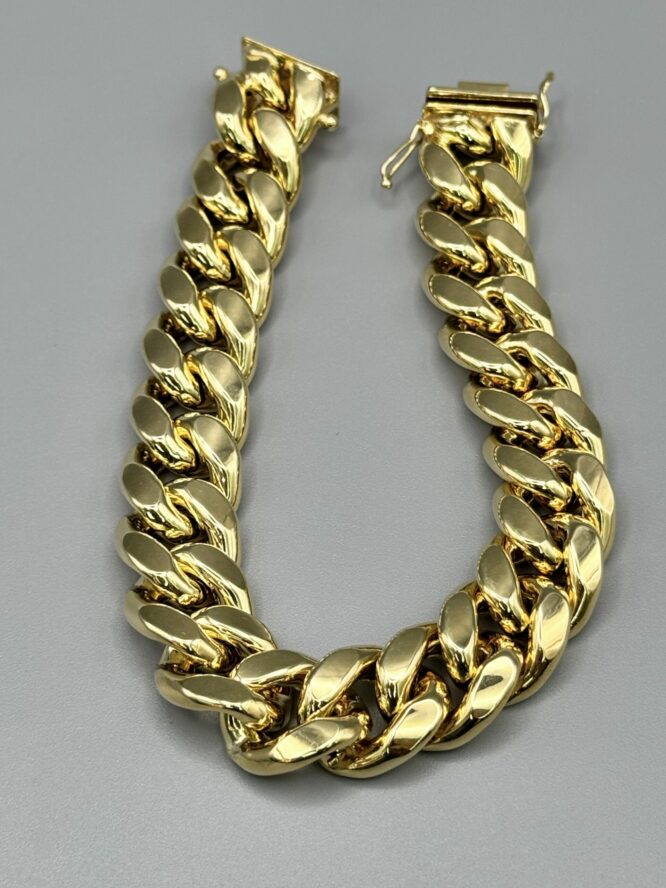10KT Gold 15MM Semi Solid MiamiCuban Bracelet 8.5″ Butter Finish Big Look Supreme Quality With BoxLock Approx Gold Weight 47.1 Gram