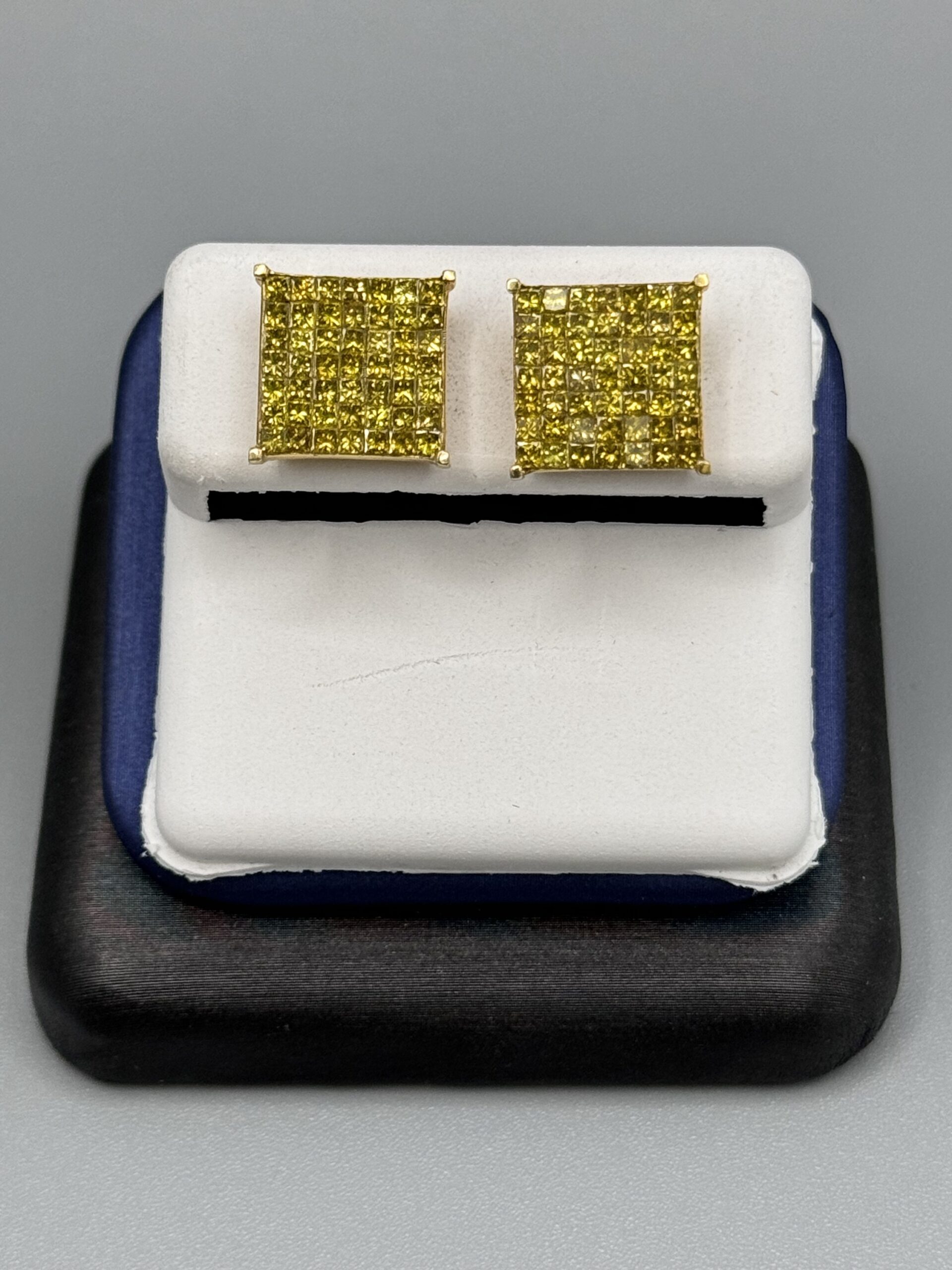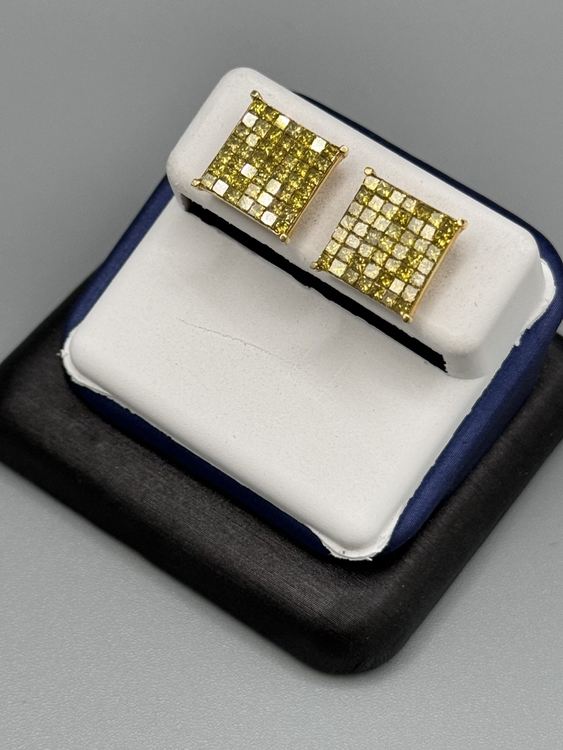 10KT Gold 2.00CT Canary Diamond Earrings Invisible Set PrincessCut ScrewBacks heavy Basket Set VS Clarity 12MM Width