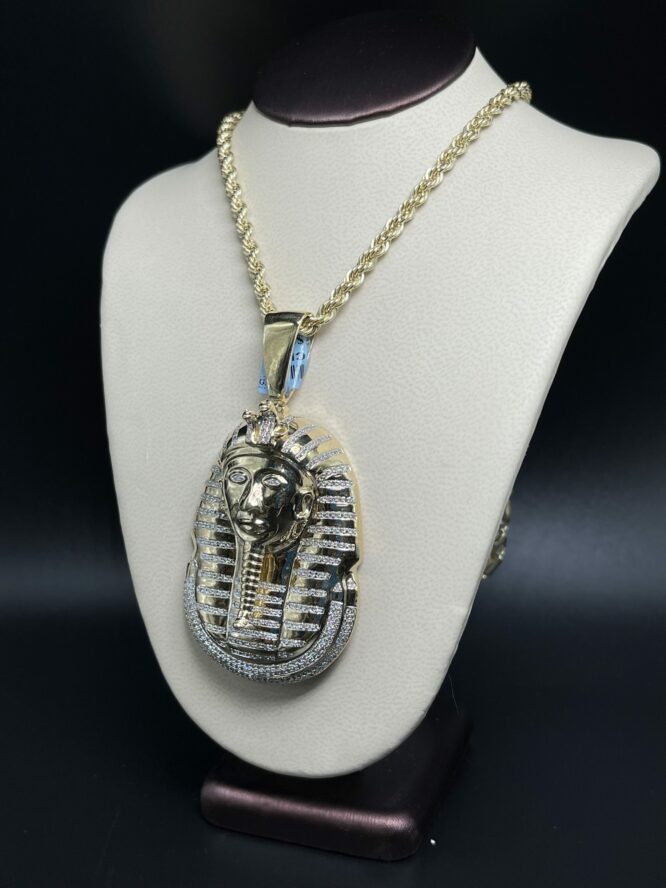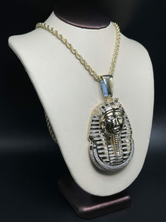 10KT Gold 2.00CT Diamonds Pharaoh Combo Set Comes With 10KT 4MM 20″ Necklace Approx Gold Weight 9.28 Grams Pendant Length 3″ Tall 1.5″ Wide Approx Gold Weight 37.00 Grams Gold Weight