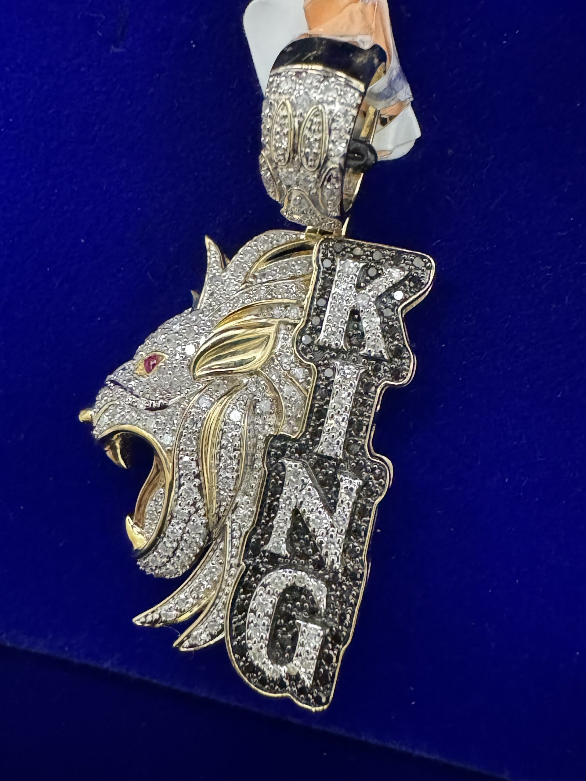 10Kt Gold 1.00CT Diamond King Lion Pendant 2″ Tall By 1″ Wide Approx Gold Weight 8.5 Gram