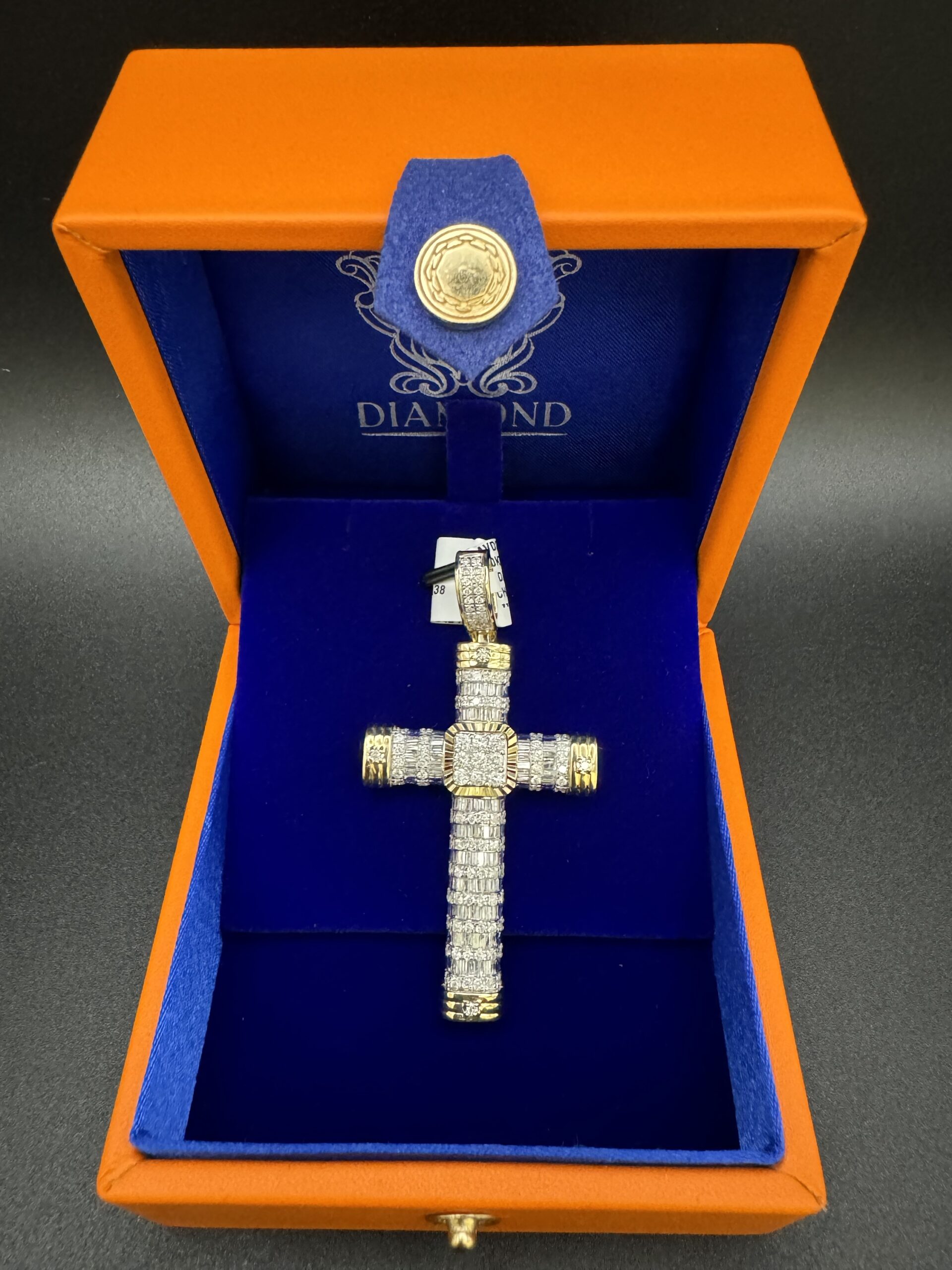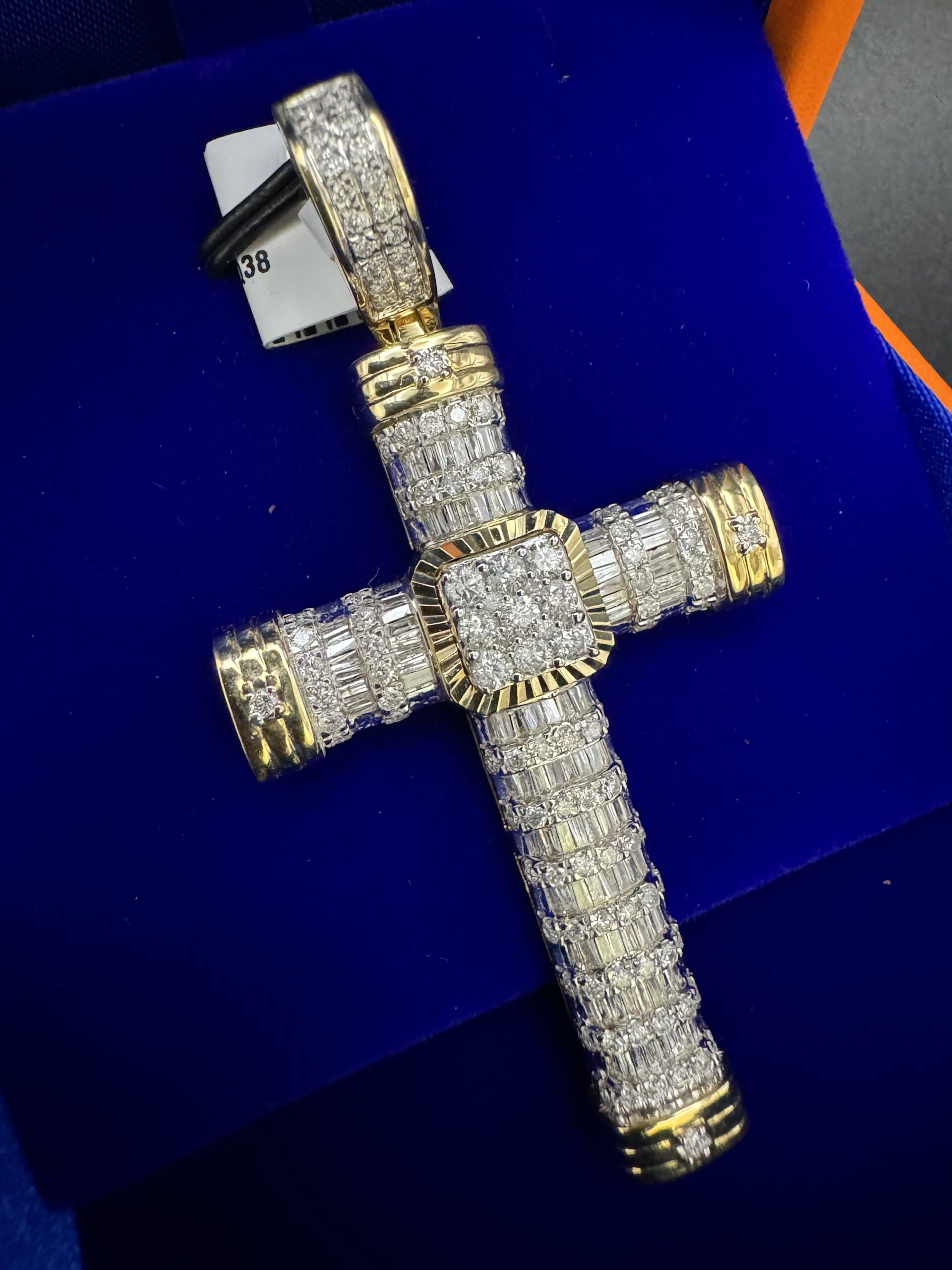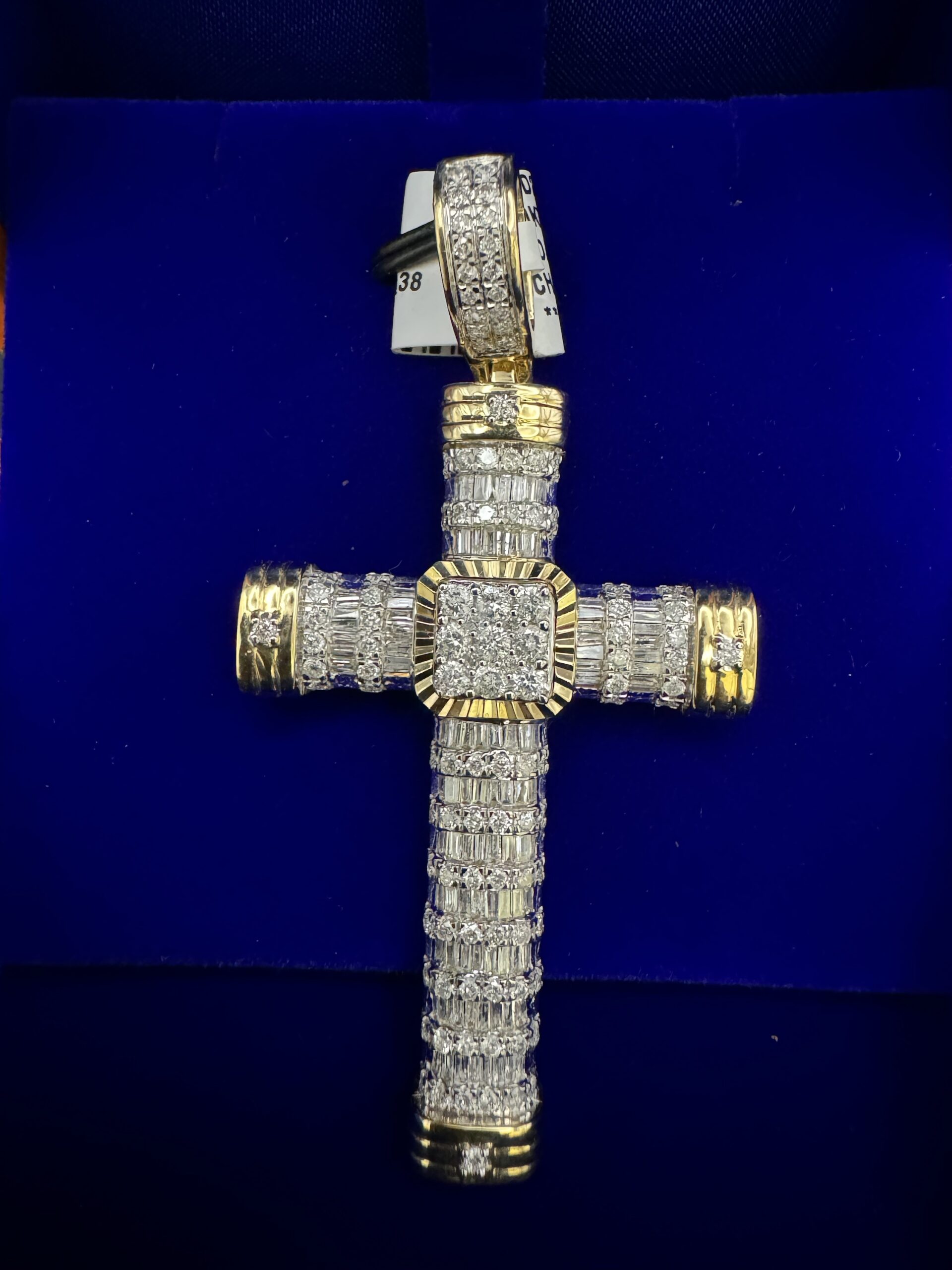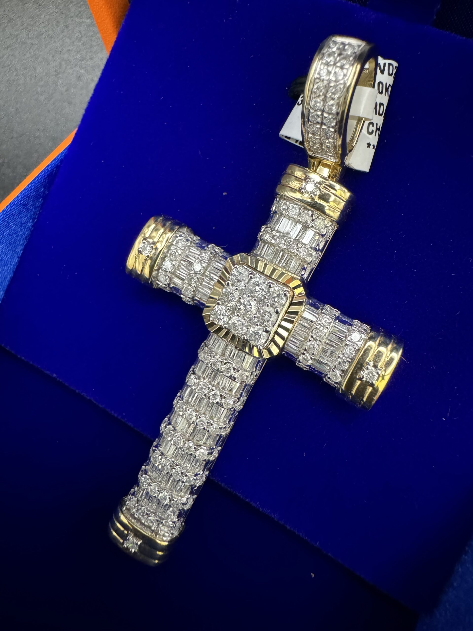 10Kt Gold 2.00CT Diamond Cross With Baguette N RoundCut Diamonds 2.5″ Tall By 1.25″ Wide Approx Gold Weight 11.2 Gram