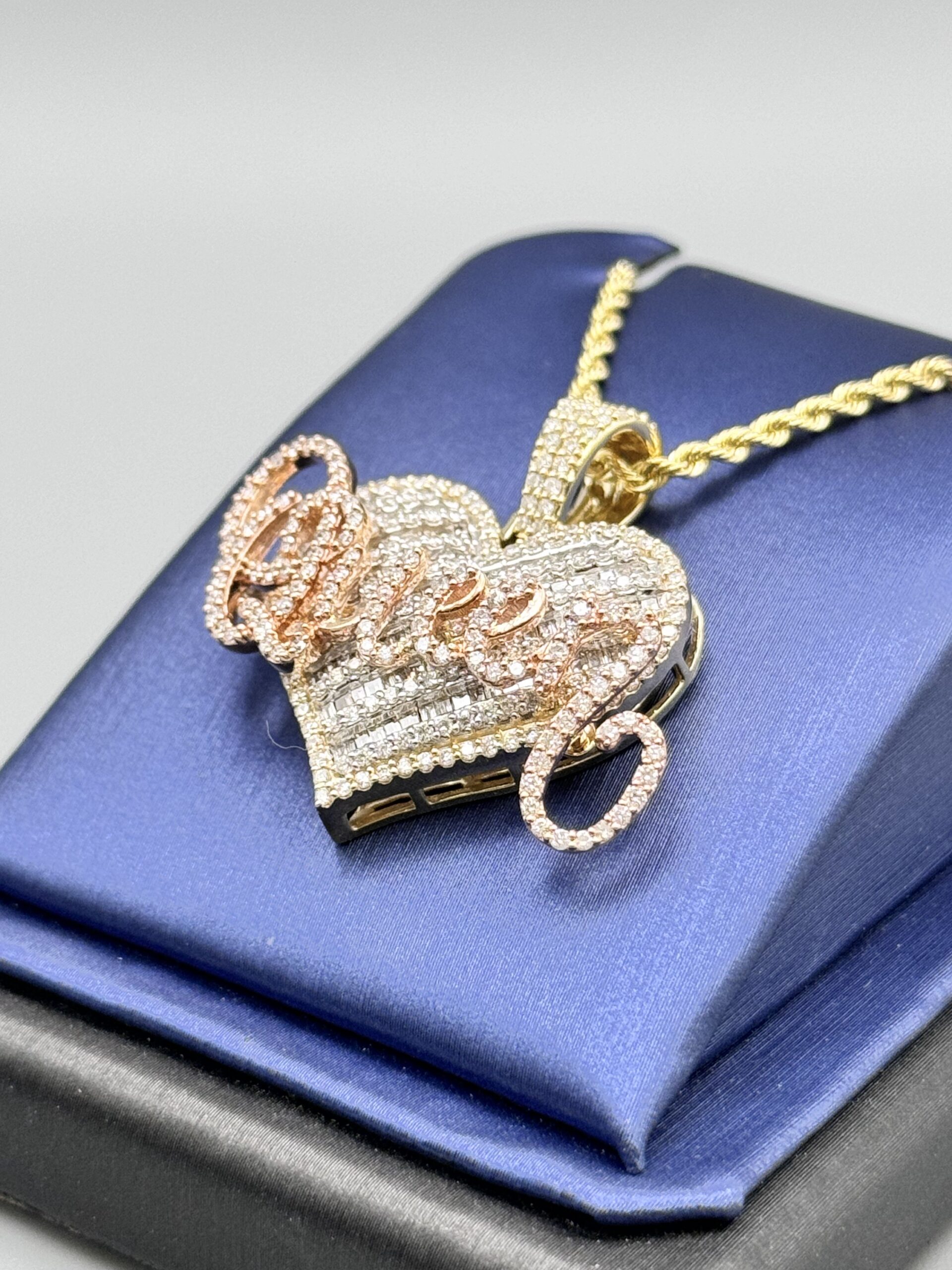 10KT Gold 2.15CT Diamond Queen Pendant ComboSet Comes With 20″ Rope Necklace 2MM Approx Gold Weight 12.00 Gram All Together 1.25″ Tall By 1.25 Wide