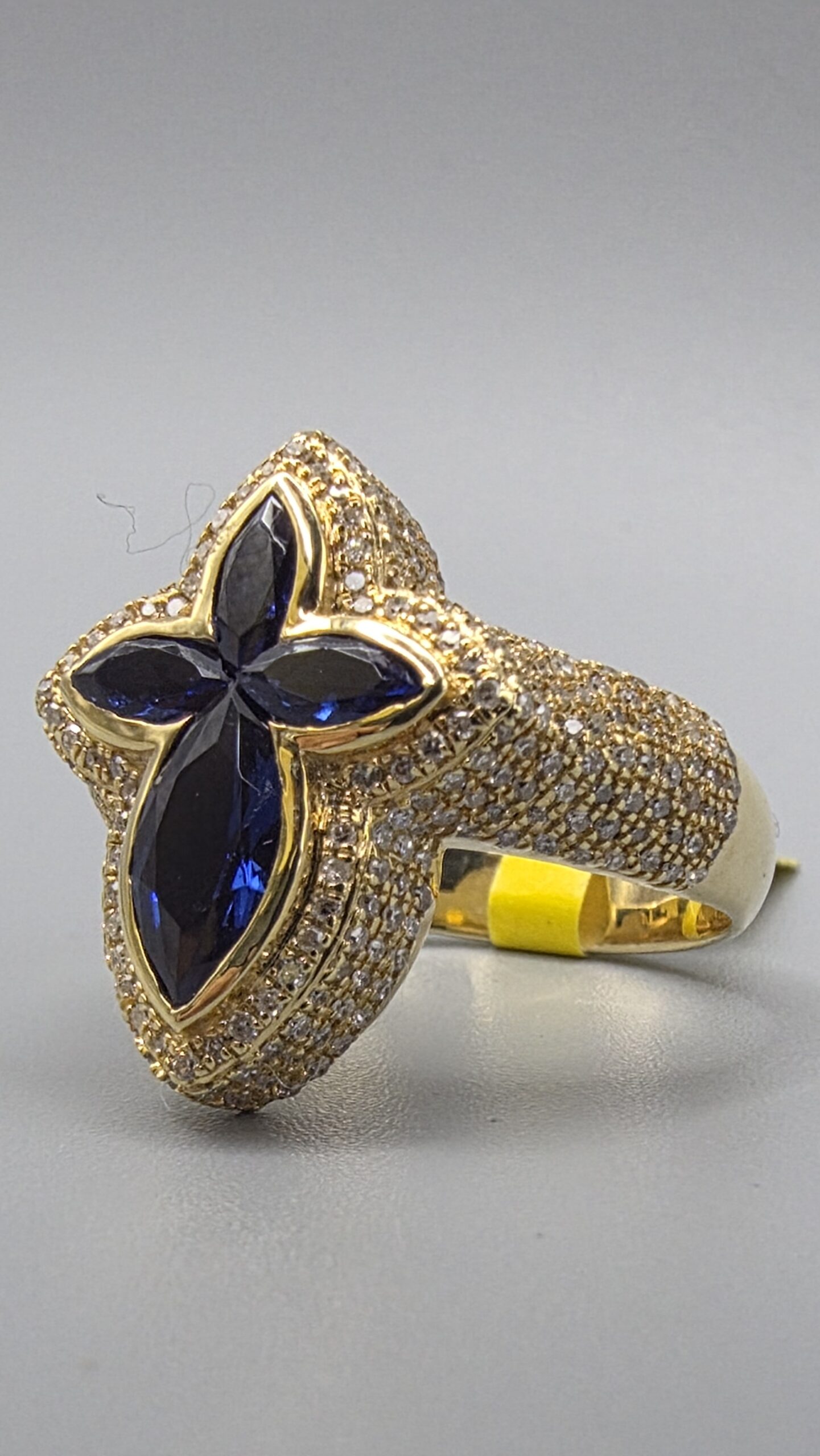 10KT Gold 2.72CT Diamond Cross Ring With Blue Sapphire Stones Size 10 Sizing Available All Natural Diamonds Approx Gold Weighg 9.6 Grams