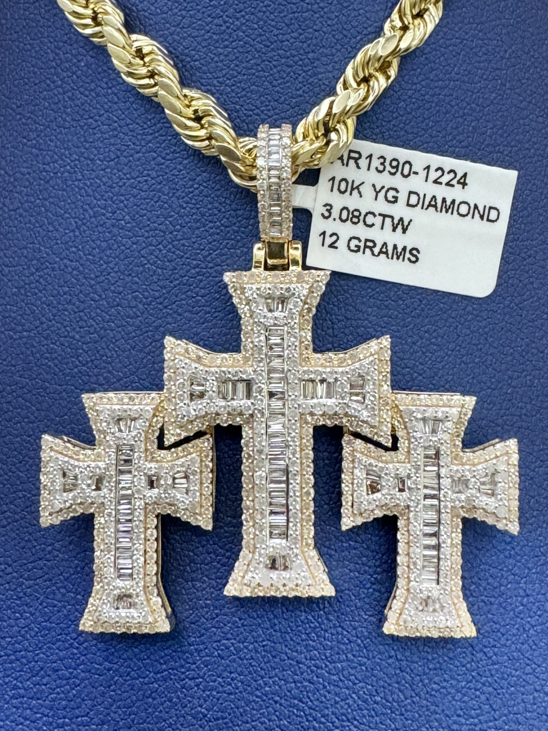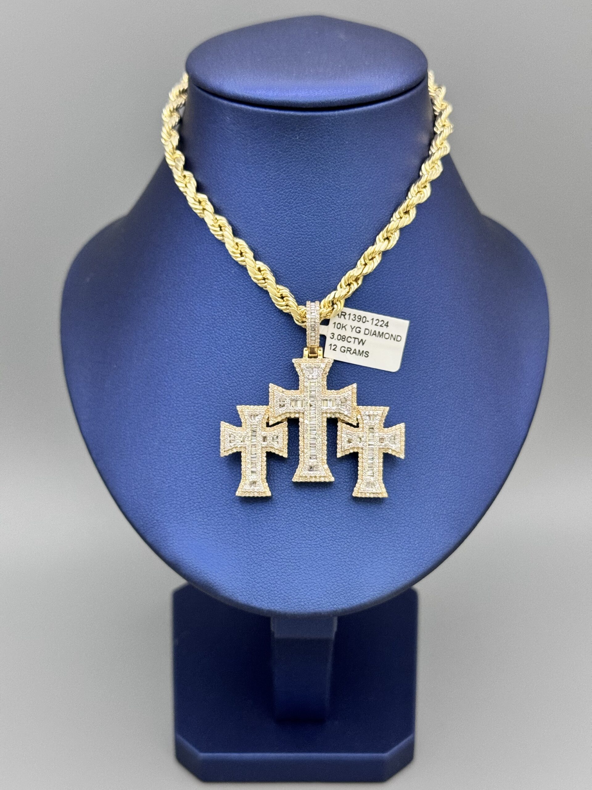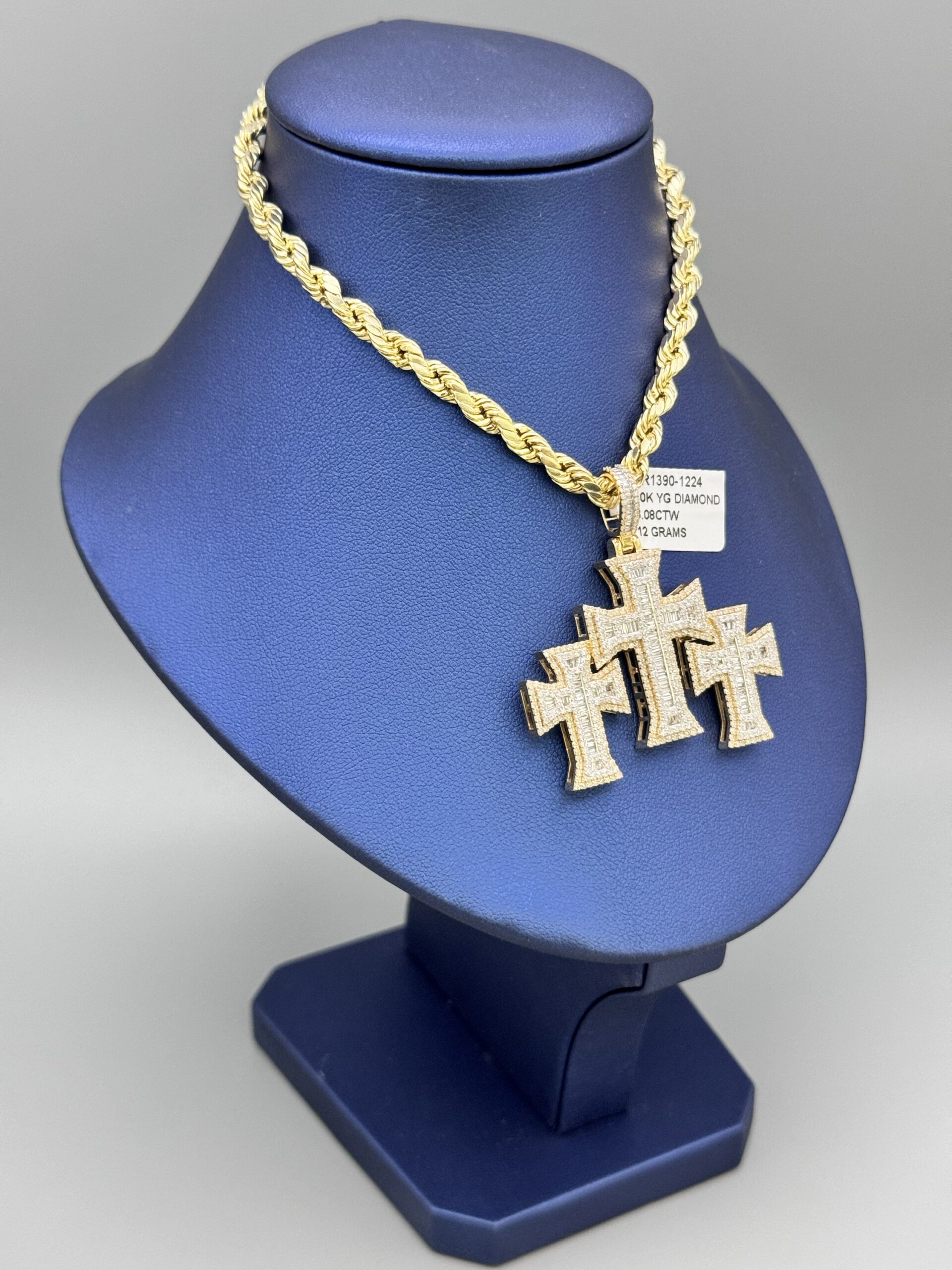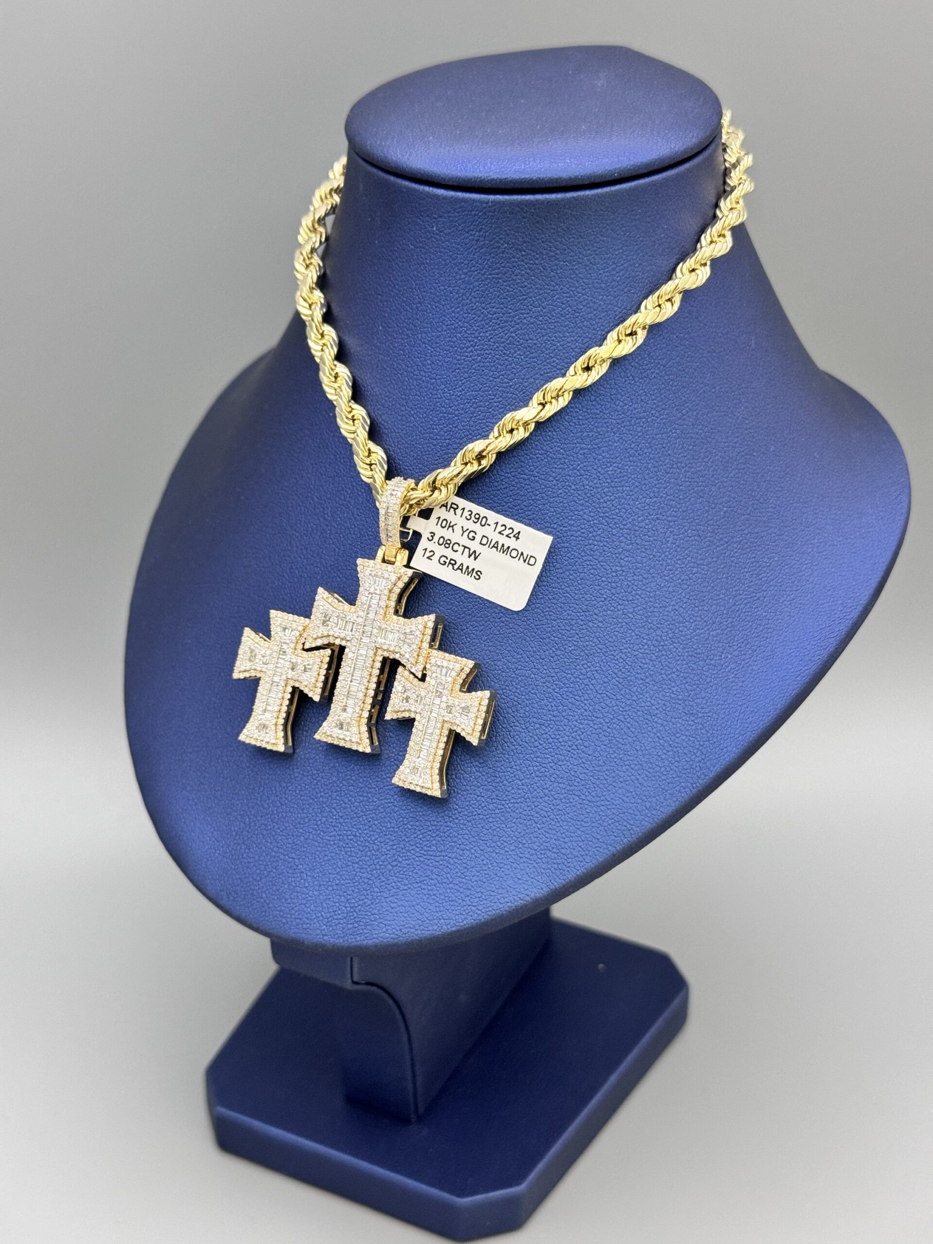 10KT Gold 3.09CT Diamond MultiCross Pendant ComboSet All VS Clarity Diamonds Approx Gold Weight 12 Gram 1.75″ Tall By 1.75″ Wide Comes With 10KT Gold Rope Necklace 8.2 gram 5MM 20″